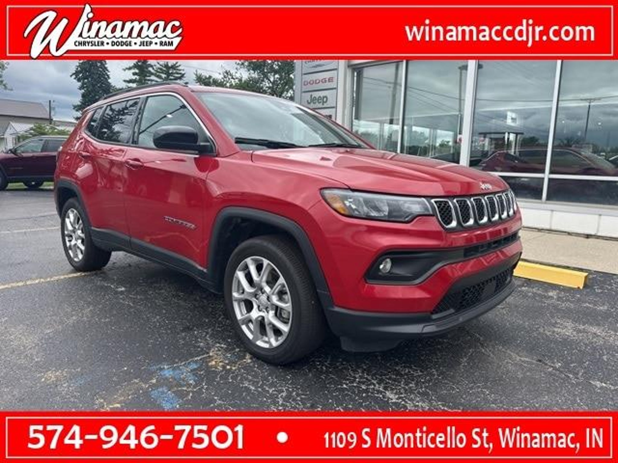 2023 Jeep Compass Latitude Lux ONE OWNER ACCIDENT FREE VEHICLE HISTORY REPORT! 4WD Heated front seats Heated steering wheel. Redline Pearlcoat 24/32 City/Highway MPG Odometer is 1036 miles below market average! Welcome to Winamac Chrysler Dodge Jeep RAM in Winamac Indiana. Winamac Chrysler Dodge Jeep Ram is the home for Chrysler Dodge Jeep Ram owners in Knox North Judson Rochester Plymouth Monticello Logansport and Winamac IN. Here at Winamac Chrysler Dodge Jeep RAM we always strive to deliver a first-class car shopping experience to Chrysler Dodge Jeep Ram shoppers throughout Knox North Judson Rochester Plymouth Monticello Logansport and Winamac IN. We strive to make that possible by providing a vast collection of Chrysler Dodge Jeep RAM and used vehicles hassle-free financing and best-in-class service and repairs. Let a member of our team show you how we like to do business as a small-town local dealer with a focus on competitive pricing and a best-in-class experience! Welcome to Winamac Chrysler Dodge Jeep RAM in Winamac Indiana. Winamac Chrysler Dodge Jeep Ram is the home for Chrysler Dodge Jeep Ram owners in Knox North Judson Rochester Plymouth Monticello Logansport and Winamac IN. Here at Winamac Chrysler Dodge Jeep RAM we always strive to deliver a first-class car shopping experience to Chrysler Dodge Jeep Ram shoppers throughout Knox North Judson Rochester Plymouth Monticello Logansport and Winamac IN. We strive to make that possible by providing a vast collection of Chrysler Dodge Jeep RAM and used vehicles hassle-free financing and best-in-class service and repairs. Let a member of our team show you how we like to do business as a small-town local dealer with a focus on competitive pricing and a best-in-class experience!