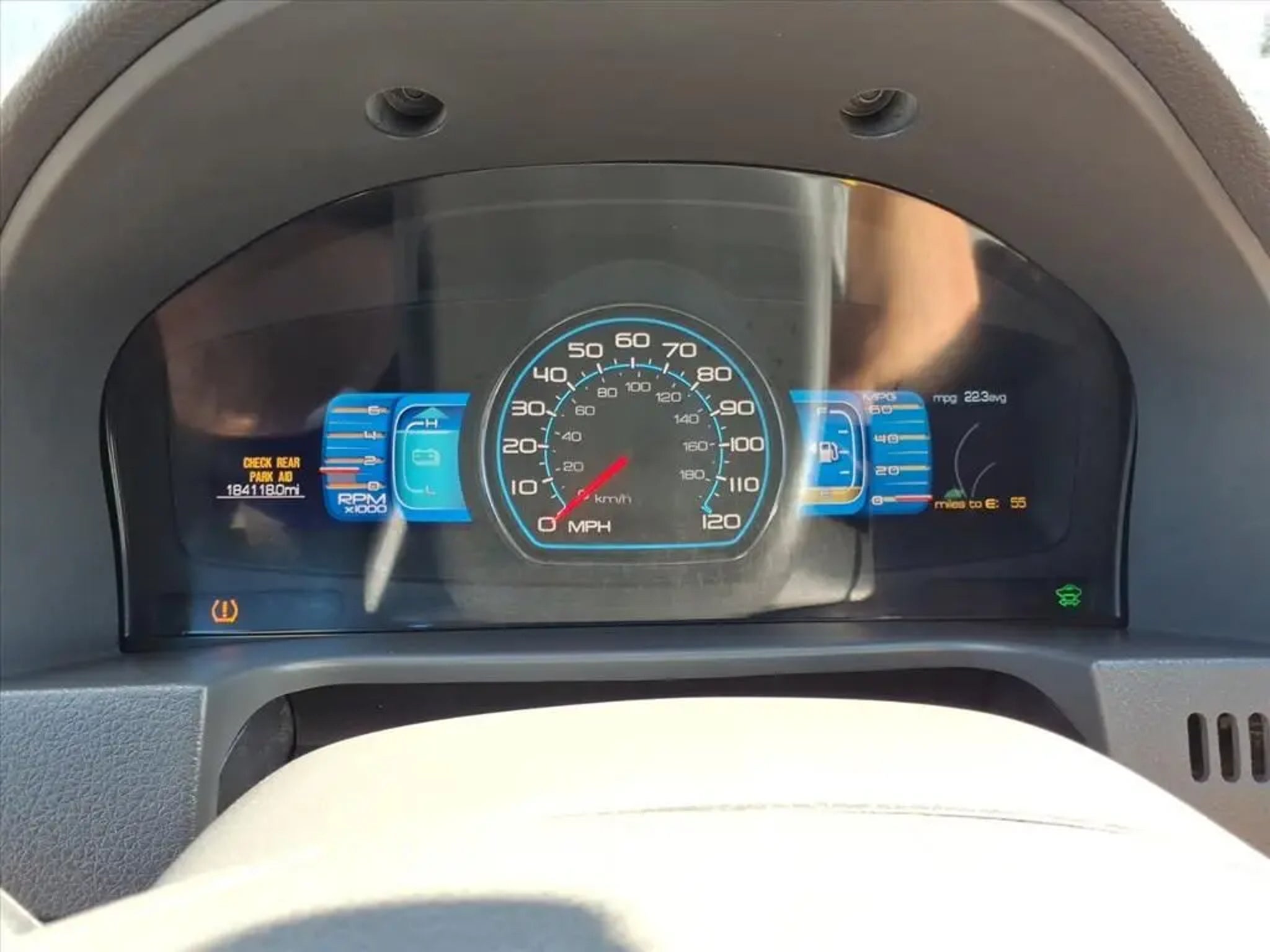 This 2010 Ford Fusion Hybrid Aisin e-CVT Powersplit is equipped with 17 15-Spoke Aluminum Wheels, 4-Wheel Disc Brakes, 6 Speakers, ABS brakes, Air Conditioning, Alloy wheels, AM/FM radio: SIRIUS, AM/FM Stereo w/CDx6/MP3 Capable, Auto-dimming Rear-View mirror, Automatic temperature control, Brake assist, Bumpers: body-color, CD player, Compass, Delay-off headlights, Driver door bin, Driver vanity mirror, Dual front impact airbags, Dual front side impact airbags, Eco-Friendly Cloth Front Bucket Seats, Electronic Stability Control, Four wheel independent suspension, Front anti-roll bar, Front Bucket Seats, Front Center Armrest w/Storage, Front dual zone A/C, Front fog lights, Front reading lights, Fully automatic headlights, Heated door mirrors, Illuminated entry, Knee airbag, Leather steering wheel, Low tire pressure warning, Occupant sensing airbag, Outside temperature display, Overhead airbag, Overhead console, Panic alarm, Passenger door bin, Passenger vanity mirror, Power door mirrors, Power driver seat, Power passenger seat, Power steering, Power windows, Radio data system, Rear anti-roll bar, Rear Parking Sensors, Rear reading lights, Rear seat center armrest, Rear window defroster, Remote keyless entry, Security system, Speed control, Speed-sensing steering, Speed-Sensitive Wipers, Steering wheel mounted audio controls, Tachometer, Telescoping steering wheel, Tilt steering wheel, Traction control, Trip computer, and Variably intermittent wipers.