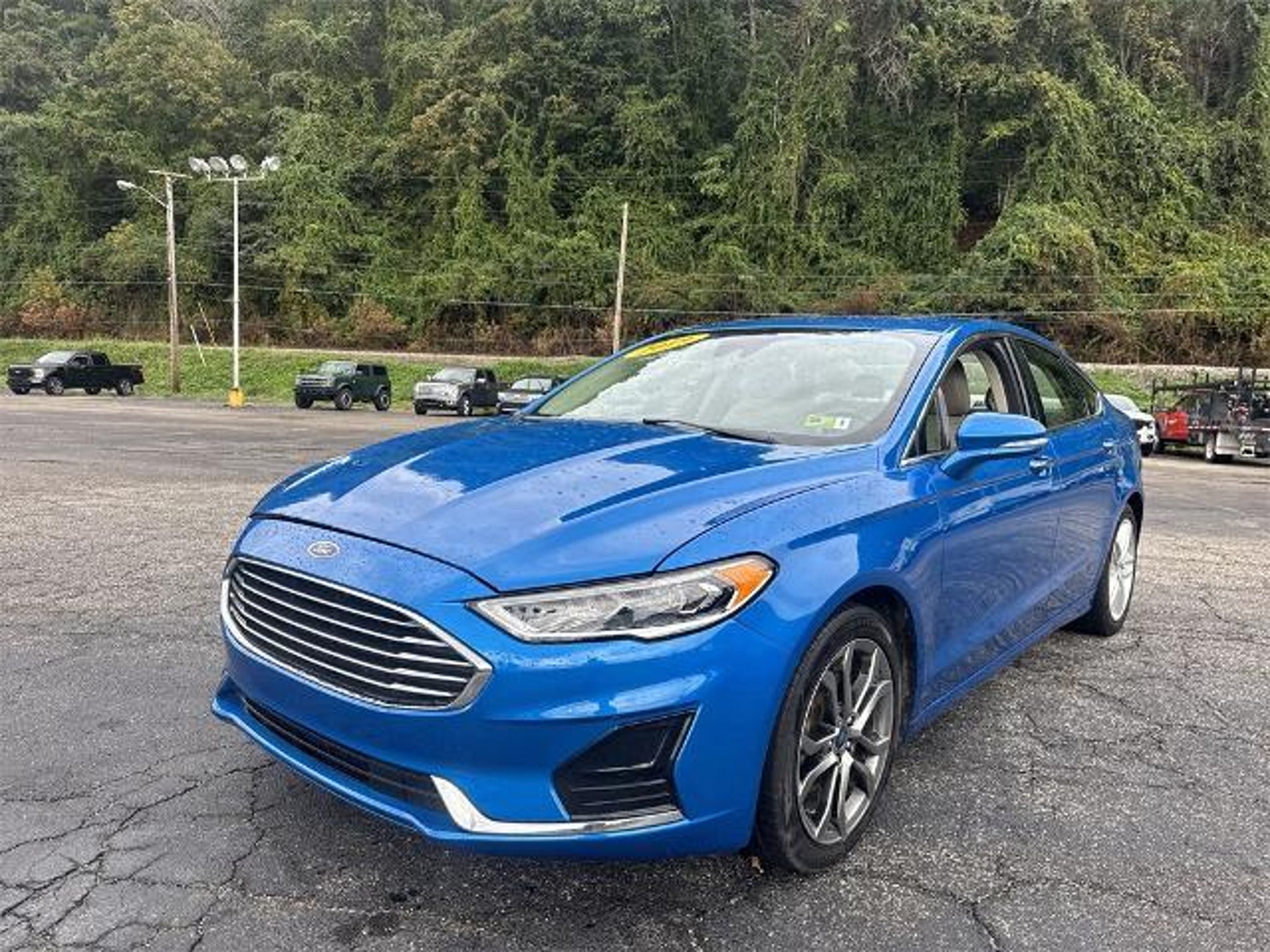 Odometer is 36973 miles below market average! 23/34 City/Highway MPG 2019 Ford Fusion SEL Blue Metallic 1.5L EcoBoost FWD 6-Speed Automatic Equipment Group 200A, 11 Speakers, 4-Wheel Disc Brakes, ABS brakes, ActiveX Heated Bucket Seats, Air Conditioning, Alloy wheels, AM/FM radio: SiriusXM, AppLink/Apple CarPlay and Android Auto, Auto High-beam Headlights, Auto Stop-Start Technology, Auto-dimming door mirrors, Auto-dimming Rear-View mirror, Automatic temperature control, Brake assist, Bumpers: body-color, Compass, Delay-off headlights, Driver door bin, Driver vanity mirror, Dual front impact airbags, Dual front side impact airbags, Electronic Stability Control, Emergency communication system: 911 Assist, Exterior Parking Camera Rear, Four wheel independent suspension, Front anti-roll bar, Front Bucket Seats, Front Center Armrest, Front dual zone A/C, Front License Plate Bracket, Front reading lights, Fully automatic headlights, Garage door transmitter, Heated door mirrors, Heated front seats, Illuminated entry, Knee airbag, Lane Departure Warning System, Low tire pressure warning, Memory seat, Occupant sensing airbag, Outside temperature display, Overhead airbag, Overhead console, Panic alarm, Passenger door bin, Passenger vanity mirror, Power door mirrors, Power driver seat, Power Moonroof, Power passenger seat, Power steering, Power windows, Radio data system, Radio: AM/FM/MP3 Stereo, Rain sensing wipers, Rear anti-roll bar, Rear Parking Sensors, Rear reading lights, Rear seat center armrest, Rear window defroster, Remote keyless entry, Security system, SiriusXM Radio, Speed control, Speed-sensing steering, Speed-Sensitive Wipers, Split folding rear seat, Steering wheel mounted audio controls, SYNC 3 Communications & Entertainment System, Tachometer, Telescoping steering wheel, Tilt steering wheel, Traction control, Trip computer, Turn signal indicator mirrors, Variably intermittent wipers, and Wheels: 18 Premium-Painted Aluminum. Awards: * JD Power Initial Quality Study (IQS)