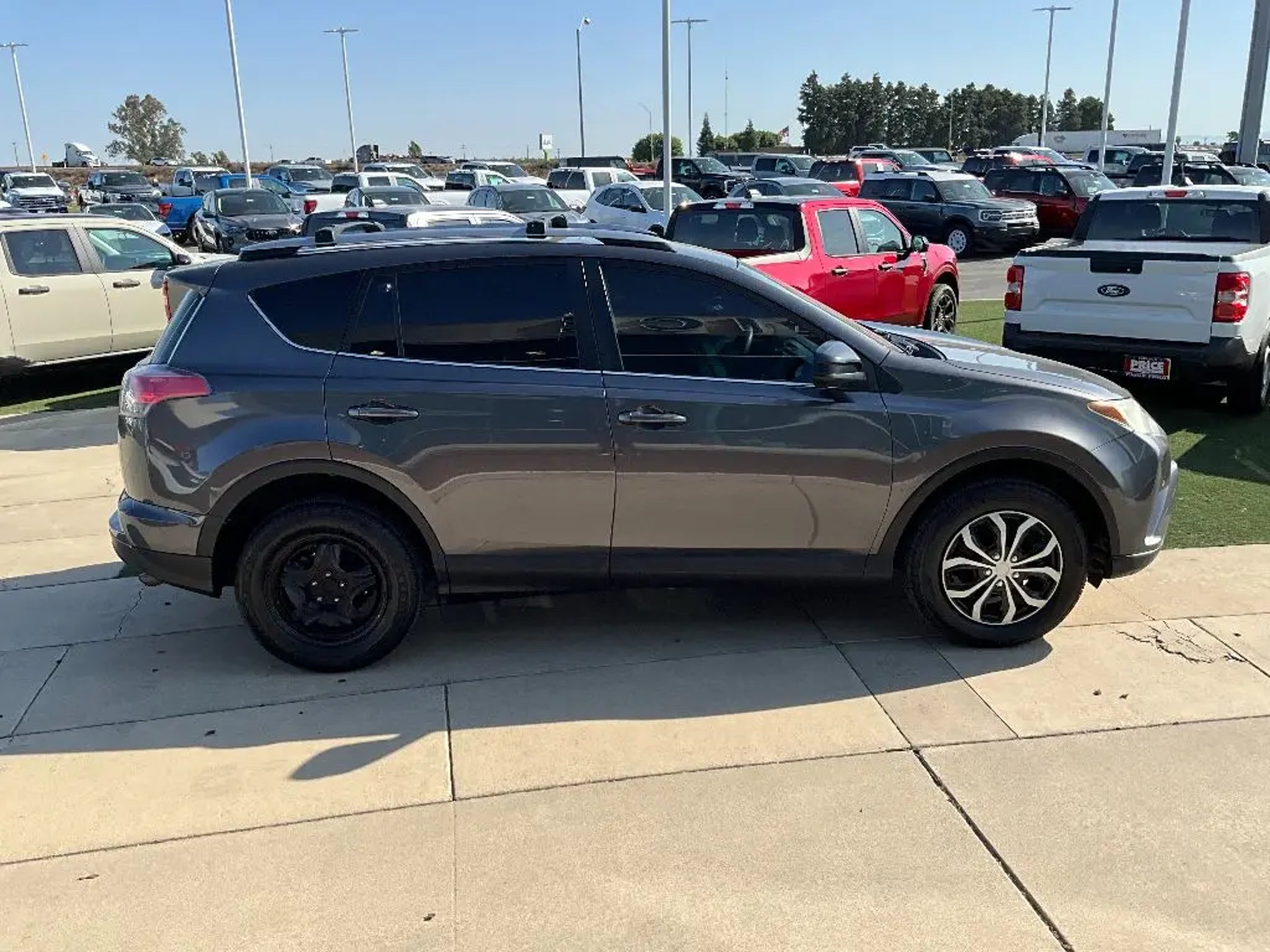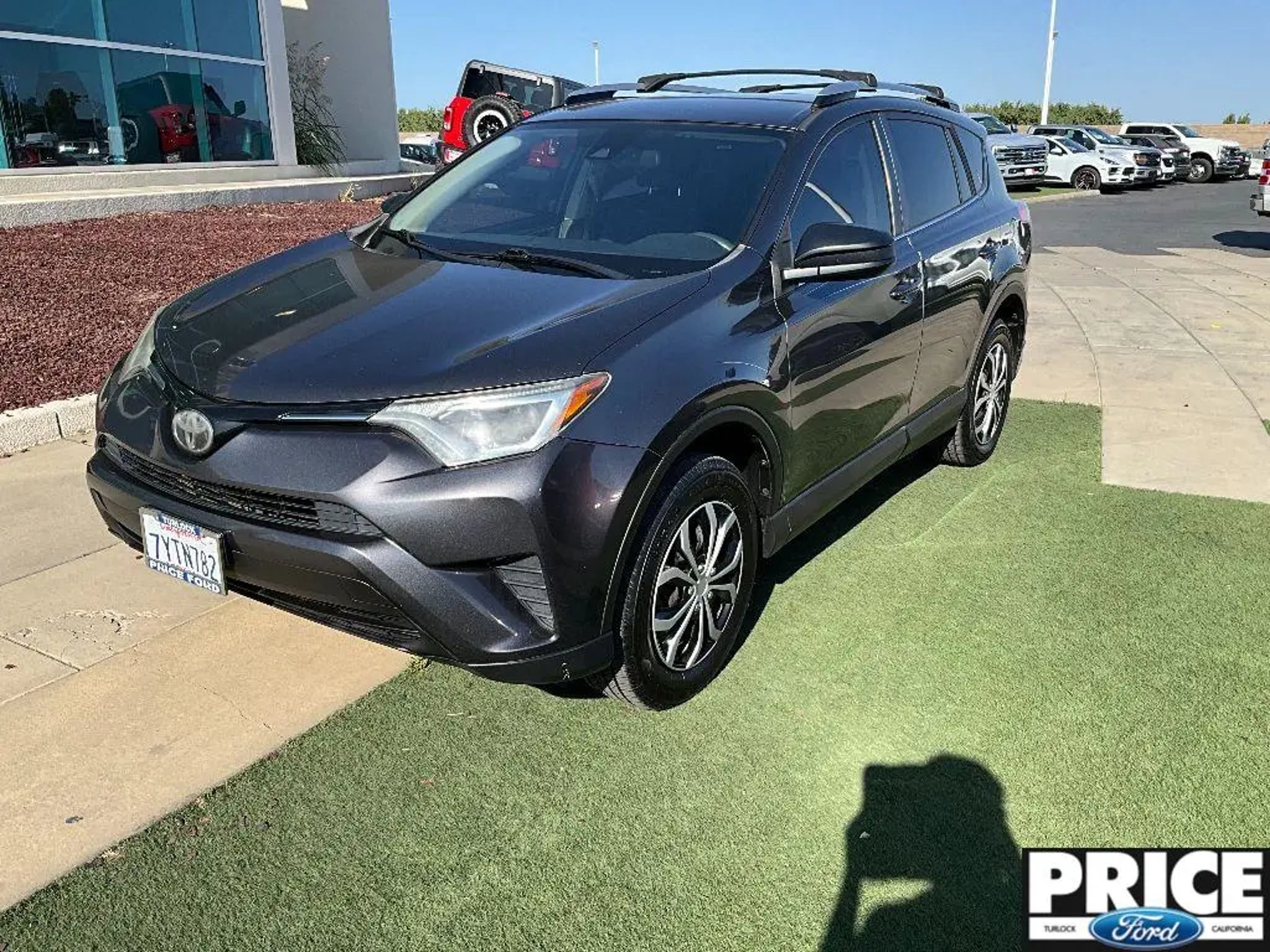 Equipment See what's behind you with the back up camera on this model. It has auto-adjust speed for safe following. This 2017 Toyota RAV4 features a hands-free Bluetooth phone system. The Toyota RAV4 projects refinement with a racy metallic gray exterior. This unit is front wheel drive. This Toyota RAV4 has a 4 Cyl, 2.5L high output engine. Maintaining a stable interior temperature in it is easy with the climate control system. Make room for more passengers, carry extra luggage or your favorite sports gear with the roof rack on this Toyota RAV4. Enjoy the tried and true gasoline engine in it. This vehicle features cruise control for long trips. The high efficiency automatic transmission shifts smoothly and allows you to relax while driving. Electronic Stability Control is one of many advanced safety features on it. The perfect balance of space and size. the Toyota RAV4 cruises through the city with ease. Packages Carpet Mat Package: Carpet Cargo Mat; Carpet Floor Mats. Roof Rack Cross Bars. Roof Rails. Tonneau Cover. **Equipment listed is based on original vehicle build and subject to change. Please confirm the accuracy of the included equipment by calling the dealer prior to purchase.** Additional Information Price Ford of Turlock is the newest Ford Dealer located in the heart of the Central Valley and we promise to work the hardest to be your dealer. Once you compare our prices online, you will see we are priced competitively in the market. But more importantly, our pre-owned vehicles have all been serviced by factory trained technicians and passed an extensive pre-owned checklist. All of our pre-owned vehicles come with a complimentary 7-day Money Back Guarantee and all vehicles newer than 10 years old and under 100,000 miles come with a 3mo/3,000 mile Limited Used Vehicle Warranty. If you have any questions about the vehicle, its pricing, finance options, or service contract eligibility, please email us a