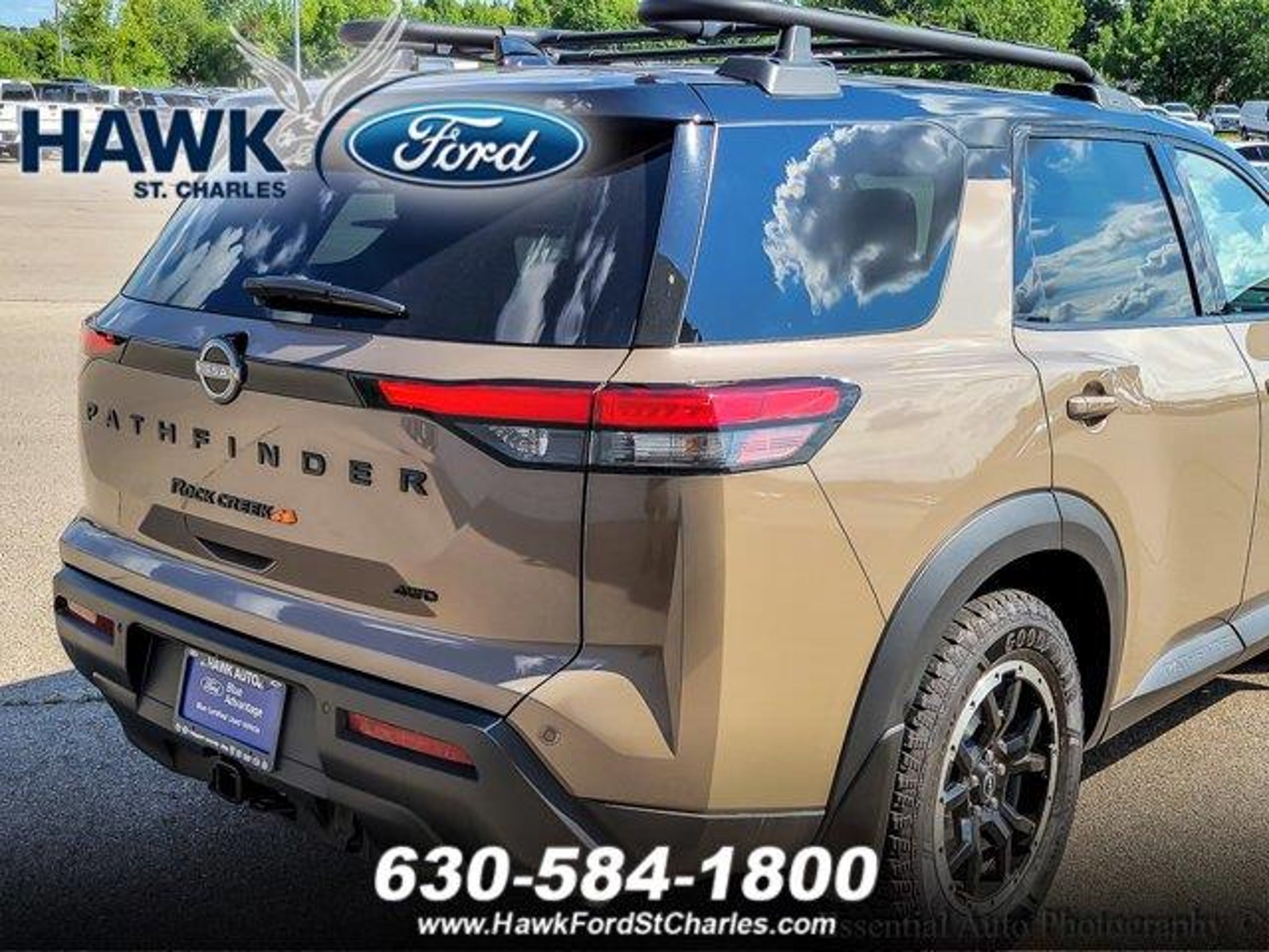 2023 Nissan Pathfinder Rock Creek Rock CreekBaja Storm/Super Black Roof V6 4WDCome see this 2023 Nissan Pathfinder Rock Creek! It's the one you've been longing for! This Pathfinder comes equipped with these options:4WD, Auto High-beam Headlights, Automatic temperature control, Black Splash Guards (Set of 4), Front dual zone A/C, Front fog lights, Fully automatic headlights, Heated door mirrors, Heated Front Bucket Seats, Leatherette Seating Surfaces, NissanConnect featuring Apple CarPlay and Android Auto, Power driver seat, Rear Parking Sensors, Remote keyless entry, Rock Creek AS Floor Liners & Cargo Area Protector, Rock Creek Roof Rack.Certified. Certification Program Details: Certification Program Details: The Ford Blue Advantage BLUE CERTIFIED program helps provide some peace of mind when buying a previously owned vehicle. A Hawk Ford Certified Technician has fully inspected and reconditioned the vehicle. The vehicle is also eligible for the following coverage when registered Blue Certified with Ford: *90-day/4,000-mile Comprehensive Limited Warranty coverage (whichever comes first). *139-Point Inspection by a Hawk Ford Certified Technician. *11,000 FordPassTM Rewards Points to use toward scheduled maintenance visits or other rewards. *CARFAXÂ Vehicle History Report. *SiriusXMÂ complimentary 3-month trial. *Ford cars, SUVs and trucks (up to 350-Series) that are current or nine previous model years and have fewer than 120,000 miles can qualify, including many non-Ford vehicles. *A full tank of fuel, fresh oil and filter, and new wiper blades. *Service available at any Ford Dealer in the 50 states. *Pricing discounts for extended service contracts adding additional coverage to your vehicle in terms of miles, time, and covered components.Here at Hawk Ford of St. Charles, we always strive to ensure that you enjoy the best car-shopping and dealership experience. We make that possible by offering a vast collection of cars, straightforward financing options and expert car care services. That's why it only makes sense to turn to us for everything related to Ford near St. Charles, West Chicago, Elgin, Bartlett IL and Geneva IL What else does Hawk Ford of St. Charles have to offer? Aside from expert knowledge in everything automotive, we simply love serving you. So come see us today, conveniently located at 2525 East Main St. In St. Charles, IL. Be sure to bring your questions, and be ready for answers! We are proud to serve residents throughout the St. Charles area, including Elburn, West Chicago, South Elgi