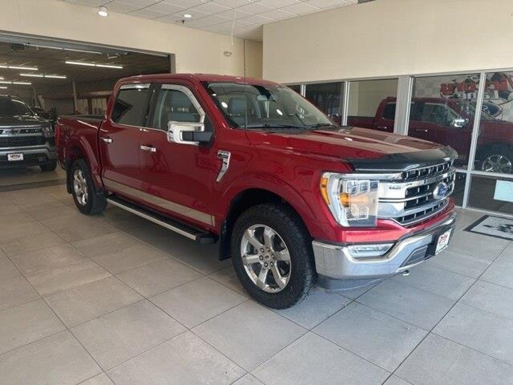 Priced below KBB Fair Purchase Price! 4WD 10-Speed Automatic Rapid Red Metallic Tinted Clearcoat 2022 Ford F-150 Lariat 2.7L V6 EcoBoost 4WD. Serving the communities of Litchfield Hillsboro Staunton Raymond Mt. Olive Greenville Springfield Farmersville Carlinville Gillespie Benld Edwardsville Bethalto Glen Carbon Highland Vandalia Pana Nokomis Morrisonville Girard Virden Jerseyville Collinsville for almost 20 years. -- This vehicle includes the following features - Bed Utility Package (BoxLink LED Box Lighting Power Tailgate and Tailgate Step w/Tailgate Work Surface) Equipment Group 501A Mid (Onboard 400W Outlet Radio: B&O Sound System by Bang & Olufsen and Universal Garage Door Opener) GVWR: 6600 lbs Payload Package Lariat Chrome Appearance Package (6 Bright Polished Running Board Chrome 2-Bar Grille w/4 Minor Bars Chrome Door & Tailgate Handles w/Body-Color Bezel Chrome Single-Tip Exhaust Chrome Skull Caps on Exterior Mirrors and Wheels: 18 Chrome-Like PVD) 4WD 18 Machined-Aluminum Wheels 3.55 Axle Ratio 4-Wheel Disc Brakes 7 Speakers ABS brakes Adjustable pedals Air Conditioning Alloy wheels AM/FM radio: SiriusXM with 360L Auto High-beam Headlights Auto Start-Stop Removal Auto-dimming door mirrors Auto-dimming Rear-View mirror Automatic temperature control Brake assist Bumpers: chrome Class IV Trailer Hitch Receiver Compass Delay-off headlights Driver door bin Driver vanity mirror Dual front impact airbags Dual front side impact airbags Electronic Locking w/3.55 Axle Ratio Electronic Stability Control Emergency communication system: SYNC 4 911 Assist Extended Range 36 Gallon Fuel Tank Exterior Parking Camera Rear Front anti-roll bar Front Center Armrest w/Storage Front dual zone A/C Front fog lights Front reading lights Front wheel independent suspension Fully automatic headlights Heated door mirrors Heated front seats Illuminated entry Integrated Trailer Brake Controller Leather-Trimmed 40/20/40 Front Seat LED Sideview Mirror Spotlights Low tire pressure warning Memory seat Navigation system: Connected Navigation Occupant sensing airbag Outside temperature display Overhead airbag Overhead console Panic alarm Passenger door bin Passenger vanity mirror Pedal memory Power door mirrors Power driver seat Power passenger seat Power steering Power windows Radio data system Radio: AM/FM SiriusXM w/360L Rear reading lights Rear seat center armrest Rear step bumper Rear window defroster Remote keyless entry Security system Speed control Speed-sensing steering Split folding rear seat Steering wheel mounted audio controls SYNC 4 w/Enhanced Voice Recognition Tachometer Telescoping steering wheel Tilt steering wheel Tough Bed Spray-In Bedliner Traction control Trip computer Turn signal indicator mirrors Variably intermittent wipers Ventilated front seats Voltmeter and Wheels: 20 Chrome-Like PVD.