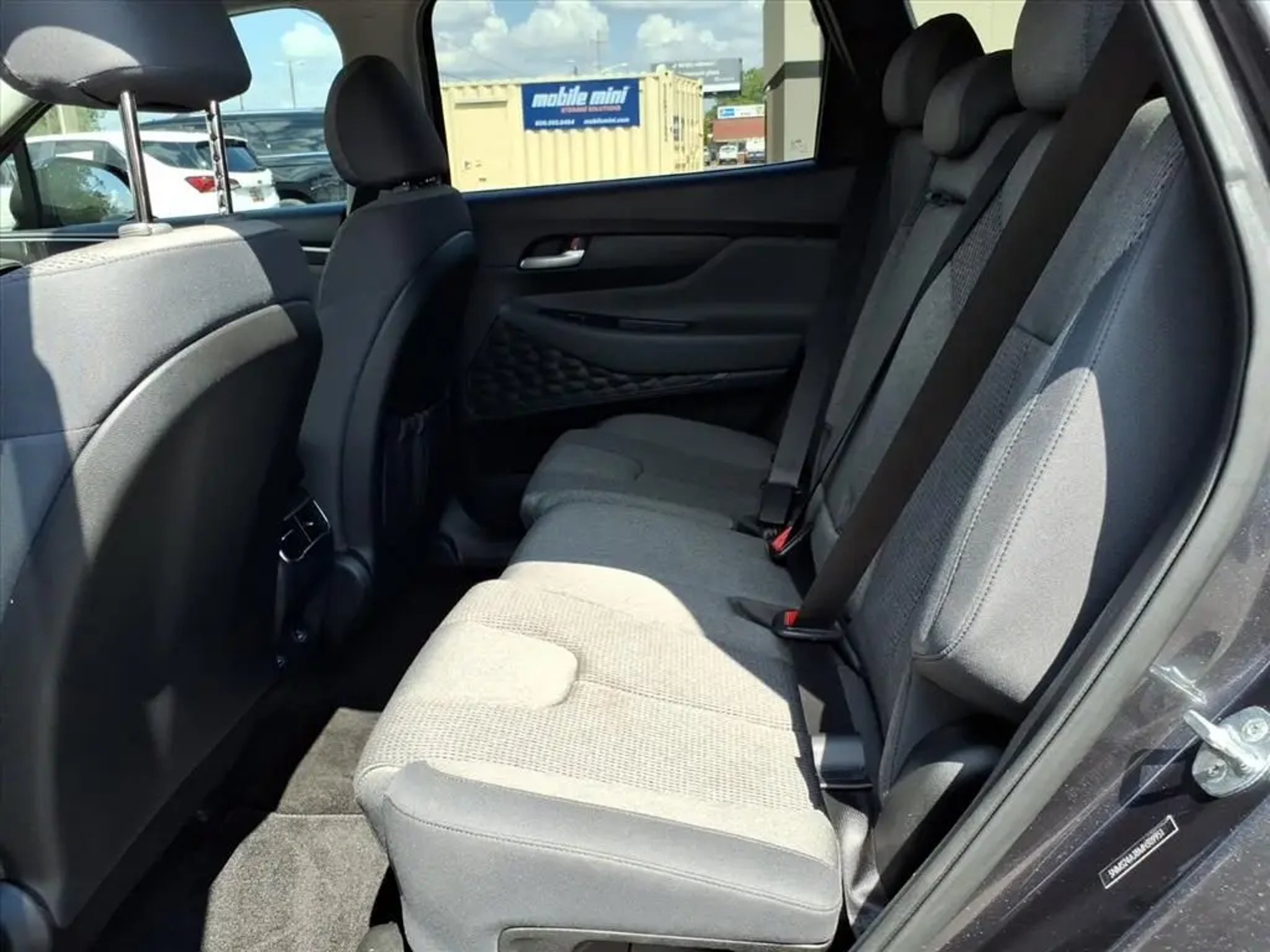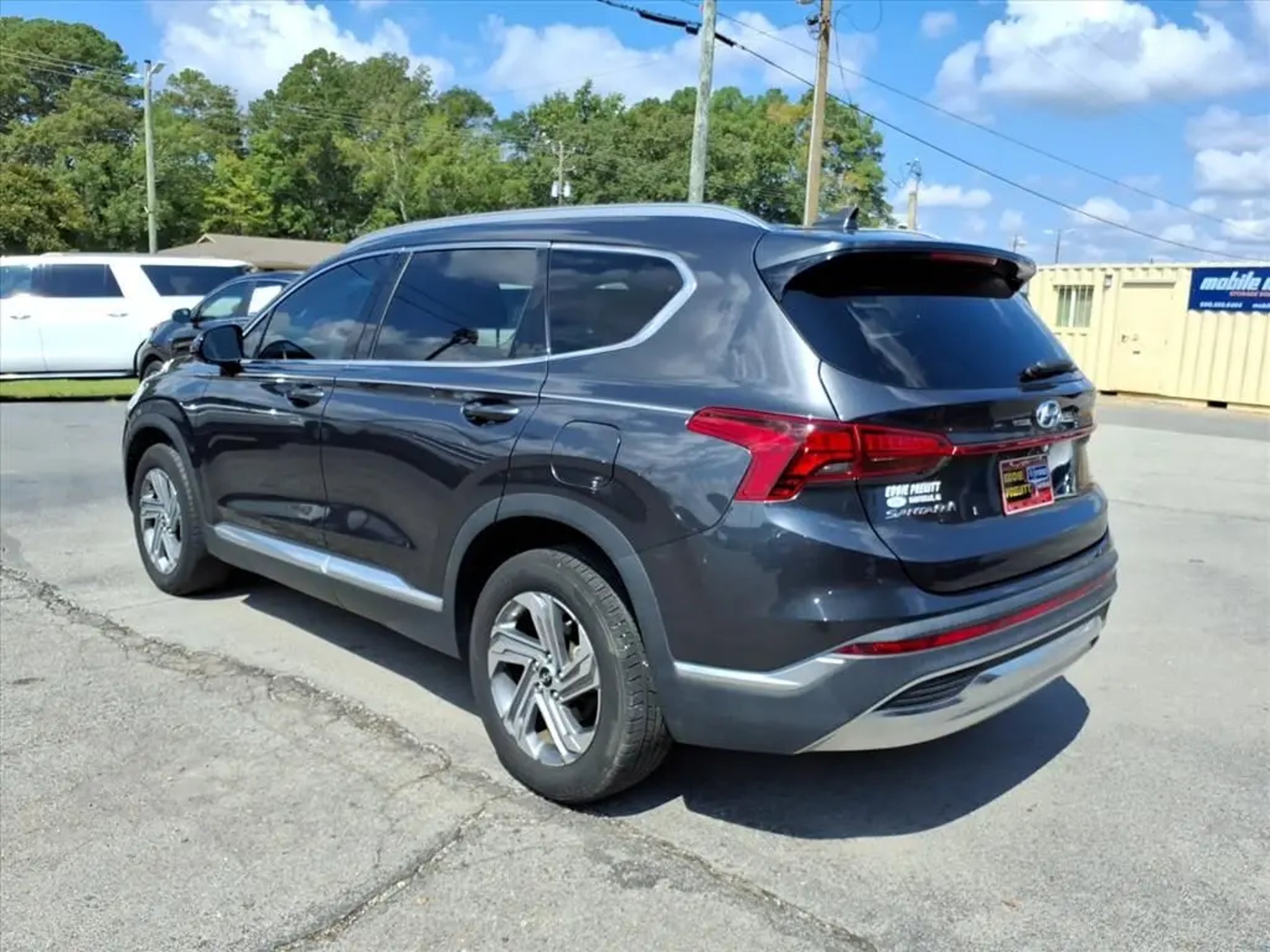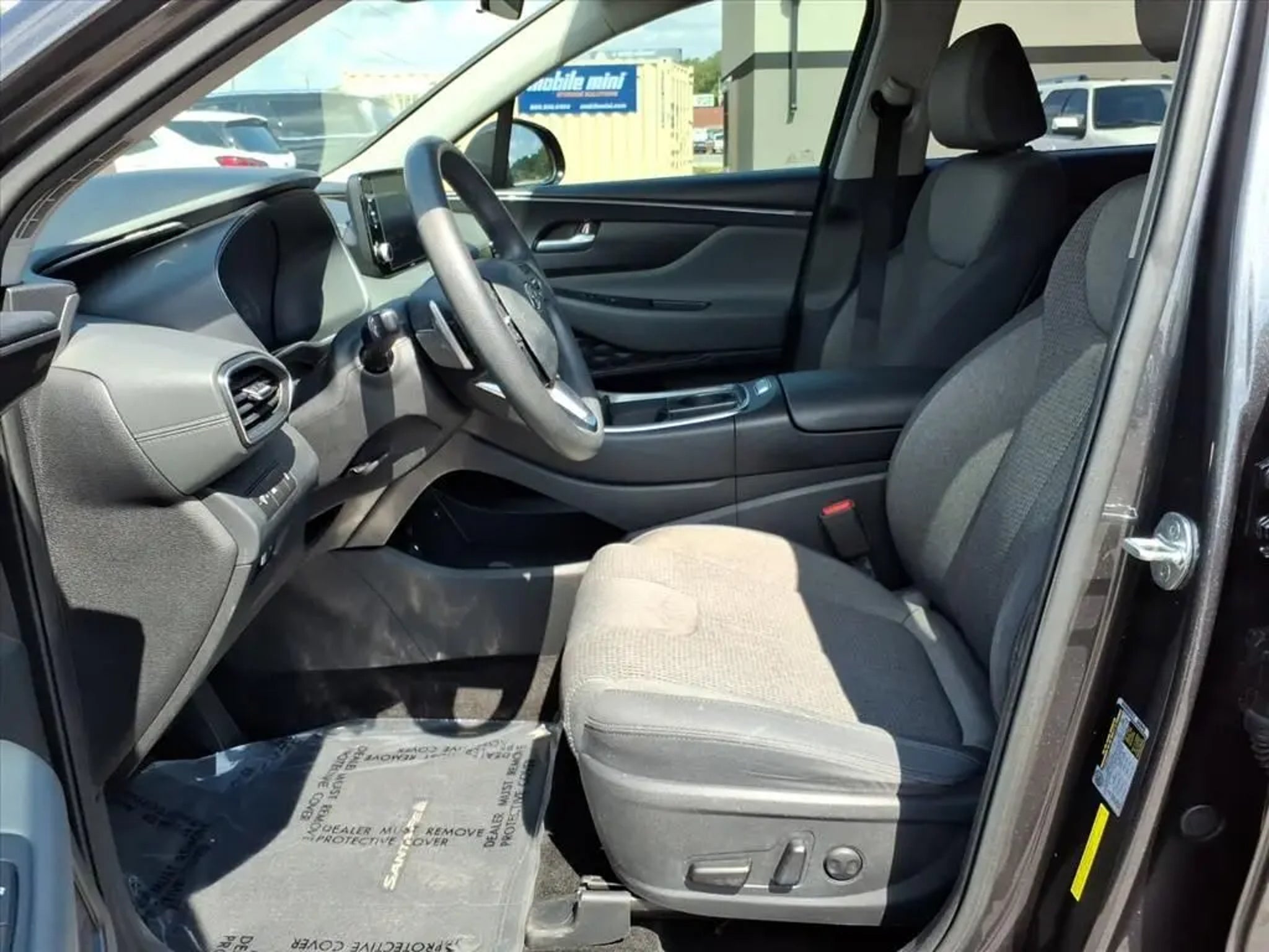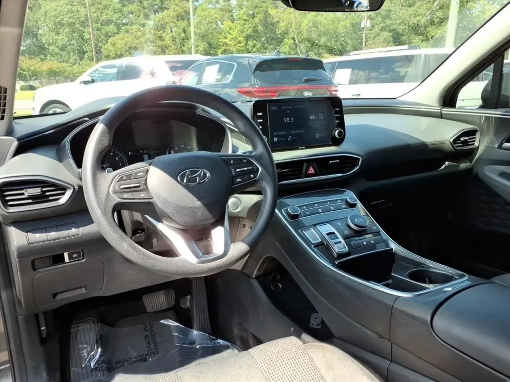 This 2021 Hyundai Santa Fe SEL 8-Speed Automatic with SHIFTRONIC is equipped with Option Group 01, 18 x 7.5J Alloy Wheels, 4-Wheel Disc Brakes, 6 Speakers, ABS brakes, Air Conditioning, Alloy wheels, AM/FM radio: SiriusXM, Apple CarPlay & Android Auto, Auto High-beam Headlights, Axle Ratio: 3.798, Brake assist, Bumpers: body-color, Cargo Cover/Screen, Carpeted Floor Mats, Delay-off headlights, Driver door bin, Driver vanity mirror, Dual front impact airbags, Dual front side impact airbags, Electronic Stability Control, Emergency communication system, Exterior Parking Camera Rear, Four wheel independent suspension, Front anti-roll bar, Front Bucket Seats, Front Center Armrest, Front reading lights, Fully automatic headlights, Heated door mirrors, Heated Front Bucket Seats, Heated front seats, Illuminated entry, Low tire pressure warning, Occupant sensing airbag, Outside temperature display, Overhead airbag, Overhead console, Panic alarm, Passenger door bin, Passenger vanity mirror, Power door mirrors, Power driver seat, Power steering, Power windows, Radio: AM/FM/MP3 Display Audio, Rear anti-roll bar, Rear seat center armrest, Rear window defroster, Rear window wiper, Remote keyless entry, Security system, Speed control, Speed-sensing steering, Split folding rear seat, Spoiler, Steering wheel mounted audio controls, Tachometer, Telescoping steering wheel, Tilt steering wheel, Traction control, Trip computer, Variably intermittent wipers, and YES Essentials Stain-Resistant Cloth Seat Trim.