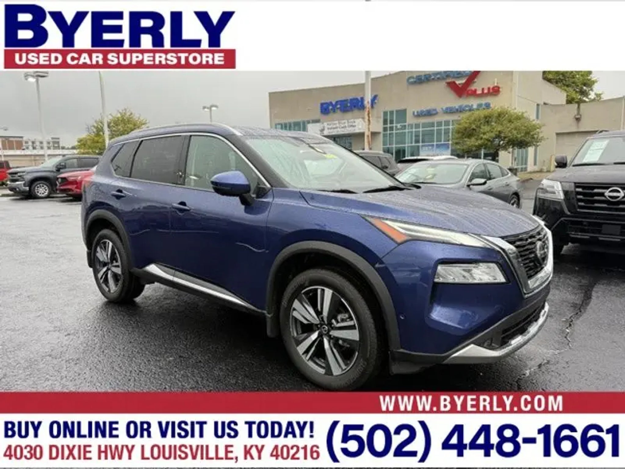 Vehicle Details 2021 Nissan Rogue Platinum AWD "” Best Price in Louisville, KY Discover exceptional value with this 2021 Nissan Rogue Platinum, located in Louisville, KY. This well-maintained compact SUV pairs a fuel-efficient 4-cylinder 2.5L gasoline engine with advanced all-wheel-drive capability for confident handling in any season. Enjoy the comfort and refinement of Platinum trim, featuring premium leather seats that keep every drive luxurious and supportive. Key features: - Remote Start for quick climate control on chilly mornings or hot afternoons - Back-Up Camera to make parking and reversing safer and easier - Hands-Free Bluetooth for seamless calling and audio streaming - Apple CarPlay integration to mirror your iPhone for navigation, music, and messaging - Leather Seats that enhance comfort and interior style This Nissan Rogue Platinum offers a refined ride, ample cargo space, and modern tech designed for convenience and connectivity. Whether commuting around Louisville or heading out for weekend adventures, the AWD system provides traction and peace of mind. Priced competitively "” this vehicle has the best price in the area "” making it a smart choice for value-minded buyers seeking quality and features. Schedule a test drive today in Louisville, KY, and experience the blend of efficiency, comfort, and capability the 2021 Nissan Rogue Platinum delivers. Equipment The Nissan Rogue is equipped with all wheel drive. This Nissan Rogue offers Android Auto for seamless smartphone integration. It offers Apple CarPlay for seamless connectivity. This Nissan Rogue has an automatic transmission. This unit features a high end BOSE stereo system. See what's behind you with the back up camera on this vehicle. Impresses the most discerning driver with the deep polished blue exterior on this 2021 Nissan Rogue . Our dealership has already run the CARFAX report and it is clean. A clean CARFAX is a great asset for resale value in the future. Set the temperature exactly where you are most comfortable in this vehicle. The fan speed and temperature will automatically adjust to maintain your preferred zone climate. The Nissan Rogue features cruise control for long trips. The vehicle has a 4 Cyl, 2.5L high output engine. Enjoy the tried and true gasoline engine in the Nissan Rogue. The HID headlamps on this vehicle light your way like never before. The Nissan Rogue features a hands-free Bluetooth phone system. This vehicle is pure luxury with a heated steering wheel. The leather seats in this 2021 Nissan Rogue are a must for buyers looking for comfort, durability, and style. Help alleviate lower back pain with the driver seat lumbar support in the Nissan Rogue. You'll never again be lost in a crowded city or a country region with the navigation system on the Nissan Rogue. Load groceries and much more with ease into the Nissan Rogue thanks to the power liftgate. Never get into a cold vehicle again with the remote start feature on this small suv. The perfect balance of space and size. this small suv cruises through the city with ease. with XM/Sirus Satellite Radio you are no longer restricted by poor quality local radio stations while driving this unit. Anywhere on the planet, you will have hundreds of digital stations to choose from.This model is equipped with all wheel drive. The vehicle offers Android Auto for seamless smartphone integration. This small suv offers Apple CarPlay for seamless connectivity. The high efficiency automatic transmission shifts smoothly and allows you to relax while driving. This small suv features a high end BOSE stereo system. See what's behind you with the back up camera on this model. Impresses the most discerning driver with the deep polished blue exterior on this Nissan Rogue. Our dealership has already run the CARFAX report and it is clean. A clean CARFAX is a great asset for resale value in the future. Set the temperature exactly where you are most comfortable in this 2021 Nissan Rogue . The fan speed and temperature will automatically adjust to maintain your preferred zone climate. Easily set your speed in it with a state of the art cruise control system. Increase or decrease velocity with the touch of a button. This vehicle has a 4 Cyl, 2.5L high output engine. Enjoy the tried and true gasoline engine in it. This small suv will allow to see the road and so much more with the HID headlights. This vehicle features a hands-free Bluetooth phone system. The vehicle is pure luxury with a heated steering wheel. The leather seats in this Nissan Rogue are a must for buyers looking for comfort, durability, and style. With the adjustable lumbar support in it your back will love you. You'll never again be lost in a crowded city or a country region with the navigation system on this unit. Enjoy the convenience of the power liftgate on this unit. Start this Nissan Rogue from inside with remote start. The perfect balance of space and size. this vehicle cruises through the city with ease. The vehicle is equipped with the latest generation of XM/Sirius Radio. Packages Illuminated Kick Plates Floor Mats with 2-Piece Cargo Area Protector Black Splash Guards (set of 4) Chrome Rear Bumper Protector **Equipment listed is based on original vehicle build and subject to change. Please confirm the accuracy of the included equipment by calling the dealer prior to purchase.**