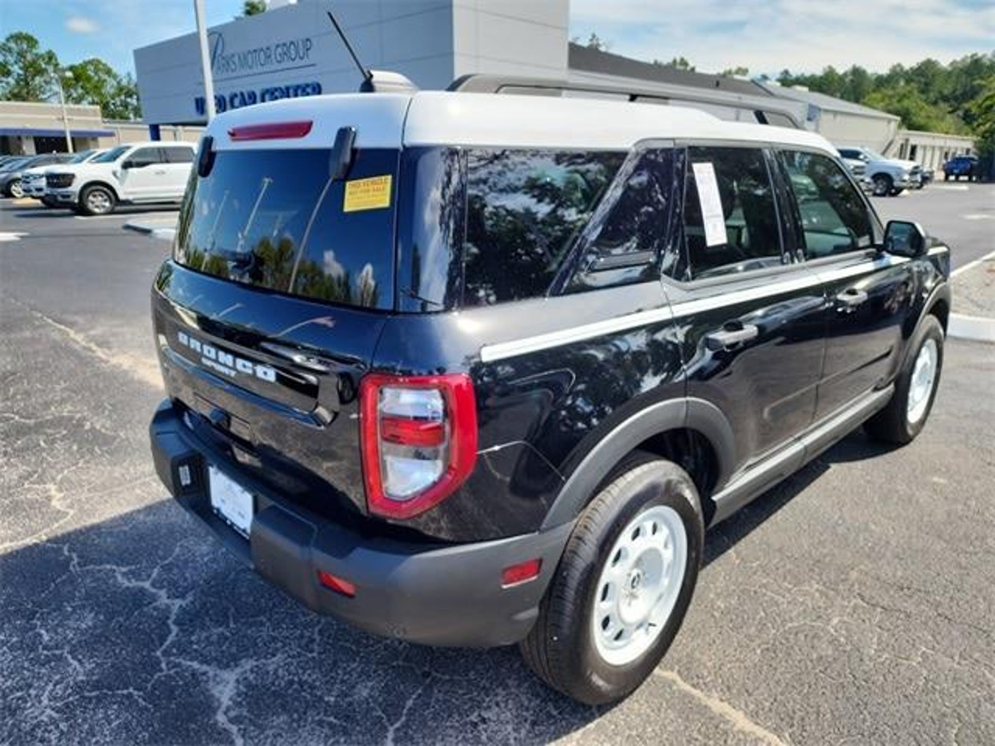 CARFAX One-Owner. Certified. Shadow Black 2025 Ford Bronco Sport Heritage 1.5L EcoBoost 4WD 8-Speed Automatic 6 Speakers, Air Conditioning, AM/FM radio: SiriusXM, AM/FM Stereo, Auto High-beam Headlights, Automatic temperature control, Brake assist, Delay-off headlights, Electronic Stability Control, Equipment Group 250A, Front Bucket Seats, Front Center Armrest, Front Driver/Passenger Seat Back Map Pockets, Fully automatic headlights, Panic alarm, Power steering, Power windows, Radio data system, Rear window defroster, Rear window wiper, Remote keyless entry, Security system, SiriusXM, Speed control, Speed-Sensitive Wipers, Steering wheel mounted audio controls, SYNC 4 w/Enhanced Voice Recognition, Variably intermittent wipers. When you buy from us, you get 2 years or 30,000 miles of maintenance included. Odometer is 1265 miles below market average! Priced below KBB Fair Purchase Price! 25/30 City/Highway MPG Ford Gold Certified Details: * Vehicle History * Roadside Assistance * and 22,000 FordPass Rewards Points to use toward first two maintenance visits * Warranty Deductible: $100 * Powertrain Limited Warranty: 84 Month/100,000 Mile (whichever comes first) from original in-service date * Limited Warranty: 12 Month/12,000 Mile (whichever comes first) after new car warranty expires or from certified purchase date * 172 Point Inspection * Transferable Warranty Final Price Includes $1,000 Trade Assist and $1,000 Finance Assist. Customer Must Trade In a Vehicle and Finance With a Preferred Dealer Lender In Order To Qualify.
