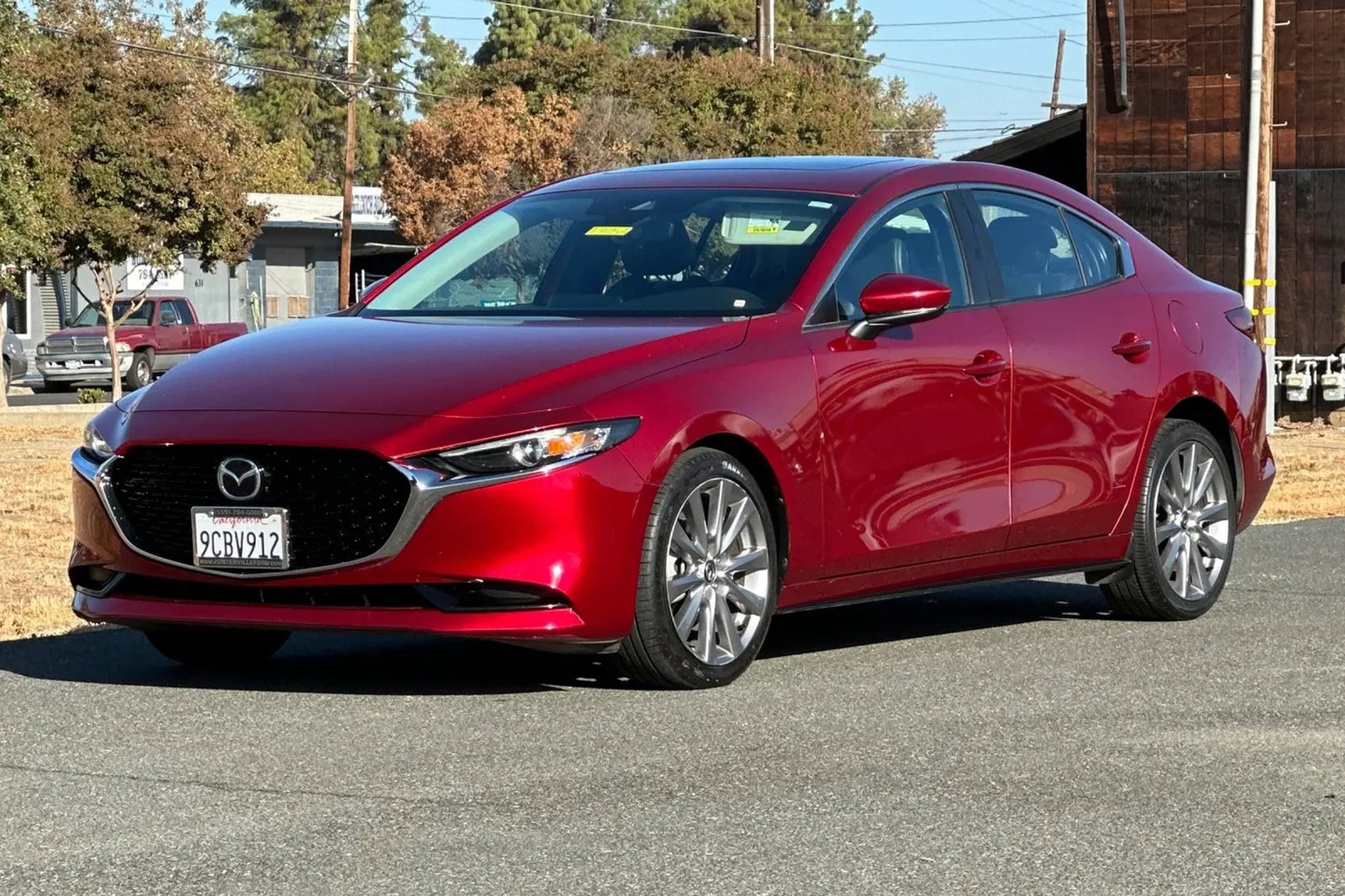 Priced below KBB Fair Purchase Price! Clean CARFAX. This 2021 Soul Red Crystal Metallic Mazda Mazda3 Preferred FWD is well equipped and includes these features and benefits: Mazda3 Preferred, 4D Sedan, I4, 6-Speed Automatic, FWD, Soul Red Crystal Metallic, Black Artificial Leather, 4-Wheel Disc Brakes, 8 Speakers, ABS brakes, Air Conditioning, Alloy wheels, AM/FM radio, AppLink/Apple CarPlay and Android Auto, Auto High-beam Headlights, Automatic temperature control, Brake assist, Bumpers: body-color, Compass, Delay-off headlights, Driver door bin, Driver vanity mirror, Dual front impact airbags, Dual front side impact airbags, Electronic Stability Control, Emergency communication system: MAZDA CONNECT, Exterior Parking Camera Rear, Front anti-roll bar, Front Bucket Seats, Front Center Armrest, Front dual zone A/C, Front reading lights, Front wheel independent suspension, Fully automatic headlights, Heated front seats, Heated Front Sport Seats, Illuminated entry, Knee airbag, Leather Shift Knob, Leatherette Seat Trim, Low tire pressure warning, Memory seat, Occupant sensing airbag, Outside temperature display, Overhead airbag, Overhead console, Panic alarm, Passenger door bin, Passenger vanity mirror, Power door mirrors, Power driver seat, Power moonroof, Power steering, Power windows, Preferred Package, Radio data system, Radio: AM/FM Audio System, Rain sensing wipers, Rear seat center armrest, Rear window defroster, Remote keyless entry, Soul Red Metallic Paint Charge, Speed control, Speed-sensing steering, Split folding rear seat, Steering wheel mounted audio controls, Tachometer, Telescoping steering wheel, Tilt steering wheel, Traction control, Trip computer, Turn signal indicator mirrors, Variably intermittent wipers, Wheels: 18 x 7J Silver Alloy, Mazda3 Preferred, 4D Sedan, I4, 6-Speed Automatic, FWD, Soul Red Crystal Metallic, Black Artificial Leather, 4-Wheel Disc Brakes, 8 Speakers, ABS brakes, Air Conditioning, Alloy wheels, AM/FM radio, AppLink/Apple CarPlay and Android Auto, Auto High-beam Headlights, Automatic temperature control, Brake assist, Bumpers: body-color, Compass, Delay-off headlights, Driver door bin, Driver vanity mirror, Dual front impact airbags, Dual front side impact airbags, Electronic Stability Control, Emergency communication system: MAZDA CONNECT, Exterior Parking Camera Rear, Front anti-roll bar, Front Bucket Seats, Front Center Armrest, Front dual zone A/C, Front reading lights, Front wheel independent suspension, Fully automatic headlights, Heated front seats, Heated Front Sport Seats, Illuminated entry, Knee airbag, Leather Shift Knob, Leatherette Seat Trim, Low tire pressure warning, Memory seat, Occupant sensing airbag, Outside temperature display, Overhead airbag, Overhead console, Panic alarm, Passenger door bin, Passenger vanity mirror, Power door mirrors, Power driver seat, Power moonroof, Power steering, Power windows, Preferred Package, Radio data system, Radio: AM/FM Audio System, Rain sensing wipers, Rear seat center armrest, Rear window defroster, Remote keyless entry, Soul Red Metallic Paint Charge, Speed control, Speed-sensing steering, Split folding rear seat, Steering wheel mounted audio controls, Tachometer, Telescoping steering wheel, Tilt steering wheel, Traction control, Trip computer, Turn signal indicator mirrors, Variably intermittent wipers, Wheels: 18 x 7J Silver Alloy. 26/35 City/Highway MPG At our dealership, we have devoted ourselves to helping and serving our customers to the best of our ability. We believe the cars we offer are the highest quality and ideal for your life needs. Porterville Ford - HOME OF THE HANDSHAKE AND A SMILE DEAL