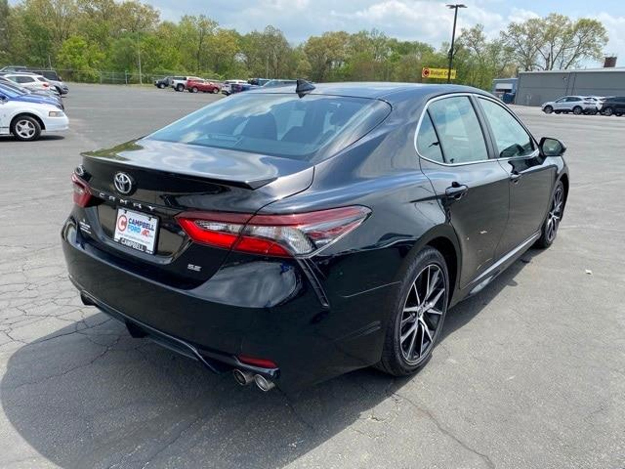 Experience reliability, style, and comfort in this ONE OWNER, CLEAN CARFAX, LOCAL TRADE 2023 Toyota Camry SE finished in sleek Black. This well-maintained sedan delivers an excellent combination of efficiency, modern features, and Toyotas legendary dependability. Powered by a responsive 2.5L I4 DOHC 16V engine paired with a smooth 8-Speed Automatic, this Camry provides confident acceleration, composed handling, and impressive fuel efficiency --perfect for commuting or weekend travel. Inside the cabin, comfort and convenience are seamlessly integrated. Enjoy Automatic Temperature Control, Front Dual Zone A/C, and a Power Driver Seat that makes every drive more enjoyable. The interior is thoughtfully equipped with user-friendly technology, including AM/FM Radio: SiriusXM, 6 Speakers, and Steering Wheel Mounted Audio Controls, allowing you to manage your music and calls without distraction. Designed for stability and control, this Camry SE features Speed-Sensing Steering, Traction Control, Electronic Stability Control, Rear Anti-Roll Bar, and Brake Assist, all working together to deliver a safe and composed driving experience in a variety of road conditions. Toyotas Auto High-Beam Headlights enhance nighttime visibility, while the Rear Window Defroster keeps your rear glass clear during cold or damp weather. Practicality is built into every angle of this sedan. The Power Steering system offers smooth maneuverability, making city driving and tight parking effortless. The sporty SE styling gives this Camry a bold road presence, while the solid engineering underneath ensures long-term durability you can count on. With its CARFAX One-Owner history, Clean CARFAX, and status as a LOCAL TRADE, this 2023 Toyota Camry SE stands out as a vehicle that has been well cared for and maintained. It delivers the ideal combination of comfort, safety, performance, and value --all wrapped in Toyotas trusted reputation. If you're looking for a modern, efficient, and dependable sedan that's ready for your daily drive, this Camry SE is an excellent choice.