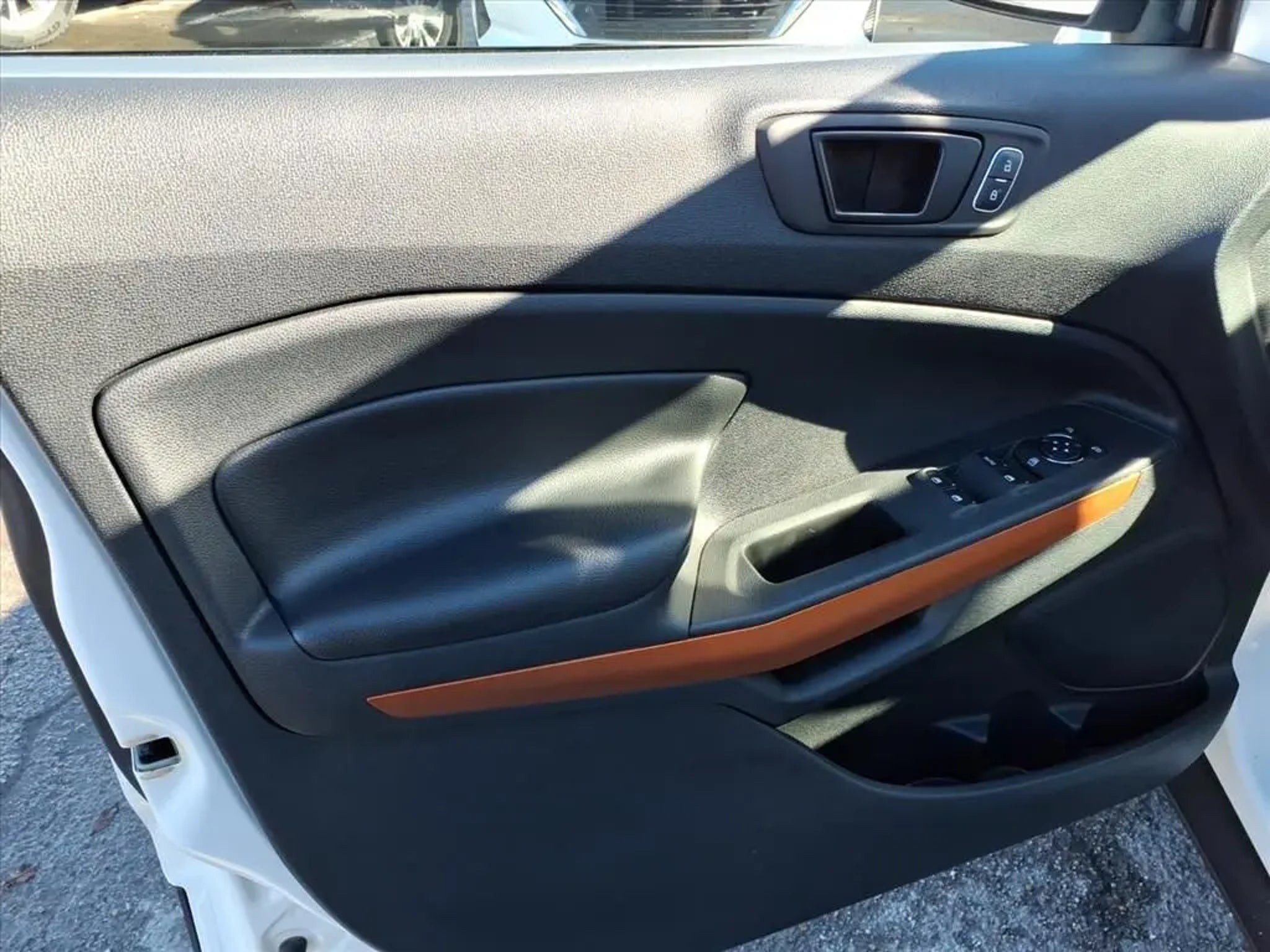 This 2018 Ford EcoSport SES 6-Speed Automatic is equipped with Equipment Group 300A, 4-Wheel Disc Brakes, 7 Speakers, ABS brakes, Air Conditioning, Alloy wheels, AM/FM radio: SiriusXM, AppLink/Apple CarPlay and Android Auto, Auto-dimming Rear-View mirror, Automatic temperature control, Axle Ratio: 3.51, Brake assist, Bumpers: body-color, Compass, Delay-off headlights, Driver door bin, Driver vanity mirror, Dual front impact airbags, Dual front side impact airbags, Electronic Stability Control, Emergency communication system: SYNC 3 911 Assist, Exterior Parking Camera Rear, Front anti-roll bar, Front Bucket Seats, Front Center Armrest, Front fog lights, Front reading lights, Front wheel independent suspension, Fully automatic headlights, Heated front seats, Illuminated entry, Knee airbag, Leather Shift Knob, Low tire pressure warning, Navigation System, Occupant sensing airbag, Outside temperature display, Overhead airbag, Overhead console, Panic alarm, Partial Leather-Trimmed Heated Bucket Seats, Passenger door bin, Passenger vanity mirror, Power door mirrors, Power driver seat, Power moonroof, Power steering, Power windows, Radio data system, Radio: AM/FM Stereo w/MP3 Capable, Rain sensing wipers, Rear anti-roll bar, Rear Parking Sensors, Rear seat center armrest, Rear side impact airbag, Rear window defroster, Rear window wiper, Remote keyless entry, Roof rack, SiriusXM Radio, Speed control, Speed-sensing steering, Split folding rear seat, Spoiler, Steering wheel mounted audio controls, SYNC 3 Communications & Entertainment System, SYNC Connect, Tachometer, Telescoping steering wheel, Tilt steering wheel, Traction control, Trip computer, Turn signal indicator mirrors, Variably intermittent wipers, and Wheels: 17 Premium Dark Tarnish Metallic-Painted.