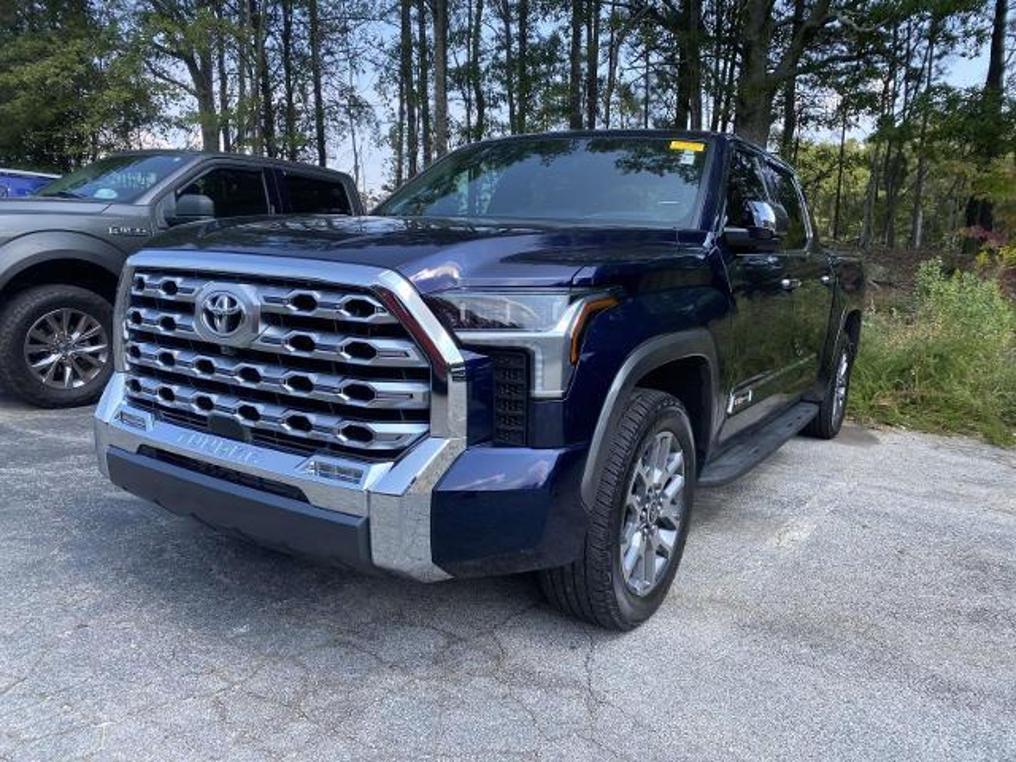 Blue 2023 Toyota Tundra 1794 RWD 10-Speed Automatic 3.4L V6 Black Leather. Digital/Analog AppearanceTracker SystemAirbag Occupancy SensorDual Stage Driver And Passenger Seat-Mounted Side AirbagsBluetooth ConnectionDriver Vanity MirrorImmobilizerMirror MemoryNavigation SystemPass-Through Rear SeatPower Door LocksRear DefrostStability ControlTelematicsWoodgrain Interior TrimPower Rear Window w/DefrosterRain Detecting Variable Intermittent WipersDriver Foot RestPassenger SeatFront And Rear Parking SensorsTire Pressure Monitor System (TPMS) Low Tire Pressure WarningAdjustable Steering WheelAerial View Display SystemAM/FM StereoAutomatic HeadlightsHeated Steering WheelPassenger Vanity MirrorPower Passenger SeatBody-Colored Front Bumper w/Black Rub Strip/Fascia AccentChrome Door HandlesAir FiltrationDelay Off Interior LightingFront CupholderRear CupholderGas-Pressurized Shock AbsorbersRear Child Safety Locks10-Speed A/TA/CBack-Up CameraDriver Illuminated Vanity MirrorKeyless EntryPanoramic RoofRain Sensing WipersTailgate Rear Cargo Access1 12V DC Power Outlet and 1 Interior 120V AC Power OutletHeated Leather/Metal-Look Steering WheelHomeLink Garage Door TransmitterClass IV Towing Equipment -inc: Hitch Brake Controller and Trailer Sway ControlTrailer Wiring HarnessAdaptive Cruise ControlDaytime Running LightsPower WindowsSatellite RadioSeat MemoryTrip ComputerDeep Tinted GlassDriver And Passenger Visor Vanity Mirrors w/Driver And Passenger Illumination Driver And Passenger Auxiliary MirrorDriver Information CenterRemote Releases -Inc: Mechanical FuelSingle Stainless Steel ExhaustAuto-Dimming Rearview MirrorBrake Actuated Limited Slip DifferentialDriver MonitoringHeated Front Seat(s)Intermittent WipersRear Parking AidRequires SubscriptionTires - Front All-SeasonTires - Rear All-SeasonFully Galvanized Steel PanelsSteel Spare WheelCruise Control w/Steering Wheel ControlsInterior Trim -inc: Simulated Wood/Metal-Look Instrument Panel Insert Simulated Wood/Metal-Look Door Panel Insert Simulated Wood/Metal-Look Console Insert and Metal-Look Interior AccentsLeather Gear Shifter Material3.31 Axle RatioDouble Wishbone Front Suspension w/Coil SpringsElectric Power-Assist Speed-Sensing SteeringEngine Oil CoolerTransmission w/Driver Selectable Mode and Oil CoolerPre-Collision System (PCS)4-Wheel Disc BrakesHeadlights-Auto-LevelingKeyless StartPassenger Adjustable LumbarPrivacy GlassRear Wheel DriveSteering Wheel Audio ControlsVariable Speed Intermittent WipersFront Fog LampsCab Mounted Cargo LightsDriver SeatIlluminated Locking Glove Box32.2 Gal. Fuel TankBrake Actuated Limited Slip DifferentialEngine: 3.4L V6 i-FORCE (389 HP) -inc: twin-turbochargers w/water-cooled intercooler and 24-valve DOHC chain drive w/Dual VVT-iTransmission: 10-Speed Electronic Controlled Auto -inc: intelligence (ECT-i) sequential shift mode uphill/downhill shift logic and TOW/HAUL driving modesDriver Monitoring-AlertCooled Front Seat(s)Front Side Air BagKnee Air BagLED HeadlightsDashboard Storage Driver / Passenger And Rear Door Bins and 2nd Row Underseat StorageFull Cloth HeadlinerPower Tilt/Telescoping Steering ColumnPanoramic View Monitor Left Side CameraBrake AssistBucket SeatsHeated MirrorsTire Pressure MonitorChrome Bodyside Insert and Gray Wheel Well TrimFull-Size Spare Tire Stored Underbody w/CrankdownDay-Night Auto-Dimming Rearview MirrorFront Center Armrest and Rear Center ArmrestLeatherette Door Trim InsertOutside Temp GaugeRear-Wheel DrivePanoramic View Monitor Front CameraGasoline FuelMulti-Zone A/CSmart Device IntegrationBody-Colored Rear Step Bumper w/Black Rub Strip/Fascia Accent and Chrome Bumper InsertLED BrakelightsDelayed Accessory PowerPerimeter Alarm1720# Maximum PayloadOutboard Front Lap And Shoulder Safety Belts -inc: Rear Center 3 Point Height Adjusters and PretensionersChild Safety LocksConventional Spare TireL>