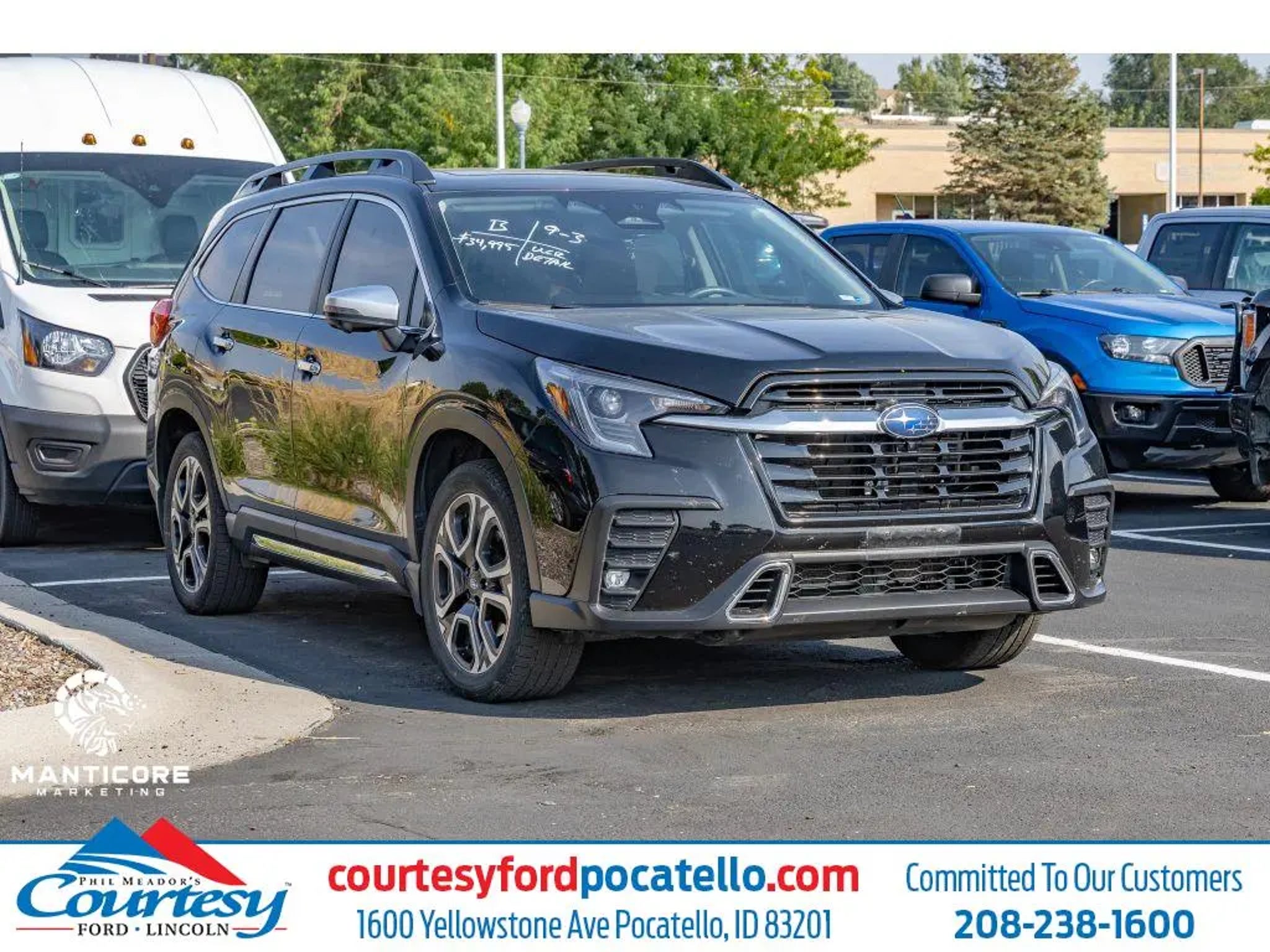 Details > 2023 Subaru Ascent AWD Touring 4DR SUV For Sale in Chubbuck, ID Private Party Sellers Click here to place your ad now! You auta tell them you saw the ad in AutaBuy when you call or email. 1/32 2/32 3/32 4/32 5/32 6/32 7/32 8/32 9/32 10/32 11/32 12/32 13/32 14/32 15/32 16/32 17/32 18/32 19/32 20/32 21/32 22/32 23/32 24/32 25/32 26/32 27/32 28/32 29/32 30/32 31/32 32/32 View 32 Photos View All Add to My Garage Parked in Your Garage! Phil Meador Courtesy Ford, Inc. Contact Seller: I would like to: Make Offer Check Availability Ask A Question Request More Photos Check Financing Options Send a copy of this message to me Add this listing to my garage Send to Mobile Mileage 65,489 Exterior Color Crystal Black Silica Interior Color Java Brown Doors 4 Engine 2.4L H4 Transmission 8 Speed Stock # FT31375A VIN 4S4WMAWD0P3435796 2023 Subaru Ascent AWD Touring 4DR SUV Description: One Owner. Off Lease. Local Trade in. Moonroof. Roof Rack. Satellite Radio. Let our highly skilled and highly experienced sales team help you with the EASIEST buying process - ever- anywhere! · Mileage: 65,489 · Color: Crystal Black Silica Mileage 65,489 Exterior Color Crystal Black Silica Interior Color Java Brown Doors 4 Engine 2.4L H4 Transmission 8 Speed Stock # FT31375A VIN 4S4WMAWD0P3435796 Add to My Garage Parked in Your Garage! Message Seller Phil Meador Courtesy Ford, Inc. Contact Seller: I would like to: Make Offer Check Availability Ask A Question Request More Photos Check Financing Options Send a copy of this message to me Add this listing to my garage Offered for sale by Phil Meador Courtesy Ford, Inc. CHUBBUCK, ID Offered for sale by Phil Meador Courtesy Ford, Inc. CHUBBUCK, ID [entire inventory] Ask Auta Intelligence What engine options did these come with? What safety features did this model offer? When was this model first introduced? Do you have a similar car to sell? List It Now! Questions about this car? Ask Auta Intelligence for production numbers, available options, etc. · Subscribe to AutaBuy! · Send a Gift Subscription Notice to a Friend