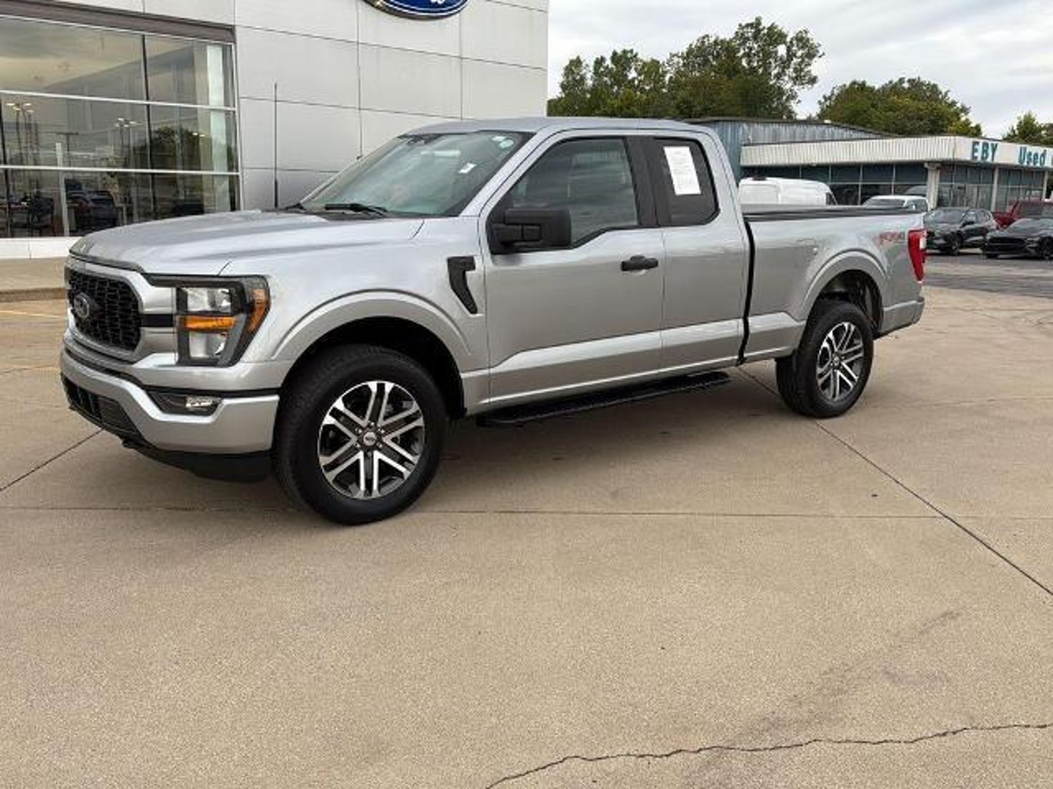 This *2023 Ford F-150 XL* has a Iconic Silver Metallic exterior and an Black/Bronze interior color. 43326 miles. Stock Number PKF03595. You can connect with us by calling . One Owner! *OTHER NOTABLE FEATURES AND OPTIONS YOU SHOULD KNOW ABOUT:* === FX4 Off-Road Package ($1095 value) === * Skid Plates * 4x4 FX4 Off-Road Bodyside Decal * Hill Descent Control * Off-Road Tuned Front Shock Absorbers * Monotube Rear Shocks * Rock Crawl Mode * Electronic Locking with 3.55 Axle Ratio === STX Appearance Package ($1835 value) === * Molded-In Color Black Honeycomb Style Grille * SYNC 4 with Enhanced Voice Recognition * Box Side Decals * Body-Color Front and Rear Bumpers * Rear Window Fixed Privacy Glass with Defroster === Bed Utility Package ($695 value) === * BoxLink * Zone Lighting * LED Box Lighting * Tailgate Step with Tailgate Work Surface === Equipment Group 101A Standard === * Electronic 10-Speed Automatic Transmission === Skid Plates ($160 value) === === Fog Lamps ($140 value) === === Rear Window Defroster ($220 value) === === 3.55 Electronic Locking Axle Ratio ($470 value) === === Fixed Glass Rear Window ($320 value) === * Includes privacy glass. === Black Platform Running Boards ($250 value) === === BoxLink ($80 value) === * Includes four premium locking cleats. === Carpet Floor Covering w/Carpeted Floor Mats ($145 value) === * Includes carpet floor covering with front and rear carpeted floor mats. === Sport Cloth 40/Console/40 Front Seats ($295 value) === * Includes unique sport cloth 40/console/40 front seats four way adjustable driver and passenger headrests manual driver and passenger lumbar adjustments and flow-through console with steering column mounted shift. === FX4 Off-Road Package ($1095 value) === * Includes electronic locking rear differential tray style floor liner hill descent control rock crawl mode front and rear off-road tuned shock absorbers rear monotube shock absorbers and skid plates for fuel tank transfer case and front differential. === Class IV Trailer Hitch ($315 value) === * Includes Class IV trailer hitch 4-pin and 7-pin wiring and smart trailer tow connector. === Interior Work Surface ($195 value) === === 20 In. Machined Aluminum Wheels with Magnetic Painted Pockets ($1225 value) === === Full Coverage Rubber Floor Mats (No Carpet Mat) ($160 value) === === SYNC 4 with Enhanced Voice Recognition ($325 value) === * Includes SYNC 4 with enhanced conversational voice recognition 8 in. LCD capacitive touchscreen connected navigation wireless Apple CarPlay wireless Android Auto cloud connected AppLink 911 Assist and digital owners manual. === Commercial Roadside Assistance Kit ($230 value) === === Wheel Lock Kit - Exposed ($75 value) === === Bed Utility Package ($695 value) === * Includes four BoxLink premium locking cleats tailgate step and tailgate work surface. === STX Appearance Package ($2585 value) === * Includes 18 inch machined-aluminum wheels with Magnetic painted pockets 275/65R18 BSW all-terrain tires black honeycomb grille with body-color surround body-color front and rear bumpers STX sport box side decal fog lamps electronic rear window defroster privacy glass unique black sport cloth upholstery manual driver and passenger lumbar adjustment seat back driver and passenger map pockets SYNC 4 with enhanced conversational voice recognition 8 in. LCD capacitive touchscreen connected navigat>