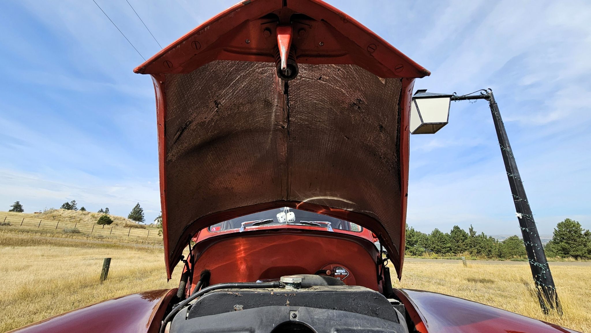 This car is powered by a 350 Vortec Engine and a 350 Turbo Automatic Transmission. Burnt Orange exterior color with a Gray interior from a 1998 Buick Riviera. Frame off restoration in 2000 by the current owner and his buddy. The Front Hood and Fenders are from a 1956 Cadillac and the taillights are from a 1959 Cadillac. It has a frenched in Suburban taillight. The Roof has been chopped 2 1/2" and the Rear Fenders widened 2 1/2". It has Bulldog Door Locks, a GT Grant Steering wheel, upgraded Radio, A/C, Power Steering, Power Windows, Disc Brakes, Air Shocks, a Retractable Antenna and Laker Pipes Dual Exhaust.