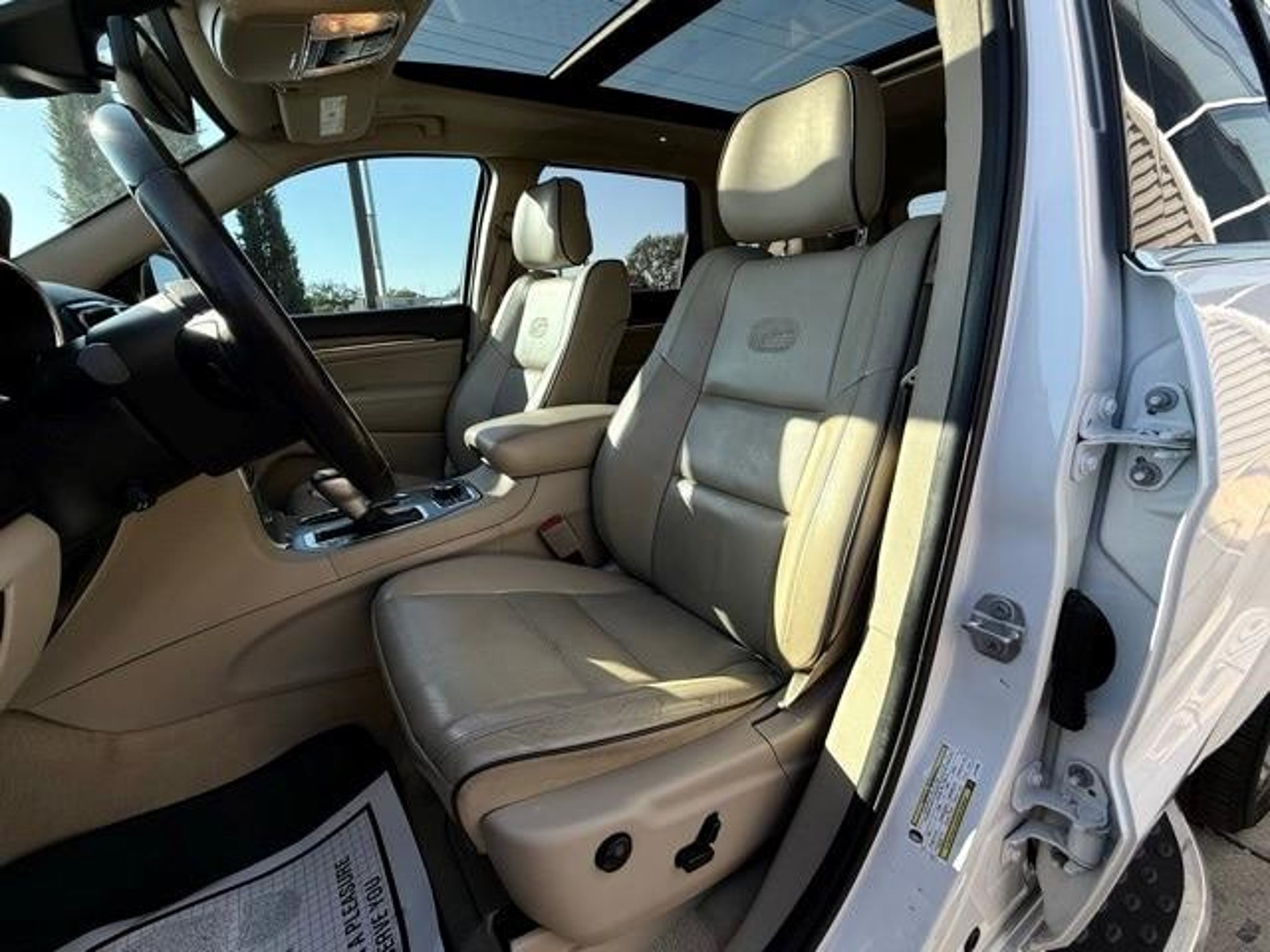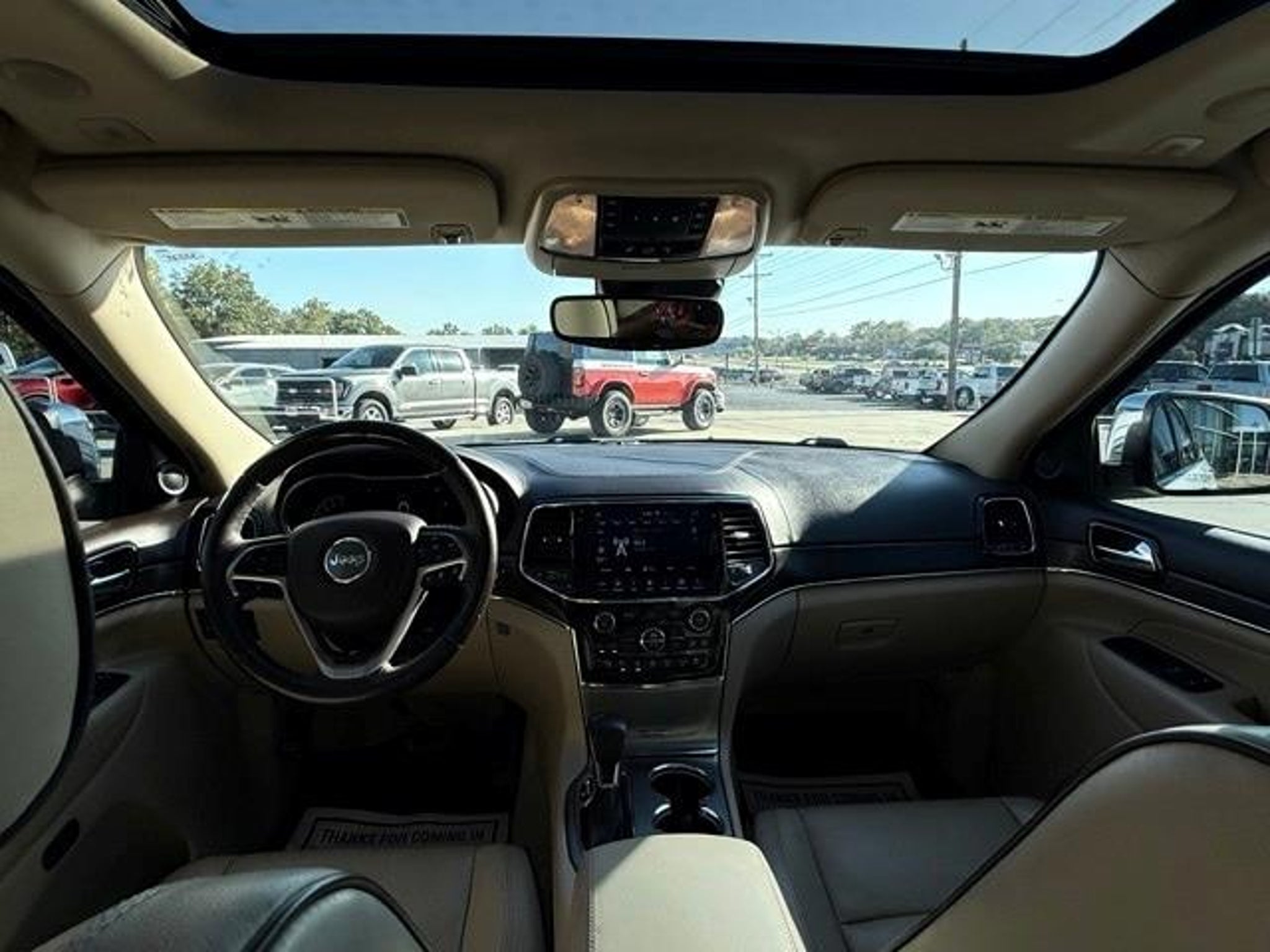 2020 Jeep Grand Cherokee Overland 4WD. 3.6L V6 24V VVT 4WD 18/25 City/Highway MPG Protech II (Adaptive Cruise Control w/Stop, Advanced Brake Assist, Full Speed FWD Collision Warn Plus, Lane Departure Warning Plus, Parallel & Perp Park Assist w/Stop, and Rain Sensitive Windshield Wipers), Quick Order Package 2BP, 4WD, 1-Year SiriusXM Guardian Trial, 10 Speakers, 3.45 Rear Axle Ratio, 4-Wheel Disc Brakes, 4G LTE Wi-Fi Hot Spot, 7 & 4 Pin Wiring Harness, 8.4 Touchscreen Display, ABS brakes, Active Noise Control System, Air Conditioning, Alloy wheels, AM/FM radio: SiriusXM, Anti-whiplash front head restraints, Apple CarPlay, Apple CarPlay/Android Auto, Audio memory, Auto High-beam Headlights, Auto-dimming door mirrors, Auto-dimming Rear-View mirror, Auto-leveling suspension, Automatic temperature control, Brake assist, Brown Light Frost Interior Color, Bumpers: body-color, Class IV Receiver Hitch, Compass, Delay-off headlights, Driver door bin, Driver vanity mirror, Dual Bright Exhaust Tips, Dual front impact airbags, Dual front side impact airbags, Electronic Stability Control, Emergency communication system: SiriusXM Guardian, Engine Oil Cooler, Four wheel independent suspension, Front anti-roll bar, Front Bucket Seats, Front Center Armrest w/Storage, Front dual zone A/C, Front fog lights, Front License Plate Bracket, Front reading lights, Fully automatic headlights, Garage door transmitter, Genuine wood dashboard insert, Google Android Auto, GPS Antenna Input, GPS Navigation, HD Radio, Heated door mirrors, Heated front seats, Heated rear seats, Heated steering wheel, Heavy-Duty Engine Cooling, High intensity discharge headlights: Bi-Xenon, Illuminated entry, Integrated Center Stack Radio, Integrated Voice Command w/Bluetooth, Knee airbag, Leather Shift Knob, Leather steering wheel, Leather Trim Seats w/Edge Welting, Low tire pressure warning, Memory seat, NAVIGATION, Normal Duty Suspension, Occupant sensing airbag, Outside temperature display, Overhead airbag, Overhead console, Panic alarm, ParkView Rear Back-Up Camera, Passenger door bin, Passenger vanity mirror, Power door mirrors, Power driver seat, Power Liftgate, Power moonroof, Power passenger seat, Power steering, Power windows, Radio data system, Radio: Uconnect 4C Nav w/8.4 Display, Rain sensing wipers, Rear anti-roll bar, Rear reading lights, Rear seat center armrest, Rear window defroster, Rear window wiper, Remote keyless entry, Security system, SiriusXM Satellite Radio, SiriusXM Traffic Plus, SiriusXM Travel Link, Speed control, Speed-sensing