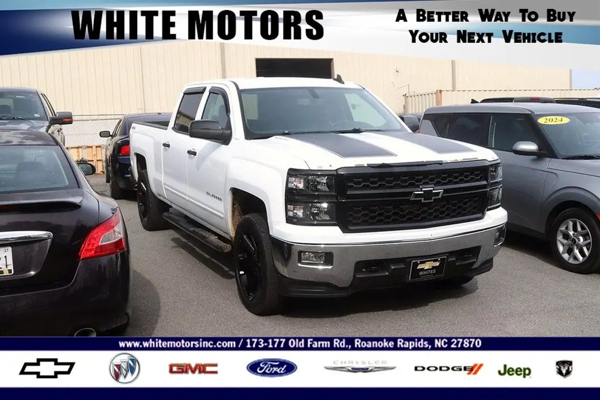 All Routine Maintenance Up To Date. 2015 Chevrolet Silverado 1500 LT LT1 Summit White Odometer is 16684 miles below market average! Equipped with All Star Edition (110-Volt AC Power Outlet, Dual-Zone Automatic Climate Control, Electric Rear-Window Defogger, Front Halogen Fog Lamps, Radio: AM/FM 8 Diagonal Color Touch Screen, Rear Vision Camera w/Dynamic Guide Lines, Remote Vehicle Starter System, SiriusXM Satellite Radio, and Theft Deterrent System (Unauthorized Entry)), Trailering Equipment (Heavy-Duty Rear Locking Differential), 10-Way Power Driver's Seat Adjuster, 150 Amp Alternator, 4-Wheel Disc Brakes, 4.2 Diagonal Color Display Driver Info Center, 40/20/40 Front Split Bench Seat, 6 Speaker Audio System, 6 Speakers, ABS brakes, Air Conditioning, Alloy wheels, AM/FM radio: SiriusXM, Auxiliary External Transmission Oil Cooler, Bluetooth® For Phone, Body Color Bodyside Moldings, Body Color Door Handles, Body-Color Mirror Caps, Body-Color Power Adjustable Heated Outside Mirrors, Bodyside moldings, Brake assist, Bumpers: chrome, CD player, Cloth Seat Trim, Color-Keyed Carpeting w/Rubberized Vinyl Floor Mats, Compass, Deep-Tinted Glass, Delay-off headlights, Driver & Front Passenger Illuminated Vanity Mirrors, Driver door bin, Driver vanity mirror, Dual front impact airbags, Dual front side impact airbags, Electronic Stability Control, Emergency communication system: OnStar Directions & Connections, EZ Lift & Lower Tailgate, Front anti-roll bar, Front Center Armrest w/Storage, Front Chrome Bumper, Front License Plate Kit, Front reading lights, Front wheel independent suspension, Fully automatic headlights, Heated door mirrors, Illuminated entry, Leather Wrapped Steering Wheel w/Cruise Controls, LED Cargo Box Lighting, Low tire pressure warning, Manual Tilt Wheel Steering Column, Manual Tilt/Telescoping Steering Column, Occupant sensing airbag, OnStar 6 Months Directions & Connections Plan, OnStar w/4G LTE, Outside temperature display, Overhead airbag, Overhead console, Panic alarm, Passenger door bin, Passenger vanity mirror, Power door mirrors, Power steering, Power windows, Power Windows w/Driver Express Up, Premium audio system: Chevrolet MyLink, Radio data system, Radio: AM/FM Audio System w/Chevrolet MyLink, Rear 60/40 Folding Bench Seat (Folds Up), Rear Chrome Bumper, Rear reading lights, Rear seat center armrest, Rear step bumper, Rear Wheelhouse Liners, Remote Keyless Entry, Remote keyless entry, Single Slot CD/MP3 Player, Speed control, Speed-sensing steering, Split folding rear seat, Spray-On Pickup Box Bed Liner, Steering Wheel Audio Controls, Steering wheel mounted audio controls, Tachometer, Tilt steering wheel, Traction control, Trip computer, Variably intermittent wipers, Voltmeter, Wheel Locks (Set of 4) (LPO), and Wheels: 17 x 8 Bright Machined Aluminum. Family owned and operated since 1938. BUY ONLINE-TEXT-EMAIL-CHAT-PHONE. A better way to buy your next vehicle. Where a handshake still means something. Serving Roanoke Rapids, Weldon, Halifax, Scotland Neck, Emporia, South Hill, Franklin, Henderson, Louisburg, Murfreesboro, Littleton, Lake Gaston. We sale nationwide!