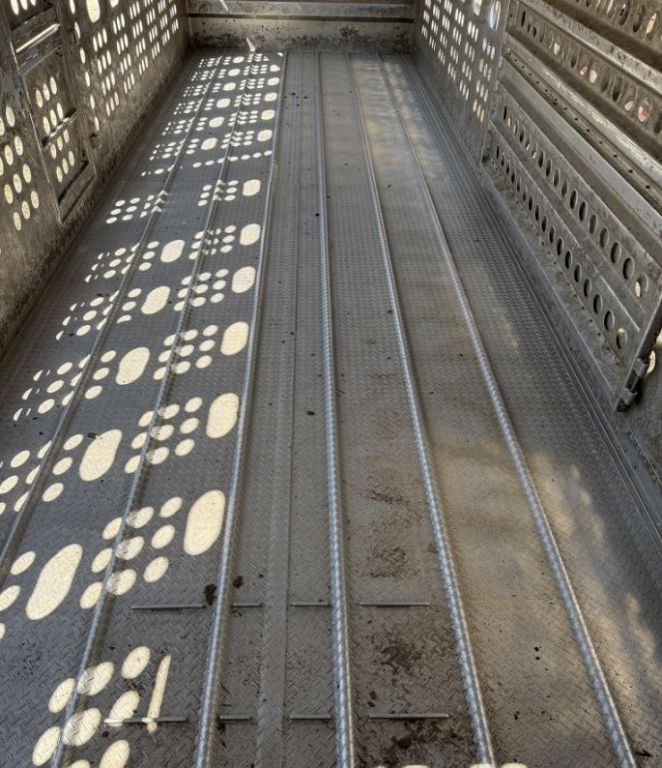 2016 Merritt Livestock Trailer This 2016 Merritt livestock trailer measures 53 x 102 with a 3/4 jail configuration, upper crowd gate, rear safety gate, and counterbalance. Features include slat boards in the upper nose, low pro 24.5 tires, all aluminum wheels, cleated floors, dual lift, and 9-9-5 lights with 7 on the rear post. Built with durability and livestock handling in mind, this trailer is ready to work. Located in El Dorado, KS 67042 For more information, please call 833-265-6113 and mention ID 58525