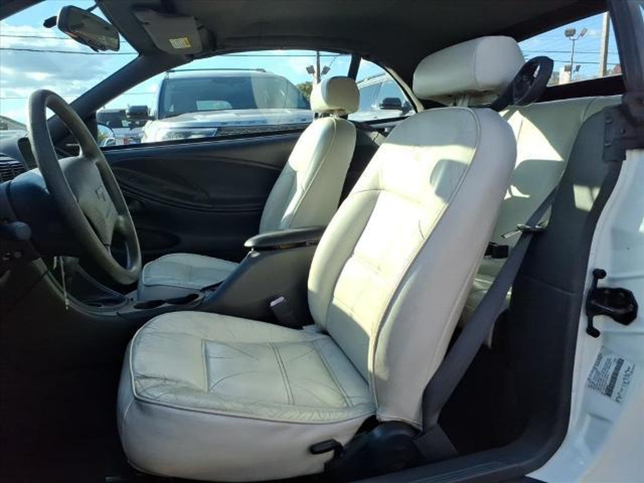 Clean CARFAX. 2000 Ford Mustang V6 White RWD 4-Speed Automatic with Overdrive 3.8L V6 EFI OHV 12V Federal 190hp Lilliston Ford is proud to offer this terrific-looking 2000 Ford Mustang a positively beautiful Convertible with the following Features: 4 Speakers, 4-Wheel Disc Brakes, Air Conditioning, Alloy wheels, AM/FM radio, Bumpers: body-color, Cassette, CD player, Cloth Bucket Seats, Convertible roof lining, Driver door bin, Driver vanity mirror, Dual front impact airbags, Front anti-roll bar, Front Bucket Seats, Front Center Armrest w/Storage, Front reading lights, Front wheel independent suspension, Glass rear window, Illuminated entry, Panic alarm, Passenger door bin, Passenger vanity mirror, Power convertible roof, Power door mirrors, Power steering, Power windows, Rear anti-roll bar, Remote keyless entry, Tachometer, Tilt steering wheel, Variably intermittent wipers, and Voltmeter. CALL 856-691-2020 TO SCHEDULE YOUR CONTACT FREE TEST DRIVE TODAY!