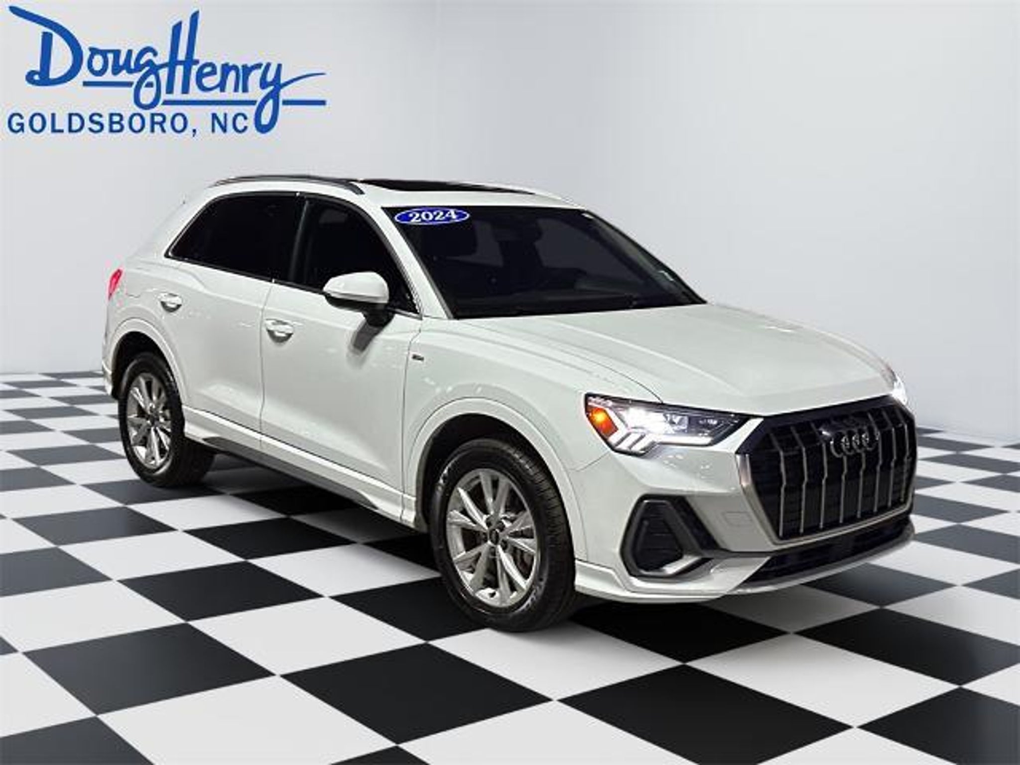 2024 Audi Q3 Premium S Line quattro Take a moment to stop by and see if this is the vehicle that best meets your needs. Located at 709 HWY 70 Bypass East in Goldsboro, directly beside Pizza Inn. Ask one of our trained professionals about a vehicle demonstration and test drive. 2.0L 4-Cylinder TFSI S Line quattro 4D Sport Utility quattro 20/28 City/Highway MPG Odometer is 2131 miles below market average! At Doug Henry of Goldsboro we strive to make your car buying experience, simple, enjoyable, and straight forward. Every pre-owned vehicle pass through a 172 point inspection to ensure you have no worries with your next vehicle. We work hard to ensure every customer gets the best deal available. Competitive rates for customers with qualifying credit scores and credit rebuilding programs for those who may have had credit challenges in the past. Doug Henry of Goldsboro is here for all of your vehicle needs, from purchase to repair. Our qualified Service Department & Collision Center can keep your vehicle well maintained, and repair any damages in the unfortunate case of an automobile accident. Pre-owned vehicles have the remaining balance of original factory warranty if applicable. Service contracts are available for most pre-owned inventory. See dealer for details. Pre-owned vehicles are not guaranteed to have more than 1(one) key or key fob. Vehicle pricing displayed does not include sales tax, license fees, reconditioning fees, dealer adds or $788 Dealer Admin fee. Cash and outside finance purchases may result in an additional charge of $1000. All vehicles are subject to prior sale. While great effort is made to ensure the accuracy of the pricing and information on this site, errors do occur so please verify information with the dealer. Proudly serving: Goldsboro, LaGrange, Kinston, Clayton, Smithville, Raleigh, New Bern.