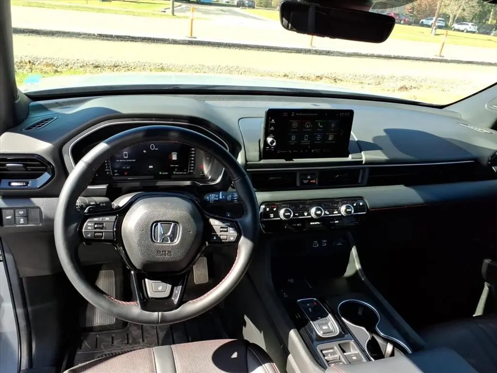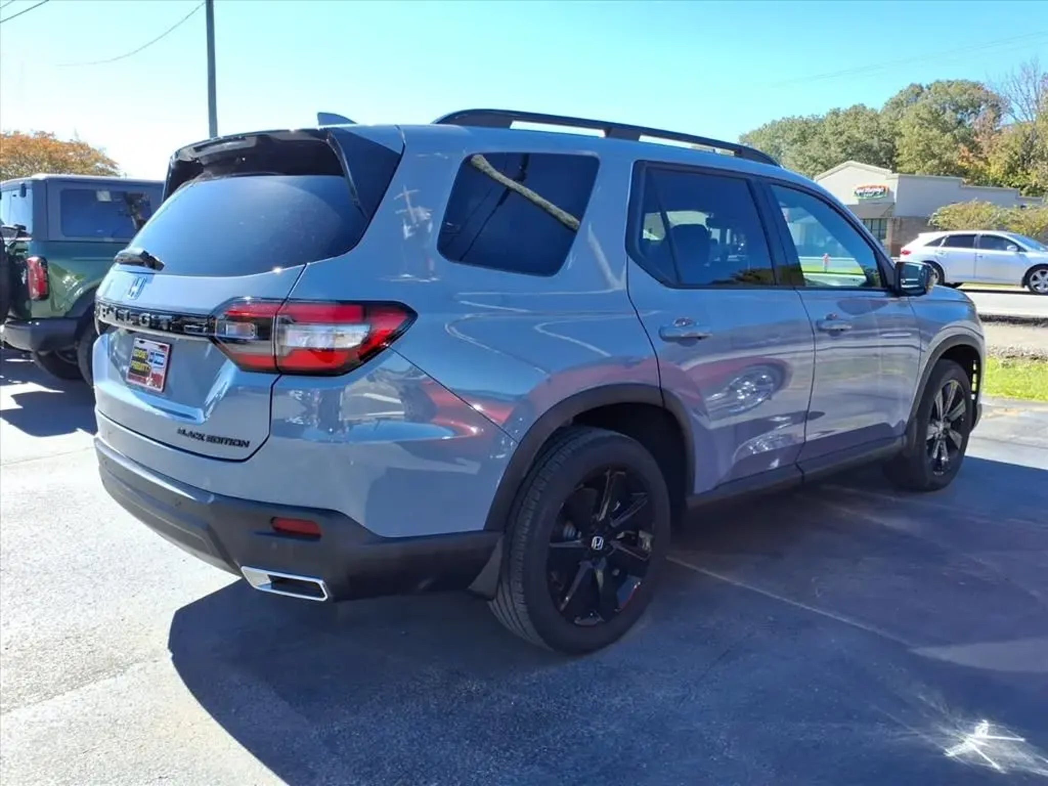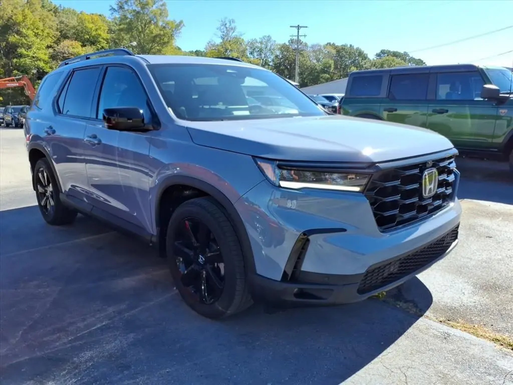 This 2025 Honda Pilot Black Edition 10-Speed Automatic is equipped with 12 Speakers, 3rd row seats: split-bench, 4-Wheel Disc Brakes, 4.167 Axle Ratio, ABS brakes, Adaptive Cruise Control: Adaptive Cruise Control (ACC) with Low-Speed Follow, Air Conditioning, Alloy wheels, AM/FM radio: SiriusXM, Apple CarPlay/Android Auto, Auto High-beam Headlights, Auto-dimming door mirrors, Auto-dimming Rear-View mirror, Automatic temperature control, Blind Spot Information (BSI) System warning, Bose Premium Sound System, Brake assist, Bumpers: body-color, Compass, Delay-off headlights, Driver door bin, Driver vanity mirror, Dual front impact airbags, Dual front side impact airbags, Electronic Stability Control, Emergency communication system: HondaLink, Exterior Parking Camera Rear, Four wheel independent suspension, Front anti-roll bar, Front Bucket Seats, Front Center Armrest, Front dual zone A/C, Front fog lights, Front reading lights, Fully automatic headlights, Garage door transmitter: HomeLink, Heads-Up Display, Heated door mirrors, Heated front seats, Heated rear seats, Heated steering wheel, Honda Satellite-Linked Navigation System, HondaLink Subscription Services, Illuminated entry, Knee airbag, Lane departure: Lane Keeping Assist System (LKAS) active, Low tire pressure warning, Memory seat, Navigation system: Honda Satellite-Linked Navigation System, Occupant sensing airbag, Outside temperature display, Overhead airbag, Overhead console, Panic alarm, Passenger door bin, Passenger vanity mirror, Perforated Leather Seat Trim, Power door mirrors, Power driver seat, Power Liftgate, Power moonroof, Power passenger seat, Power steering, Power windows, Radio data system, Rain sensing wipers, Rear air conditioning, Rear anti-roll bar, Rear reading lights, Rear seat center armrest, Rear window defroster, Rear window wiper, Reclining 3rd row seat, Remote keyless entry, Security system, SiriusXM, Speed control, Speed-sensing steering, Speed-Sensitive Wipers, Split folding rear seat, Spoiler, Steering wheel mounted audio controls, Tachometer, Telescoping steering wheel, Tilt steering wheel, Traction control, Trip computer, Turn signal indicator mirrors, Variably intermittent wipers, and Ventilated front seats.