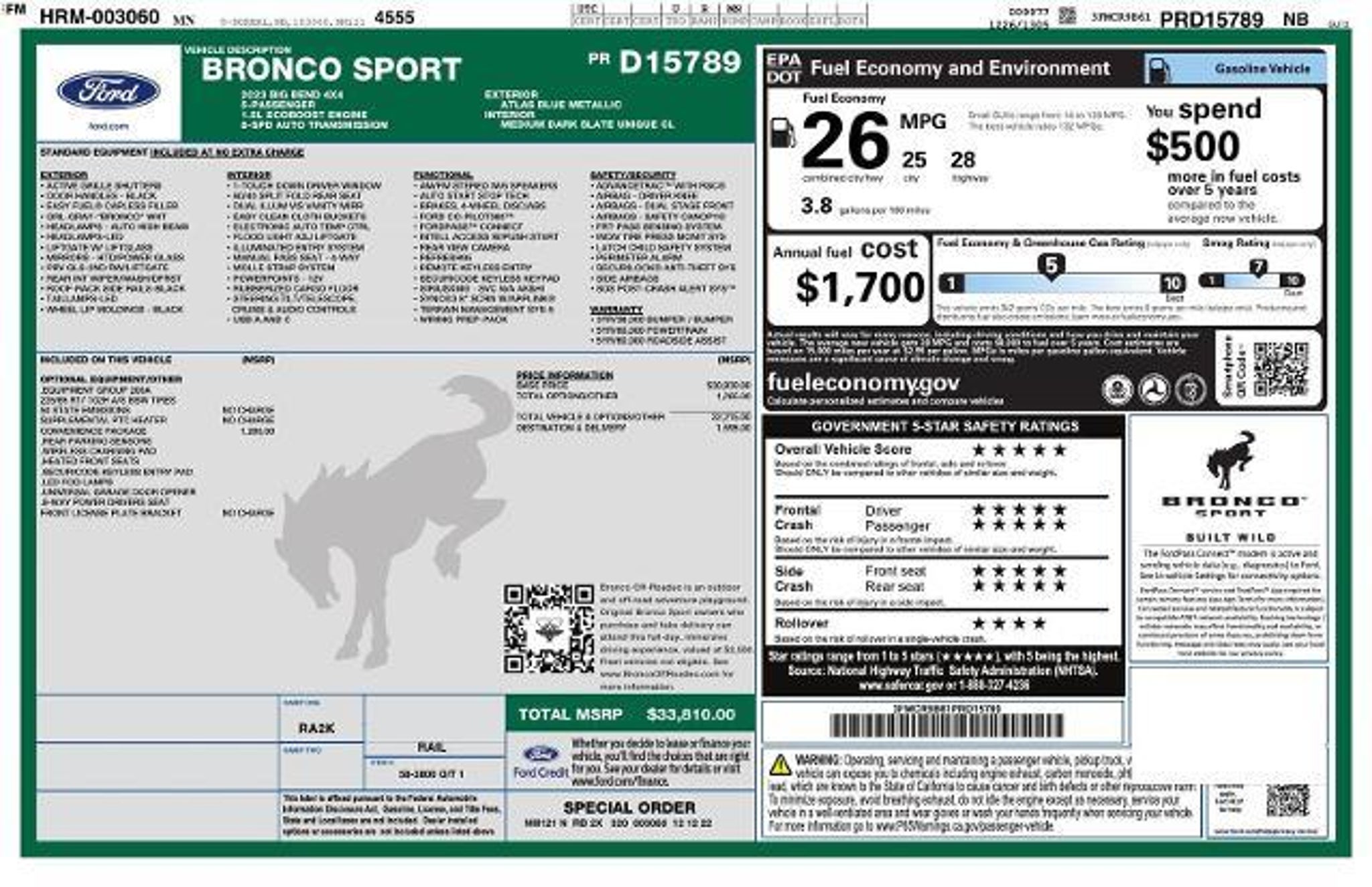 Details > 2023 Ford Bronco Sport AWD Big Bend 4DR SUV For Sale in Fairmont, MN Private Party Sellers Click here to place your ad now! You auta tell them you saw the ad in AutaBuy when you call or email. 1/23 2/23 3/23 4/23 5/23 6/23 7/23 8/23 9/23 10/23 11/23 12/23 13/23 14/23 15/23 16/23 17/23 18/23 19/23 20/23 21/23 22/23 23/23 View 23 Photos View All Add to My Garage Parked in Your Garage! Fairmont Ford Contact Seller: I would like to: Make Offer Check Availability Ask A Question Request More Photos Check Financing Options Send a copy of this message to me Add this listing to my garage Send to Mobile Mileage 61,320 Exterior Color Atlas Blue Metallic Interior Color Medium Dark Slate Doors 4 Engine 1.5L I3 Transmission 8 Speed Auto Stock # 25T173 VIN 3FMCR9B61PRD15789 Estimated Monthly Payment $364 mo Apply Now J.J. Best Banc & Co. 2023 Ford Bronco Sport AWD Big Bend 4DR SUV Description: · Mileage: 61,320 · Color: Atlas Blue Metallic Price: $21,900. Price: $20,900. Mileage 61,320 Exterior Color Atlas Blue Metallic Interior Color Medium Dark Slate Doors 4 Engine 1.5L I3 Transmission 8 Speed Auto Stock # 25T173 VIN 3FMCR9B61PRD15789 Estimated Monthly Payment $364 mo Apply Now J.J. Best Banc & Co. Add to My Garage Parked in Your Garage! Message Seller Fairmont Ford Contact Seller: I would like to: Make Offer Check Availability Ask A Question Request More Photos Check Financing Options Send a copy of this message to me Add this listing to my garage Offered for sale by Fairmont Ford FAIRMONT, MN Price: $21,900. Price: $20,900. Offered for sale by Fairmont Ford FAIRMONT, MN [entire inventory] Ask Auta Intelligence The first collector-car AI built directly into a classic car marketplace What engine options did these come with? How many of these were produced? What safety features does this model offer? When was this model first introduced? Where is this located? How far is this from me? Tell me about this model How many Bronco Sports were produced in Blue? Can you show me more suvs for a similar price? How many passengers can this seat comfortably? What transmission options did these offer? What does this VIN number tell me? What colors did these come in? What kind of mileage do these get? How easy are parts to find for this model? What trim levels were available for this model? What factory options were available on this model? Do you have a similar car to sell? List It Now! Questions about this car? Ask Auta Intelligence for production numbers, available options, etc. · Subscribe to AutaBuy! · Send a Gift Subscription Notice to a Friend