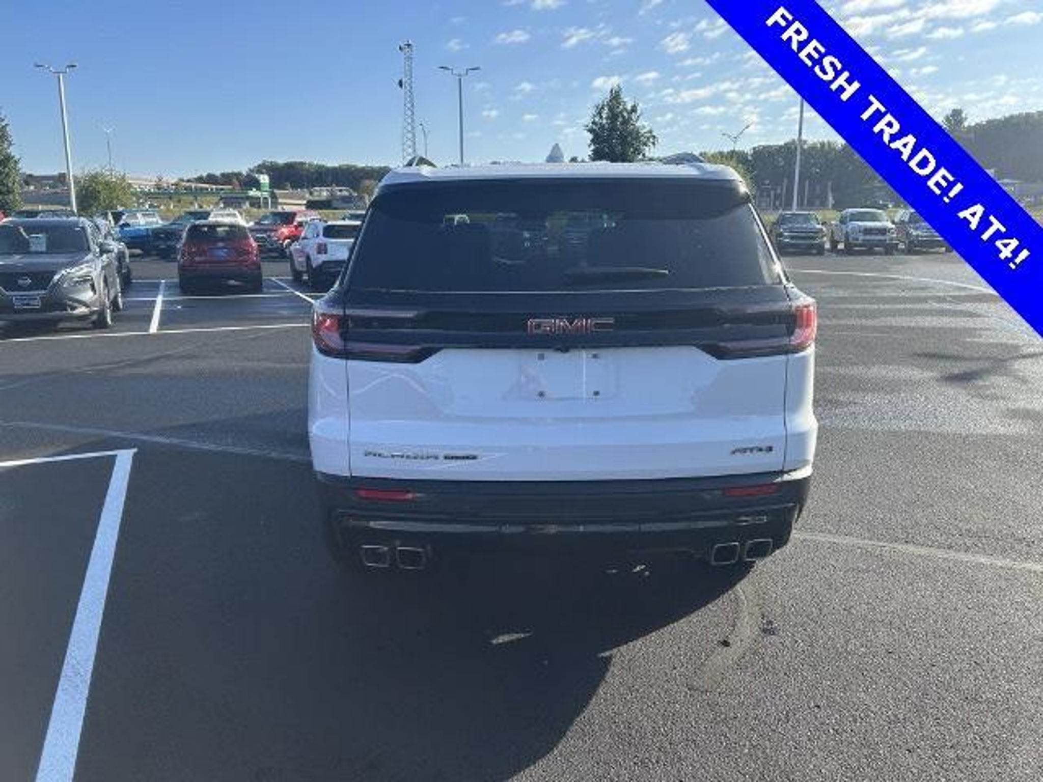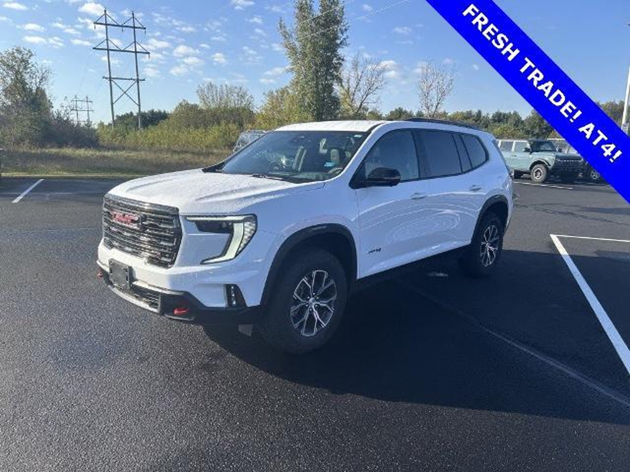 2025 GMC Acadia AT4 Summit White LOCAL TRADE KEYLESS ENTRY REMOTE START AWD / 4WD 3RD ROW SEAT AWD Forest Storm w/Mahogany Accents w/Cloth/CoreTec Seat Trim Navigation System Preferred Equipment Group 4SB 12 Speakers 2-Way Driver Power Lumbar Seat Adjuster 3.49 Final Drive Axle Ratio 3rd row seats: split-bench 4-Wheel Disc Brakes 6-Way Power Front Passenger Seat Adjuster 7-Passenger Seating (2-2-3 Seating Configuration) 8-Way Power Driver Seat Adjuster ABS brakes Air Conditioning Alloy wheels AM/FM radio: SiriusXM with 360L Apple CarPlay/Android Auto Auto High-beam Headlights Auto-dimming Rear-View mirror Automatic temperature control Bodyside moldings Bose Premium 12-Speaker System w/Sub-Woofer Brake assist Bumpers: body-color Cloth/CoreTec Seat Trim Compass Delay-off headlights Driver door bin Driver vanity mirror Dual front impact airbags Dual front side impact airbags Electronic Stability Control Emergency communication system: OnStar Services capable Exterior Parking Camera Rear Four wheel independent suspension Front anti-roll bar Front Bucket Seats Front Center Armrest Front dual zone A/C Front fog lights Front License Plate Bracket Front Passenger Power Lumbar Seat Adjuster Front reading lights Fully automatic headlights Garage door transmitter Heated door mirrors Heated Driver & Front Passenger Seats Heated front seats Heated steering wheel Illuminated entry Leather steering wheel Low tire pressure warning Occupant sensing airbag Outside temperature display Overhead airbag Overhead console Panic alarm Passenger door bin Passenger vanity mirror Power door mirrors Power driver seat Power Liftgate Power passenger seat Power steering Power windows Radio data system Radio: 15 Premium GMC Infotainment System Rear air conditioning Rear anti-roll bar Rear reading lights Rear side impact airbag Rear window defroster Rear window wiper Remote keyless entry Security system SiriusXM w/360L Speed control Speed-sensing steering Split folding rear seat Spoiler Sport steering wheel Steering wheel mounted audio controls Tachometer Telescoping steering wheel Tilt steering wheel Traction control Trip computer Turn signal indicator mirrors Variably intermittent wipers Voltmeter Wheels: 18 x 8 Dark Machined Aluminum APPLE CARPLAY/ANDROID AUTO AWD Forest Storm w/Mahogany Accents w/Cloth/CoreTec Seat Trim Navigation System Preferred Equipment Group 4SB.