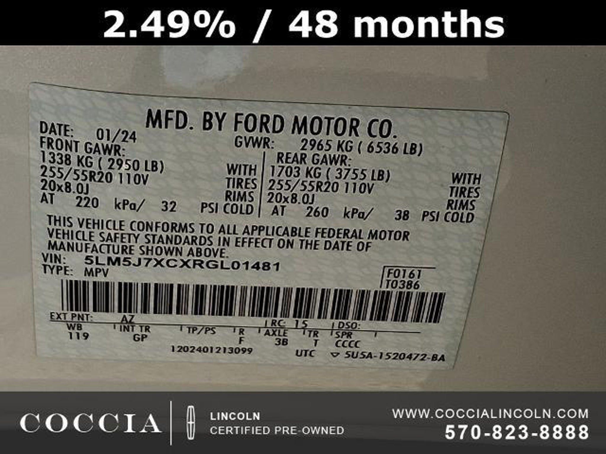 All Coccia Pre-Owned Vehicles undergo a rigorous reconditioning and inspection process and include a three month warranty! 4D Sport Utility AWD 3.0L V6 10-Speed Automatic 17/24 City/Highway MPG Buy at Coccia and receive complimentary inspections for the life of your vehicle, Complimentary car wash with every service visit, Convenient Saturday service department hours available, Family owned and operated for over 35 years!, 14 Speakers, 3.58 Axle Ratio, 3rd row seats: split-bench, Adaptive suspension, Air Conditioning, Alloy wheels, AM/FM radio: SiriusXM, Audio memory, Auto Air Refresh, Auto Heated/Ventilated Driver & Passenger Seats, Auto High-beam Headlights, Auto-dimming door mirrors, Auto-dimming Rear-View mirror, Automatic temperature control, Brake assist, Bumpers: body-color, Compass, Delay-off headlights, Driver door bin, Driver vanity mirror, Electronic Stability Control, Elements Package Plus, Emergency communication system, Equipment Group 200A, Four wheel independent suspension, Front Bucket Seats, Front Center Armrest, Front dual zone A/C, Front reading lights, Fully automatic headlights, Garage door transmitter, Heated door mirrors, Heated front seats, Heated Steering Wheel, Heated VisioBlade Wipers, Heated/Ventilated 2nd Row Outboard Seats, HVAC memory, Illuminated entry, Lane Departure Warning System, Leather steering wheel, Memory seat, Navigation System, Outside temperature display, Overhead console, Panic alarm, Passenger door bin, Passenger vanity mirror, Power door mirrors, Power driver seat, Power Liftgate, Power moonroof: Panoramic Vista Roof, Power passenger seat, Power steering, Power windows, Premium Lthr Heated/Ventilated Fnt Captain's Chairs, Radio data system, Radio: Revel AM/FM Audio System w/14 Speakers, Rain sensing wipers, Rear air conditioning, Rear audio controls, Rear dual zone A/C, Rear reading lights, Rear window defroster, Rear window wiper, Remote keyless entry, Security system, SiriusXM Radio, Speed control, Speed-Sensitive Wipers, Split folding rear seat, Spoiler, Steering wheel memory, Steering wheel mounted A/C controls, Steering wheel mounted audio controls, SYNC 3 Communication & Entertainment System, Tachometer, Telescoping steering wheel, Tilt steering wheel, Traction control, Trip computer, Turn signal indicator mirrors, Variably intermittent wipers, Wheels: 20 Bright-Machined Aluminum. COCCIA is Family Owned, Customer Driven.