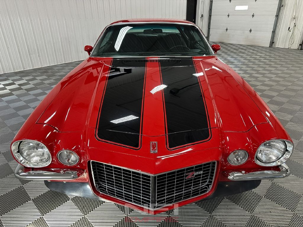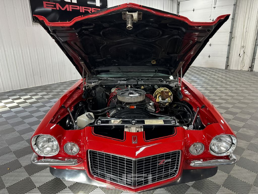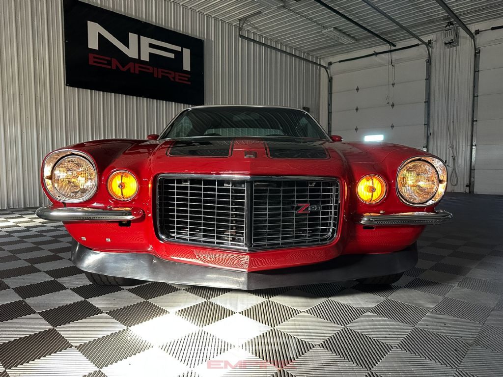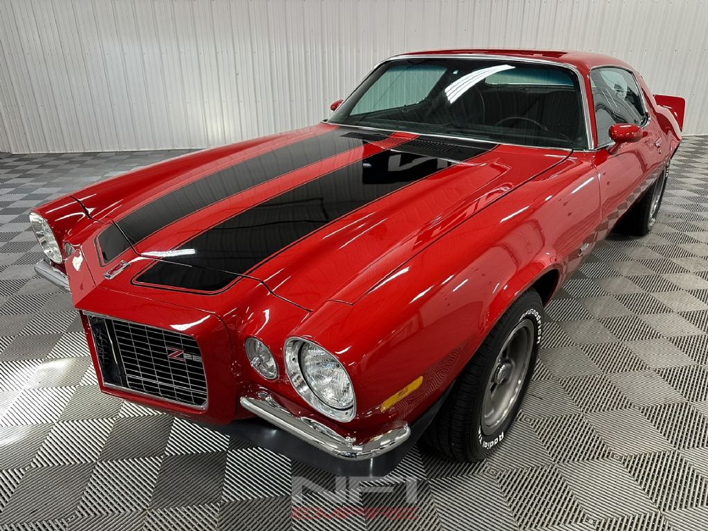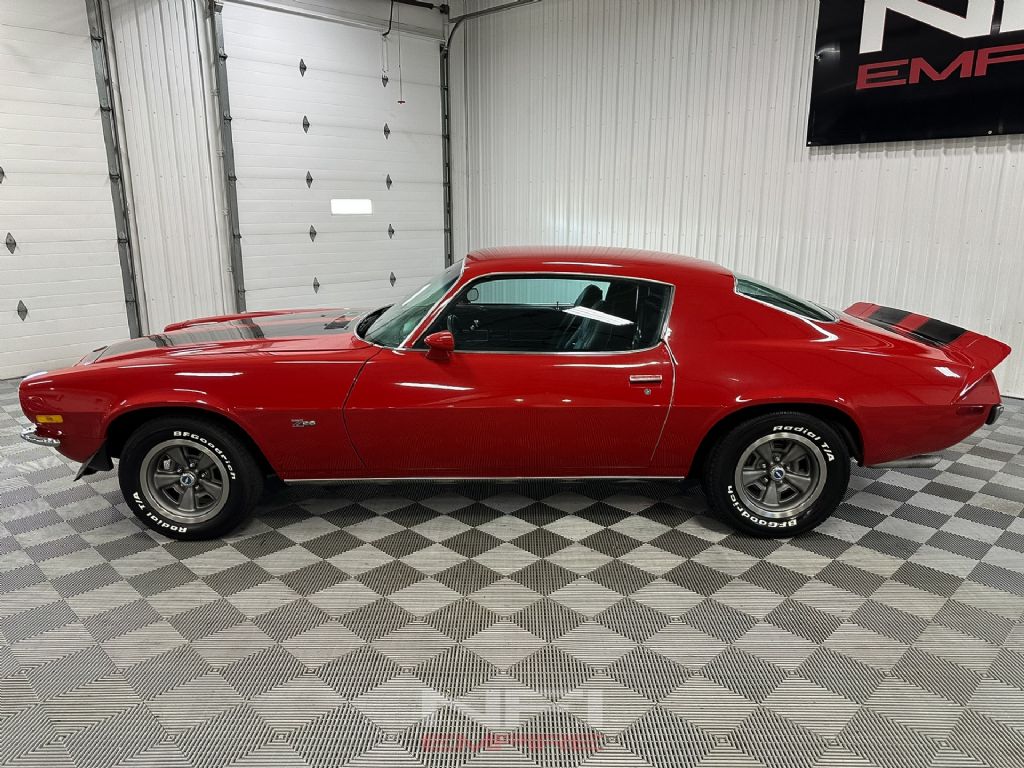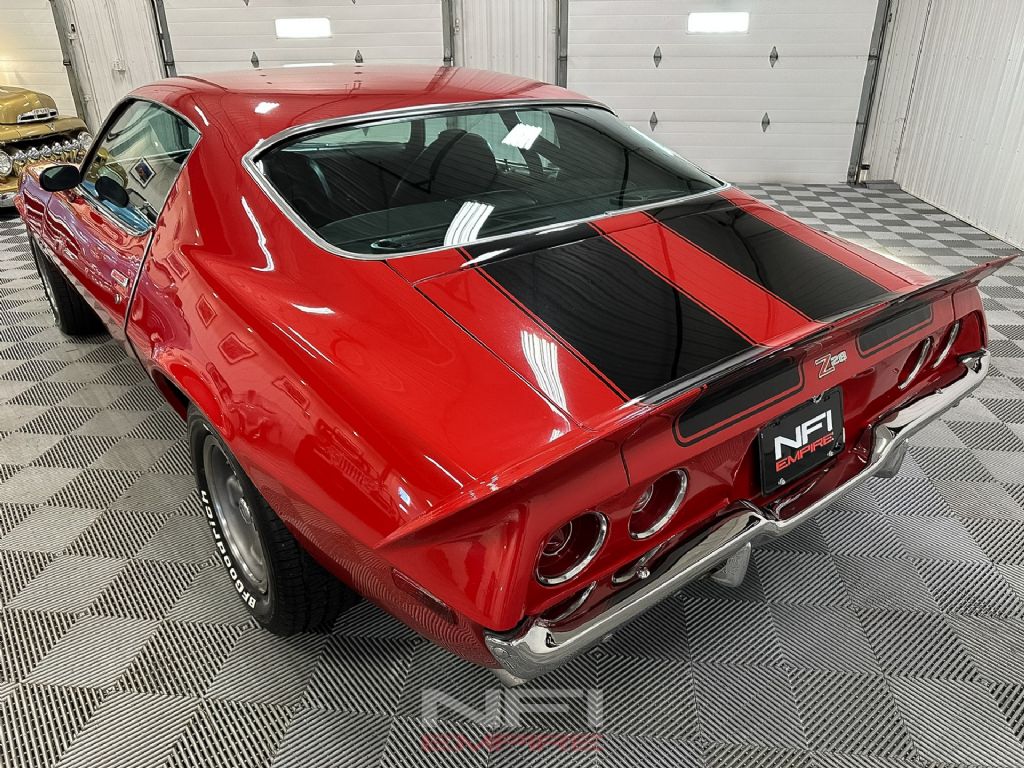 The 1973 Chevrolet Camaro Z28 Tribute is finished as a true driver's muscle car, equipped with a strong LT1 350 V8 paired to a Muncie M21 4-speed manual transmission. The engine setup includes a Holley carburetor, Edelbrock intake manifold, Edelbrock E-Tec 200 aluminum heads, long-tube headers, and a Mallory HyFire IV ignition system - an ideal combination for responsive power and classic small-block sound. Power is sent through a 4.10 rear gear for aggressive acceleration, and stopping is handled by front disc brakes with rear drums.
