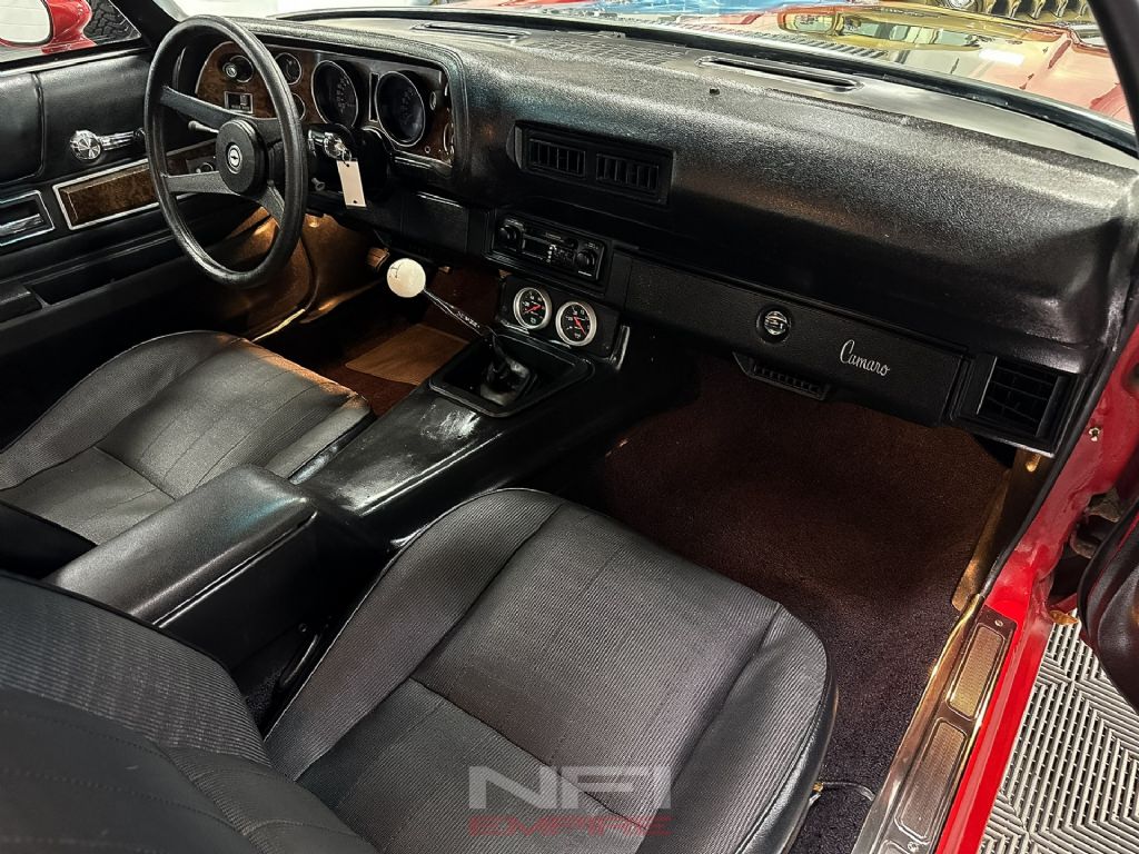 It rides on 15-inch wheels with the right stance for a classic Camaro. Inside, the cabin remains in great shape - clean seats and carpet, a tight headliner, and a sport roll bar tucked behind the front seats. AutoMeter gauges for oil pressure and vacuum are neatly installed for added functionality and performance monitoring.