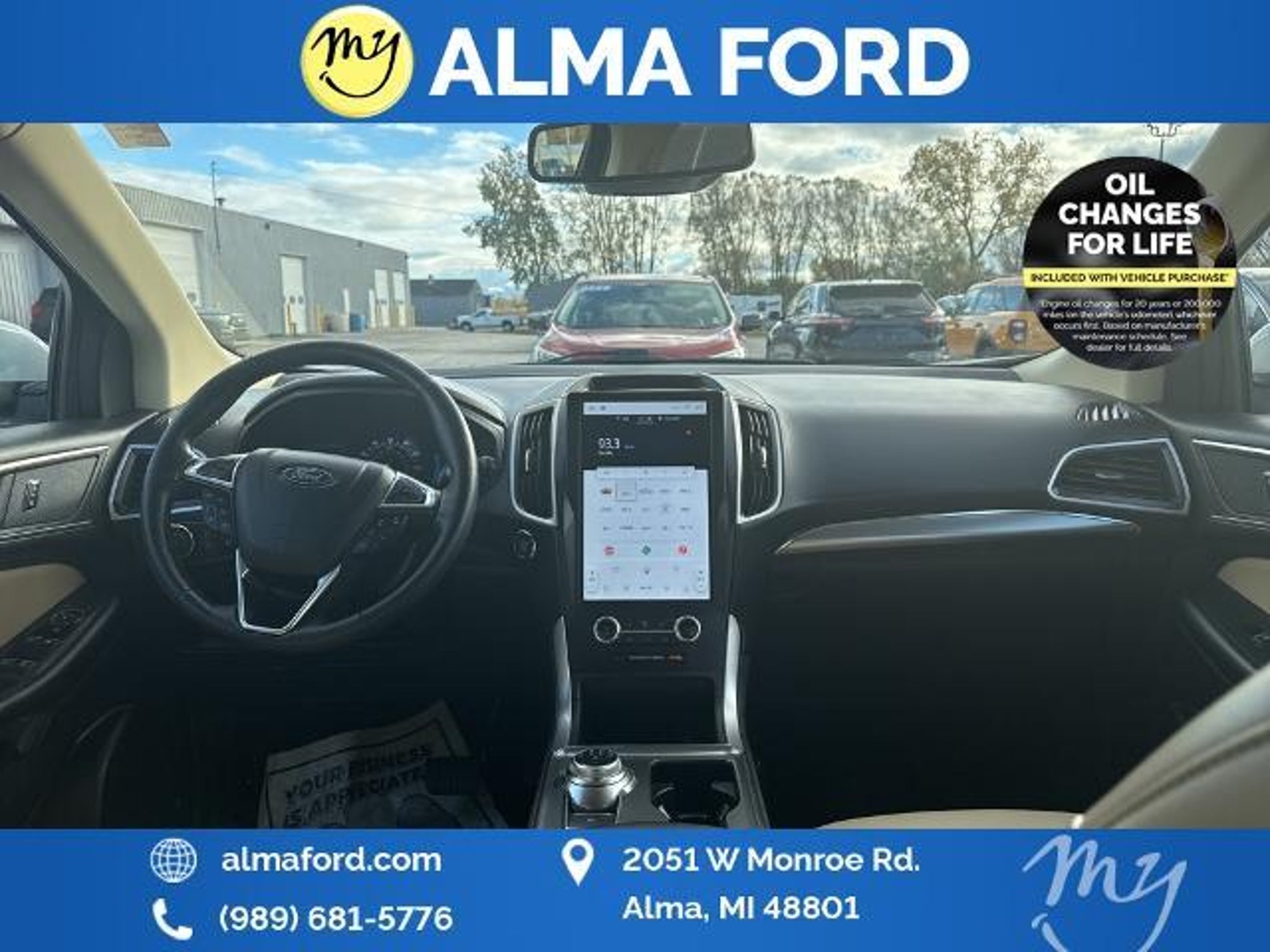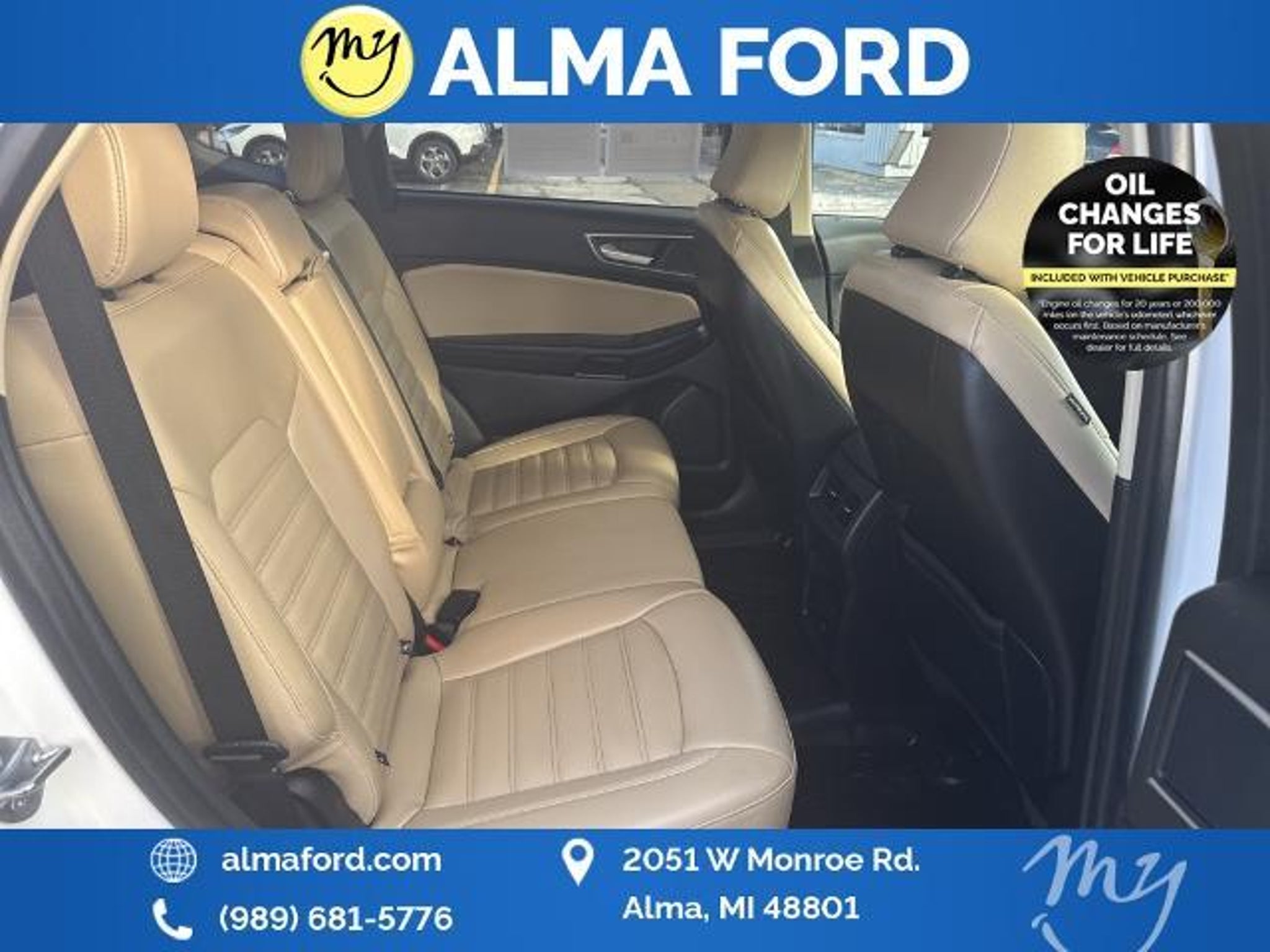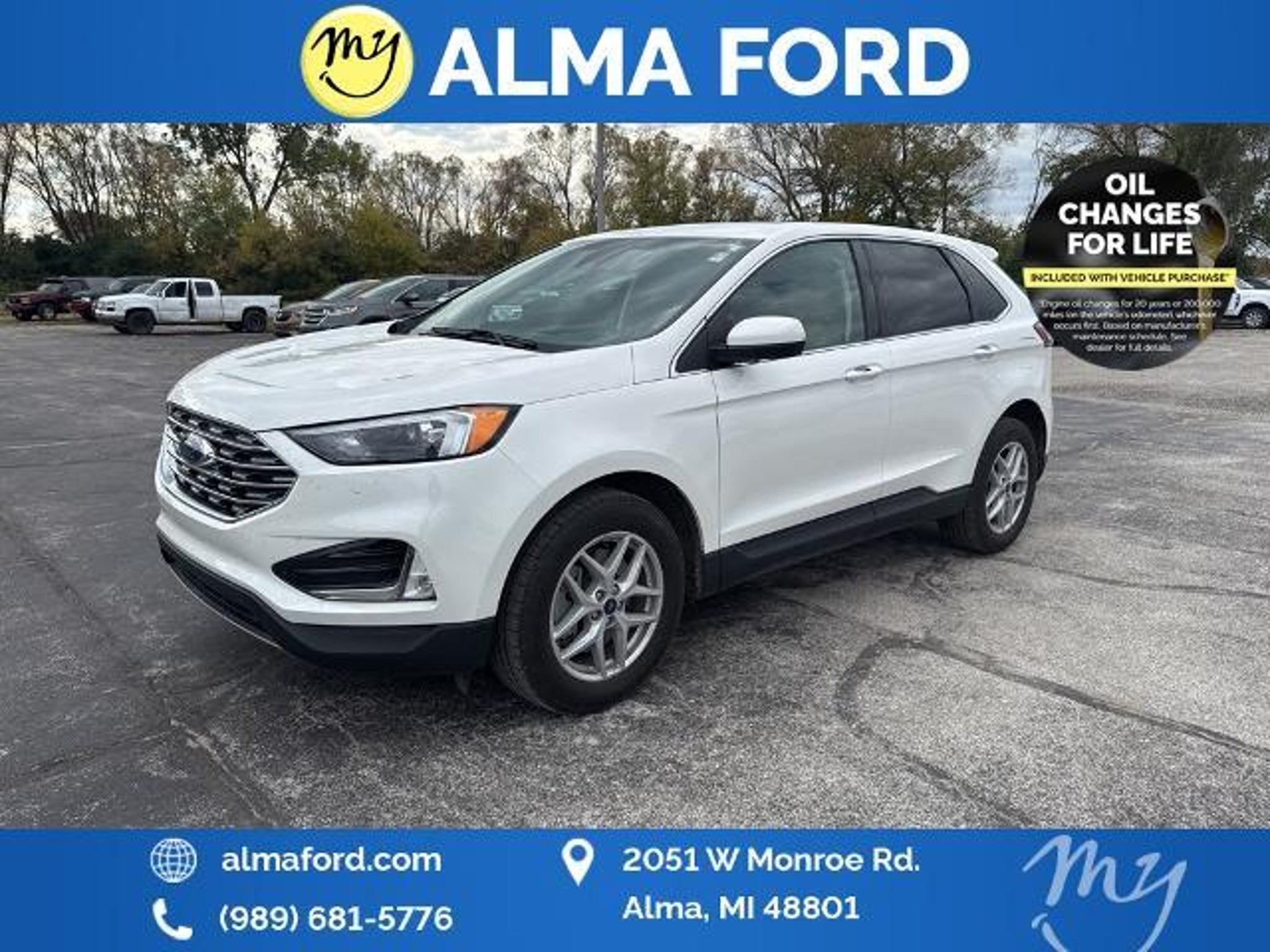 Edge SEL EcoBoost 2.0L I4 GTDi DOHC Turbocharged VCT AWD Star White Metallic Tri-Coat *ACCIDENT FREE* *ALL WHEEL DRIVE* *APPLE CARPLAY & ANDROID AUTO* *BLIND SPOT MONITORING SYSTEM* *CLEAN CARFAX 1-OWNER* *FULLY SERVICED* *HANDSFREE BLUETOOTH* *HEATED SEATS* *HEATED STEERING WHEEL* *JUST ARRIVED* *LANE DEPARTURE WARNING* *OIL CHANGES for LIFE* *REAR POWER LIFTGATE* *REMOTE START* *SUPER BUY* *VERY CLEAN* 110V/150W AC Power Outlet Convenience Package Equipment Group 201A Fog Lamps w/Chrome Bezel Perimeter Alarm Power Liftgate Remote Start System SecuriCode Keyless Entry Keypad Universal Garage Door Opener (UGDO) Wheels: 18 Sparkle Silver-Painted Aluminum Wireless Charging Pad. 2022 Ford Edge SEL Star White Metallic Tri-Coat YOUR BEST PRICE on ANY NEW FORD is at Alma Ford. Get the MOST MONEY for your TRADE and BEST PRICE GUARANTEE on ANY NEW FORD! Alma Ford is your #1 choice in Michigan to get the BEST PRICE on any NEW Ford and HOME of the OIL Changes for LIFE*. The Alma Ford team is ready to provide you with a world-class experience ensuring that you find the perfect vehicle that fits all your needs. Every vehicle has been through a 172 point safety inspection completed by a certified technicians and fully detailed. We sell many makes and models Pre-Owned Ford Vehicles 2025-2024-2023-2022-2021-2020-2019-2018-2017-2016-2015-2014-2013-2012-2011-2010 Ford Bronco Bronco Sport Edge Escapes Expedition Explorer Fusions Focus Flex F-150 Series F-250 F-350 Super Duty Diesel Trucks Maverick Mustang MACH-E Mustang Ranger Transit and more For sale. Take advantage of our VIP experience by calling to schedule a test drive. Read our customer reviews at -testimonials or view our entire selection of new and preowned vehicles at or stop by today located at 2051 W Monroe Alma MI 48801. 2022 Ford Edge SEL AWD 8-Speed Automatic EcoBoost 2.0L I4 GTDi DOHC Turbocharged VCT Alma Ford is proud to service customers saving you time & money on any New or Pre-owned vehicle! See dealer for complete details dealer is not responsible for pricing errors all prices plus tax title plate doc fees and includes manufacturer rebates. Serving Alma and all of our surrounding cities like Carson City Ithaca Mount Pleasant Saint Johns Saginaw Midland Big Rapids Lakeview Edmore Breckenridge Ashley Sheperd Clare Greenville Hemlock Grand Rapids Lansing Kalamazoo Muskegon Grand Haven Holland Wyoming and anywhere in the great state of Michigan. *Whenever you purchase a vehicle from us new or used that is less than 10 years old and has less than 100000 miles and you automatically get something no other dealer in Mid-Michigan can provide; Oil Changes For Life! Buy from Alma Ford in Alma MI and never pay for an oil change again! Some of our used vehicles may be subject to unrepaired safety recalls. Check for a vehicles unrepaired recalls by VIN at 21/28 City/Highway MPG