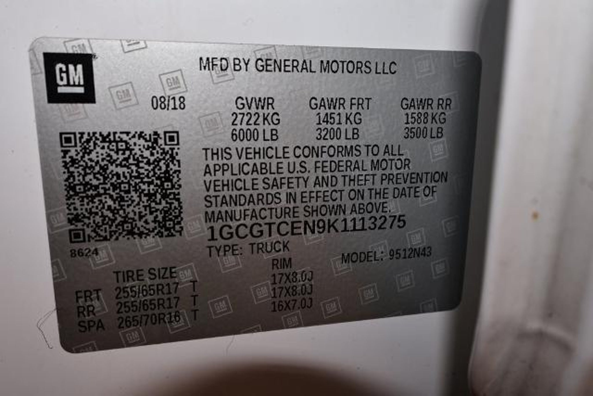 1GCGTCEN9K1113275 |