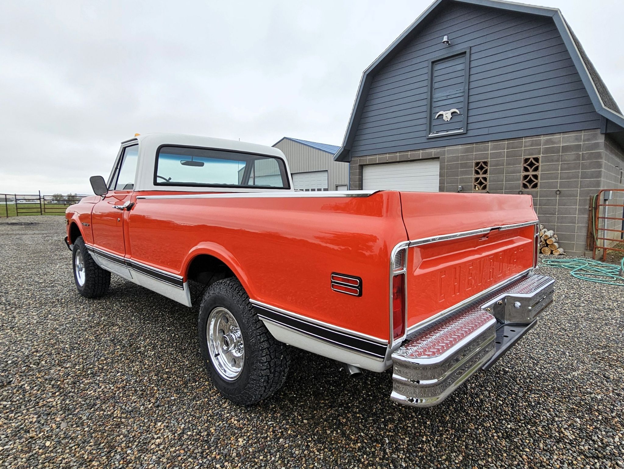 Body/Paint: Frame off restoration began on this Truck in June of 2025. She's a driver but with new Tires and wheels, new trim, new chrome, new rubber seals, new glass all around and a re-paint to Hugger Orange. There was one cab corner that was repaired from rust and one fender. Superb body lines with a superior fit and finish.