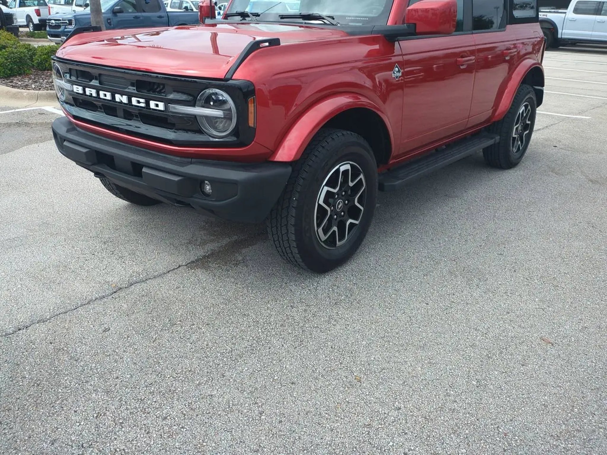 Certified. 2023 Ford Bronco Outer Banks 4WD 10-Speed Automatic 2.7L EcoBoost V6 Hot Pepper Red Metallic Tinted Clearcoat THIS VEHICLE INCLUDES THE FOLLOWING FEATURES AND OPTIONS: Equipment Group 312A Mid Package 18 Bright Machined Aluminum Wheels 3.73 Axle Ratio 4-Wheel Disc Brakes 7 Speakers ABS brakes Air Conditioning Alloy wheels AM/FM radio: SiriusXM with 360L AM/FM Stereo Auto High-beam Headlights Auto-dimming Rear-View mirror Automatic temperature control Brake assist Compass Connected Navigation Delay-off headlights Driver door bin Driver vanity mirror Dual front impact airbags Dual front side impact airbags Electronic Stability Control Emergency communication system: 911 Assist Exterior Parking Camera Rear Front & Rear Floor Liners w/o Carpet Floor Mats Front anti-roll bar Front Bucket Seats Front Center Armrest Front dual zone A/C Front fog lights Front reading lights Front wheel independent suspension Fully automatic headlights Heated door mirrors Heated front seats Heated Leather-Trimmed/Vinyl Bucket Seats Illuminated entry Integrated roll-over protection Leather Shift Knob Low tire pressure warning Navigation Removal Navigation system: Connected Navigation Occupant sensing airbag Outside temperature display Overhead airbag Overhead console Panic alarm Passenger door bin Passenger vanity mirror Power door mirrors Power steering Power windows Radio data system Radio: 7 Speakers w/Subwoofer Remote keyless entry Security system SiriusXM Radio w/360L Speed control Split folding rear seat Steering wheel mounted audio controls SYNC 4 Tachometer Telescoping steering wheel Tilt steering wheel Traction control Trip computer Variably intermittent wipers and Voltmeter. Ford Blue Certified Details: * Transferable Warranty * 139 Point Inspection * Warranty Deductible: $100 * Limited Warranty: 3 Month/4000 Mile (whichever comes first) after new car warranty expires or from certified purchase date * Roadside Assistance * and 11000 FordPass Rewards Points to use toward first maintenance visit * Vehicle History We offer Market Based Pricing please call to check the availability of this vehicle. Sale Prices do not include tax tag title dealer fee and $389 electronic registration filing fee. All advertised vehicles are subject to availability. Inventory options and pricing are all subject to change. While we make every effort to ensure the data listed here is correct there may be instances where some of the incentives options or vehicle features may be listed incorrectly as we get data from multiple data sources. PLEASE MAKE SURE to confirm the details with the dealer to ensure its accuracy. Dealer cannot be held liable for data that is listed incorrectly. Please contact dealer for further details and thank you for reading the fine print happy motoring!