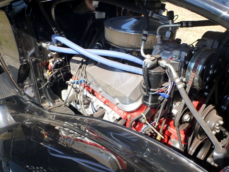 Lift open the 4 piece steel hood from either side and you will find this beauty is powered by a GM 454 (.020 over) 4 bolt main V8 that offers plenty of power to get this classic rolling. It was professionally built with all the machine work done by Calvert Precision Engines. Every piece on the car is documented and it comes with a full list of parts and services used in its construction. The only thing mechanically it needs is to have the exhaust pipes, mufflers and hangers done. Exhaust manifolds are in place. Again, this is 1 shop visit and mechanically it is ready to go. The aluminum radiator was custom built by Buddy Griffin with Griffin Radiator and with the electric fan with shroud should have no issue keeping this big block running cool. Paired with the motor is a 700R4 overdrive automatic transmission that was built by Bright's Transmissions in Fort Worth. That converts power back to the Ford 9 inch rear that has all new bearings, seals, etc. The brakes have all been redone with discs up front and are power assisted. That includes new calipers, rotors, seals, everything. It also has power steering with a 1974 Nova subframe and a Detroit Speed swaybar. As if this 90 year old classic doesn't have enough creature comforts, it even has a Vintage Air AC system in place which is already plumbed into the dash! The car also has all new wiring from front to rear.