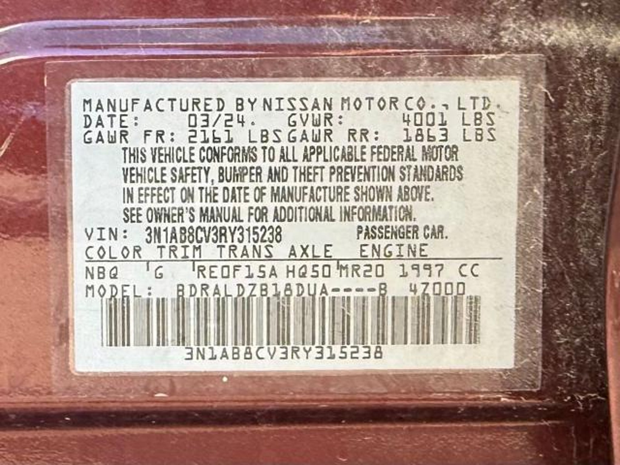 Certified. Rosewood Metallic 2024 Nissan Sentra SV FWD CVT with Xtronic 2.0L I4 DOHC CVT with Xtronic, Charcoal Cloth. This vehicle comes equipped with the following features and options: Nissan Certified Certified, CVT with Xtronic, Charcoal Cloth, 16 Alloy Wheels, 4-Wheel Disc Brakes, 6 Speakers, ABS brakes, Air Conditioning, Alloy wheels, AM/FM radio: SiriusXM, Auto High-beam Headlights, Blind Spot Warning, Body Colored Splash Guards (4-Piece), Brake assist, Bumpers: body-color, Carpeted Floor Mats w/Trunk Mat, Clear Rear Bumper Protector, Dash Cam - Dual Camera Drive Recorder, Delay-off headlights, Door Sill Plates, Driver door bin, Driver vanity mirror, Dual front impact airbags, Dual front side impact airbags, Electronic Stability Control, Four wheel independent suspension, Front anti-roll bar, Front Bucket Seats, Front Center Armrest, Front reading lights, Fully automatic headlights, Illuminated entry, Knee airbag, Leather steering wheel, Low tire pressure warning, NissanConnect featuring Apple CarPlay and Android Auto, Occupant sensing airbag, Outside temperature display, Overhead airbag, Overhead console, Panic alarm, Passenger door bin, Passenger vanity mirror, Power door mirrors, Power steering, Power windows, Radio data system, Radio: AM/FM w/RDS/MP3/Aux-In, Rear anti-roll bar, Rear Parking Sensors, Rear side impact airbag, Rear window defroster, Remote keyless entry, Security system, Speed control, Speed-sensing steering, Split folding rear seat, Steering wheel mounted audio controls, Tachometer, Technical Spec Change 2, Telescoping steering wheel, Tilt steering wheel, Traction control, Trip computer, Upgraded Cloth Seat Trim, and Variably intermittent wipers. Odometer is 3742 miles below market average! 30/40 City/Highway MPG Nissan Certified Details: * Vehicle History * Limited Warranty: 84 Month/100,000 Mile (whichever occurs first) * 167 Point Inspection * Roadside Assistance * 7 Year/100,000 Mile Limited Warranty, 24/7 Hour Roadside Assistance, Carfax Vehicle History Report, Plus 1 Year Pre-Paid Maintenance Included. Gas Powered Nissan Models Only. * Transferable Warranty * Warranty Deductible: $100