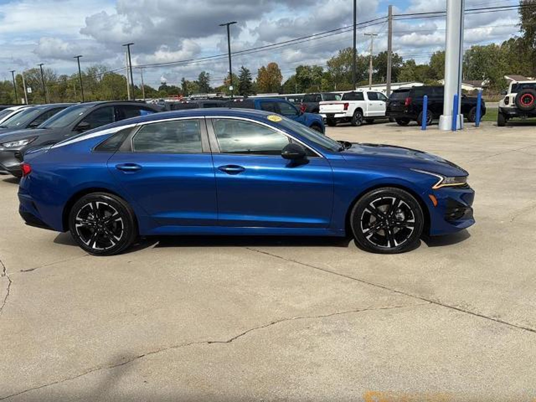 This *2021 Kia K5 GT-Line* has a Sapphire Blue exterior and an Black interior color. 46490 miles. Stock Number MG015557. You can connect with us by calling . No Accidents! *OTHER NOTABLE FEATURES AND OPTIONS YOU SHOULD KNOW ABOUT:* === Safety and Security === * Forward collision mitigation - Forward thinking. You look away for just a second and suddenly the vehicle in front of you has stopped. Thats when the forward collision mitigation system comes to life. When it senses an impending impact it will activate a combination of features to help prevent or reduce the severity of an accident. Forward collision mitigation is always looking ahead. * Pedestrian impact prevention - An extra step toward safety. Pedestrians dont always stop look and listen but with Pedestrian Impact Prevention your vehicle is equipped to better see them and avoid them. This system constantly monitors the road ahead to identify and track pedestrians. It projects that image to an interior display screen AND should an impact become likely Pedestrian impact prevention takes steps to avoid a collision. * Rear camera - Watching your back! The rear camera helps you see obstacles and hazards you otherwise couldnt by showing enhanced images of what is behind you. The rear camera is an extra set of eyes thats both convenient and safe. * Lane departure prevention - Keep it between the lines. It only takes a moment of inattention for your vehicle to drift. With lane departure prevention your vehicle takes corrective action to help you avoid unintentionally moving out of your lane. Lane departure prevention is an extra level of safety for you and those around you. === Technology and Telematics === * Smart device mirroring - Smartphone meet smart car. You can control your device through your vehicles infotainment system. Smart device mirroring brings together safety and convenience by making it easier to find what youre looking for while keeping your eyes on the road. At Eby Ford were here to *Serve you!* Our staff is 100% dedicated to customer satisfaction and we understand that you need clear transparent information throughout the car buying process. With our live market pricing philosophy we offer the right cars at the right price and the transparency to back it up!