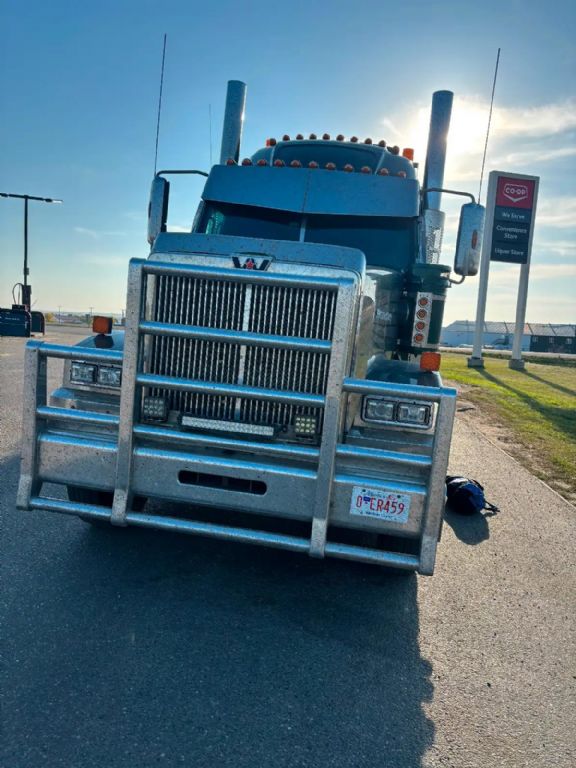 Heavy-spec 4900SF with 14,000 lb steer / 46,000 lb rears, powered by a DD16 600 HP matched to an 18-speed with 4.11 gears. Shows 523,863 km (increasing daily as its still working). Backed by warranty on engine and major components to Sept 2026 or 988,000 km. Equipped with a raised-roof sleeper, headache rack, and comes fully riggedthree sets of drive tires, two sets of steer tires, plus chains, straps, and corner protectors. Also includes a 4.5 T&E fluid pump. Clean, hard-working Western Star, specd to haul and ready to go.