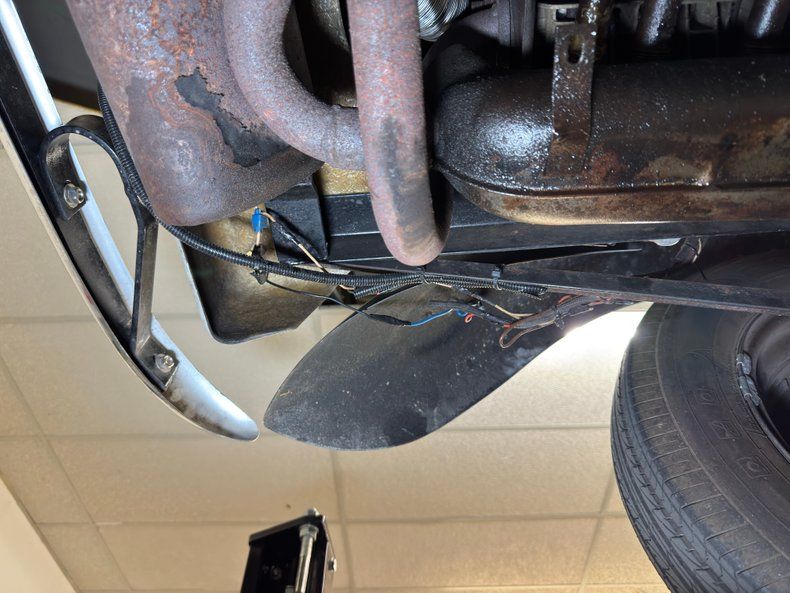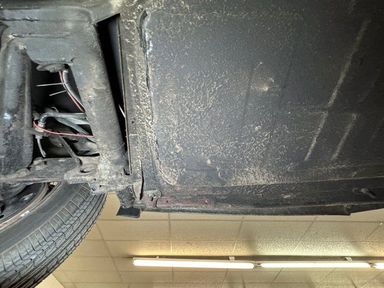 Generally clean with minimal surface rust and clear knuckles, we do note some residual oil on the right side of the engine, around the exhaust manifold and surrounding area. Belly pans cover most of the underside and lack any invasive rust but do show some seam separation on the passenger side. The dual exhaust runs into stock style mufflers and the tailpipes have broken off one side, so the twin tips we see would actually be four if not for the missing side. Drum brakes are employed at all four wheels and suspension consists of transverse torsion bars up front and torsion bars with semi trailing arms in back.