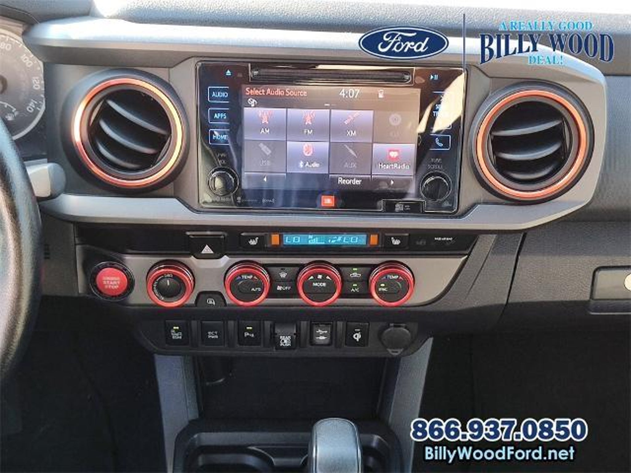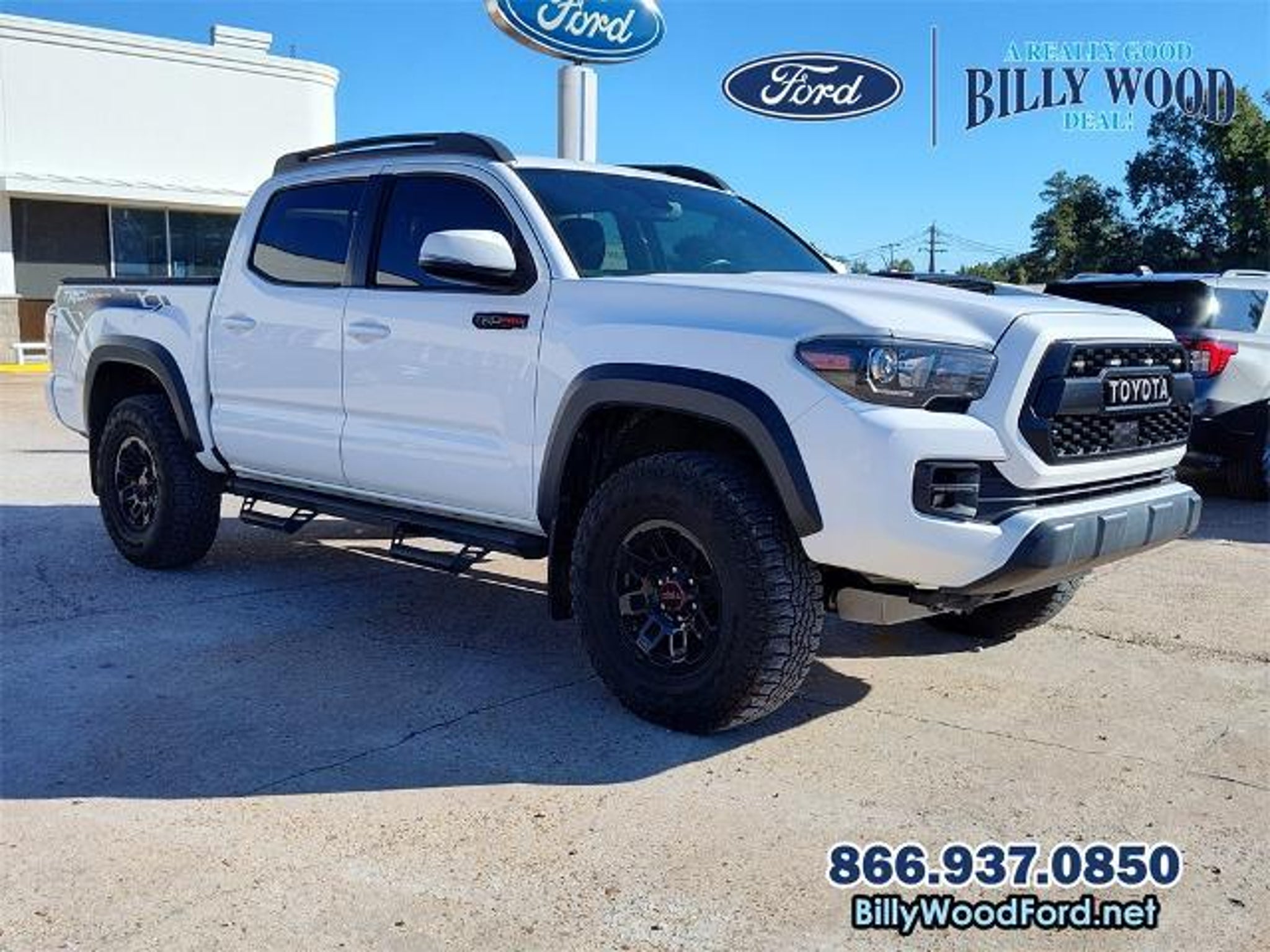 LOW MILES, 4WD, 3.5 LITER V6, 6 SPEED AUTOMATIC TRANSMISSION, TRD PRO LEATHER,TRD PRO BLACK ALLOY WHEELS, ACTIVE CRUISE, NAVAGATION, POWER SUNROOF, REMOTE KEYLESS, 7 SPEAKER PREMIUM AUDIO SYSTEM, BLIND SPOT MONITOR, REAR CROSS TRAFFIC ALERT, BRAKE ASSIST, BACKUP CAMERA, ENTUNE PREMIUM JBL AUDIO SYSTEM,.MUCH MORE Billy Wood Ford is proud to offer this fantastic, reliable 2019 Toyota Tacoma in White This vehicle has passed our comprehensive 160 point inspection with flying colors and comes with the following features; 4WD, ABS brakes, Active Cruise Control, Alloy wheels, Dual Zone Automatic Climate Control, Electronic Stability Control, Front dual zone A/C, Heated front seats, Illuminated entry, Lane Change Assist, Low tire pressure warning, Navigation System, Power moonroof, Remote keyless entry, Traction control, 120V/400W Deck Mounted AC Power, 7 Speakers, Air Conditioning, AM/FM radio: SiriusXM, Anti-whiplash front head restraints, Auto High-beam Headlights, Auto-Dimming Inside Rear-View Mirror w/Compass, Auto-dimming Rear-View mirror, Automatic temperature control, Axle Ratio: 3.91, Black Overfenders, Blind Spot Monitor w/Rear Cross Traffic Alert, Brake assist, Bumpers: body-color, CD player, Driver door bin, Dual front impact airbags, Dual front side impact airbags, Engine Immobilizer, Entune App Suite, Exterior Parking Camera Rear, Front anti-roll bar, Front Bucket Seats, Front Center Armrest, Front fog lights, Front reading lights, Front wheel independent suspension, Fully automatic headlights, Garage door transmitter: HomeLink, Knee airbag, Leather Shift Knob, Occupant sensing airbag, Outside temperature display, Overhead airbag, Overhead console, Panic alarm, Passenger door bin, Power door mirrors, Power Sliding Rear Window w/Privacy Glass, Power steering, Power windows, Projector-Beam Headlights, Radio: Entune Premium JBL AM/FM/CD w/Nav & App Ste, Rear Parking Assist Sonar, Rear Parking Sensors, Rear step bumper, Remote Keyless Entry System, Rigid Industries LED fog lights, Security system, Speed control, Speed-sensing steering, Split folding rear seat, Steering wheel mounted audio controls, Tachometer, Telescoping steering wheel, Tilt steering wheel, TRD Pro Leather Trim, TRD-Tuned Off-Road Suspension (TR), Trip computer, Turn signal indicator mirrors, Variable Intermittent Wipers, Variably intermittent wipers, and Wheels: 16 x 7 TRD Pro Black Alloy. 6-Speed Automatic 3.5L V6 PDI DOHC 24V LEV3-ULEV70 278hp 4WD, ABS brakes, Active Cruise Control, Alloy wheels, Dual Zone Automatic Climate Contro