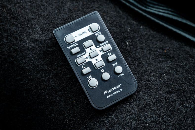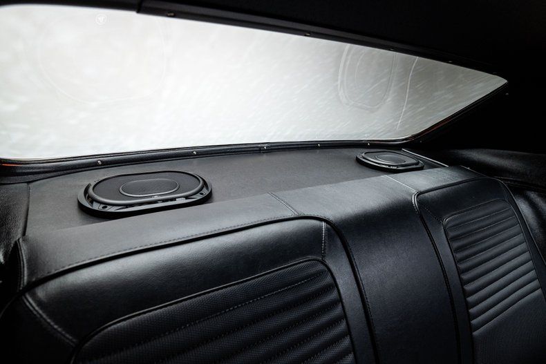 Inside, the cabin carries the same philosophy as the exterior. The original E-body layout remains, but the interior has been refined to match the car's performance and intent. New Vintage USA Detroit-series gauges fill the stock cluster, while the stainless Ididit tilt column and Hurst shifter give the driver a mechanical connection to the car. Vintage Air controls handle air conditioning, and Dynamat insulation throughout keeps heat and noise in check. A Pioneer head unit with Bluetooth connectivity joins an Alpine amplifier to power JL Audio speakers and an Alpine sub. Between the bucket seats is a mounted fire extinguisher, included as a simple and sensible safety feature.