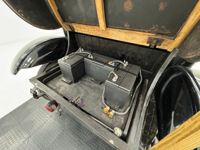 Like just about everything else from this era, the upright car presents in solid black, including the 32-inch wooden spoke wheels carrying white wall tires that offer some contrast. Cowl lamps also wear a coat of black, fronting a cabin that is supplied with tall windows and a high roof, requiring a step onto the running boards for entry. Without water to cool, there is no front grille and the front resembles the turtle trunk of a Model T, matched in style by the actual rear trunk lid of this car which houses a series of batteries. A pair of headlights perch low in front and a stylish lip encircles the arching fenders, while a textured vinyl roof presents in very nice condition. There's some uneven paint on the cowl but overall, the body and paint are in great shape.
