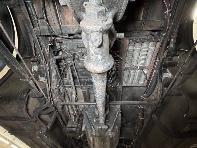 Direct drive spins the worm drive axle, setting the car in motion with mechanical drum brakes on the rear wheels. Full elliptic springs serve as suspension both front and rear. Meanwhile, the wood floor construction is clearly seen underneath where conditions are noted as clean, with obvious wiring and the only fluids being the grease that lubricates the steering components and wheels. No muffler, no tailpipe, no exhaust.