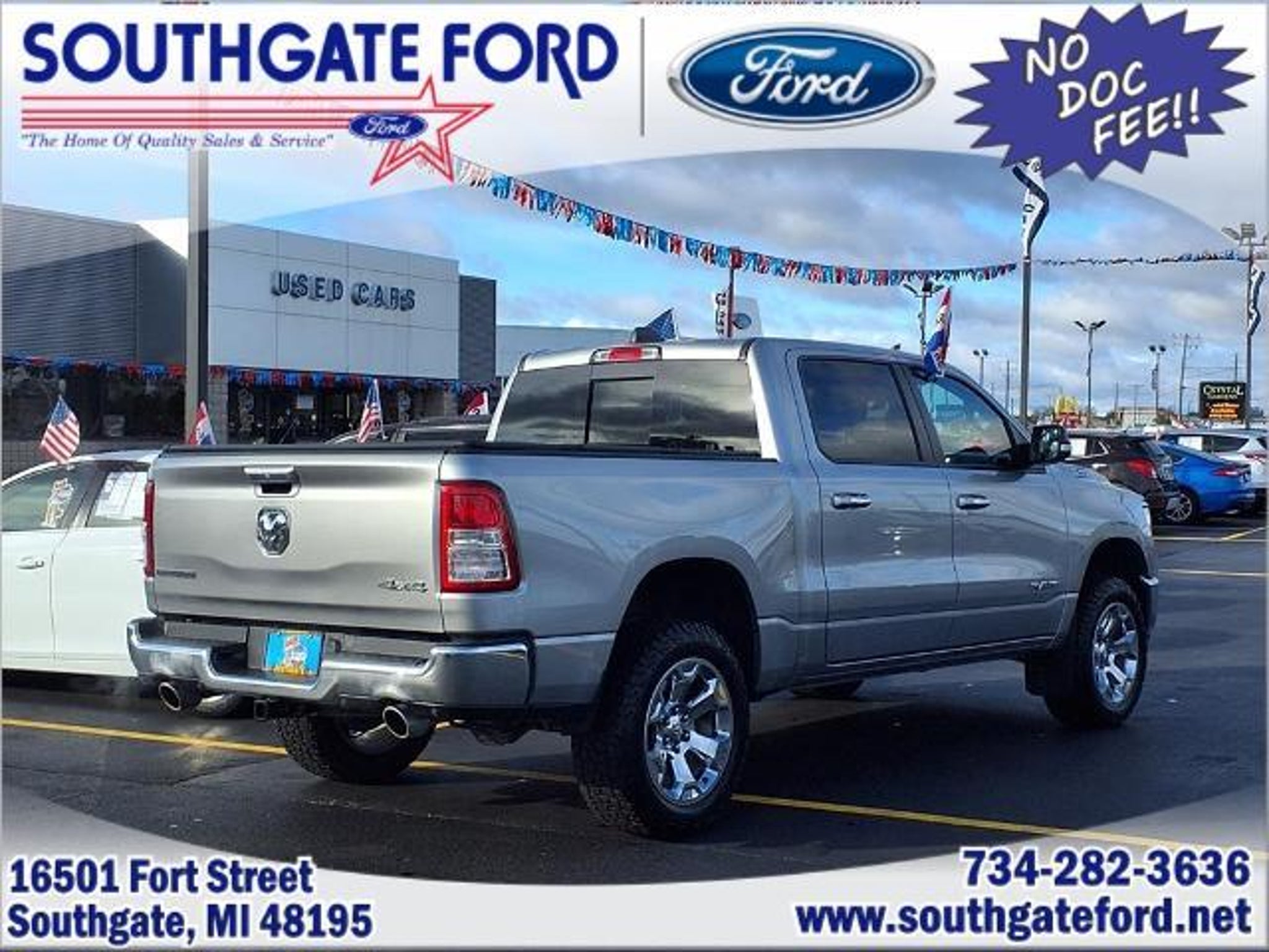 Clean CARFAX. 2020 Ram 1500 4-Wheel Disc Brakes, ABS brakes, Air Conditioning, Air Conditioning ATC w/Dual Zone Control, AM/FM radio, Big Horn Badge, Bumpers: chrome, Lone Star Package, Power steering, Power windows, Quick Order Package 25Z Big Horn, Radio data system, Rear Power Sliding Window, Rear Window Defroster, Remote keyless entry, Remote Start System.At Southgate Ford we sell for less and give you more!Odometer is 4558 miles below market average!