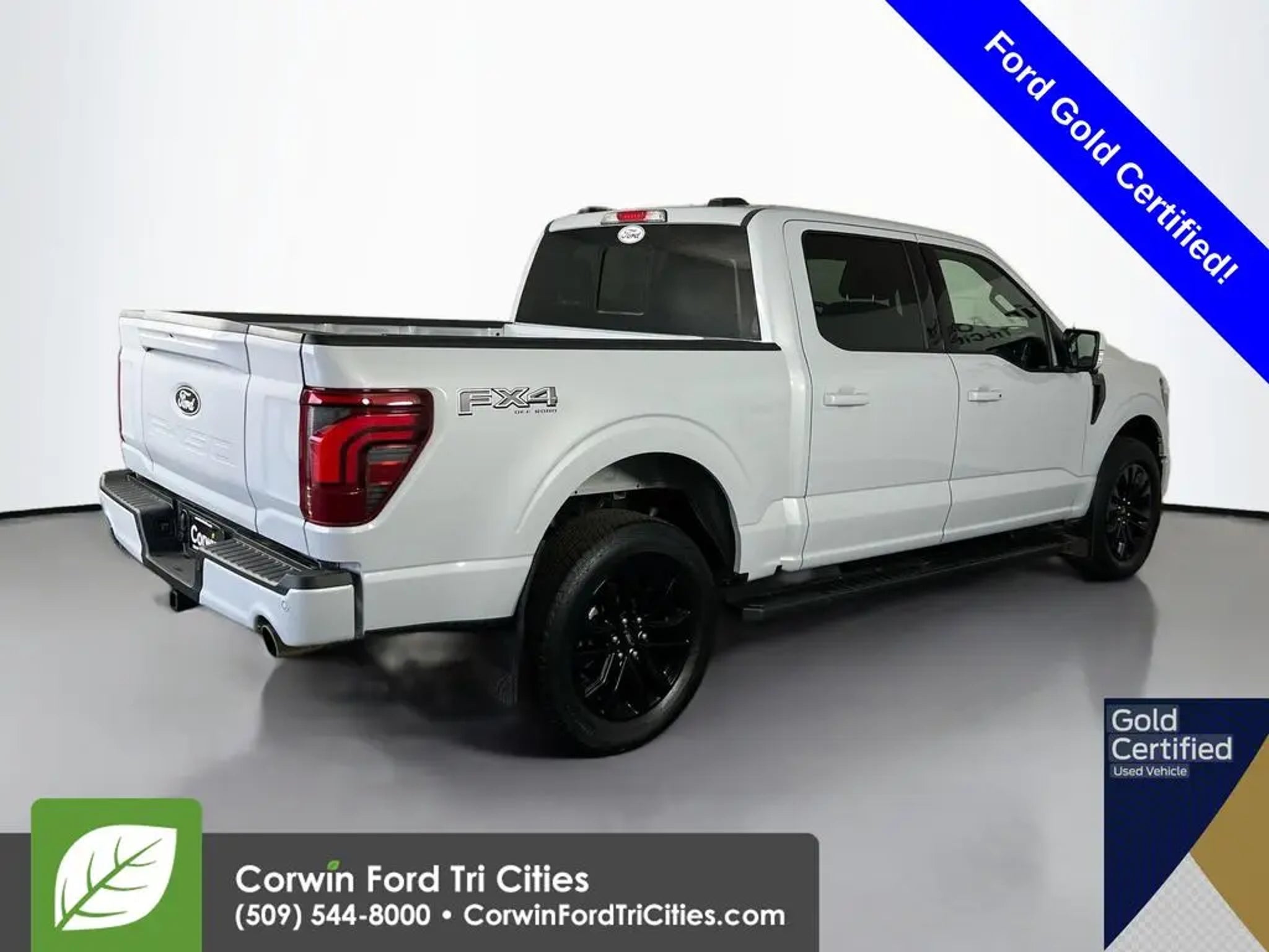 It's time for a rugged roundup with our Accident Free, Certified Pre-Owned 2025 Ford F-150 Lariat SuperCrew 4X4 with the 501A Pack, Bed Utility Package with Pro Access Tailgate, and Black Appearance Package in Space White Metallic! Motivated by a Twin-TurboCharged 3.5 Liter EcoBoost V6 providing 400hp to a 10 Speed Automatic transmission for confident travel from trail to town. Seven performance modes and responsive handling are standard, and this Four Wheel Drive truck scores nearly 24mpg on the highway. Our Ford's bold exterior welcomes our 501A Pack to add LED lighting with dynamic bending headlamps, 20-inch Gloss Black alumiunum wheels, and front tow hooks to standard fog lamps, heated multifunction mirrors, running boards, and a Class IV trailer hitch. Our Lariat cabin supplies impressive luxury for long days, thanks to our 501A Pack. It adds heated/ventilated power ActiveX front seats, power-adjustable pedals, Bang & Olufsen audio, a power rear window, and remote start to a multifunction steering wheel, dual-zone automatic climate control, and intelligent Ford technology. Check infotainment advantages like the 12-inch touchscreen, 12-inch productivity screen, connected navigation compatibility, WiFi compatibility, Apple CarPlay®, Android Auto®, Bluetooth®, and upscale audio. Ford helps you stay safe with our 501A Pack's adaptive cruise control, which complements automatic braking, lane-keeping assistance, blind-spot monitoring, trailer reverse guidance, a rearview camera, rear cross-traffic alert, and more for your protection. It's no wonder our F-150 Lariat is a top choice for truck professionals worldwide! Save this Page and Call for Availability. We Know You Will Enjoy Your Corwin Ford Tri-City Test Drive Towards Ownership! Ford Gold Certified Details: * Transferable Warranty * Vehicle History * Warranty Deductible: $100 * Powertrain Limited Warranty: 84 Month/100,000 Mile (whichever comes first) from original in-service date * 172 Point Inspection * Limited Warranty: 12 Month/12,000 Mile (whichever comes first) after new car warranty expires or from certified purchase date * Roadside Assistance * and 22,000 FordPass Rewards Points to use toward first two maintenance visits See us today at Corwin Ford Tri-Cities. Family owned for over 100 years! Excellent selection of New and Used vehicles, Financing options. Serving Pasco, Kennewick, Richland, Walla Walla, Hermiston, Umatilla, Yakima, Spokane, Sunnyside, Grandview, Dayton, Prescott, Benton County, Franklin County, Yakima County, Spokane County, Adams County, Grant County, and the Greater Columbia Basin. *All Prices plus applicable sales tax and licensing. A negotiable documentary service fee up to $200 may be added to sales price or capitalized cost of the vehicle. One vehicle unless otherwise noted and subject to prior sale without notice. While supplies last. EPA mileage estimates are for newly manufactured vehicles only. Your actual mileage will vary depending on how you drive and maintain your vehicle.