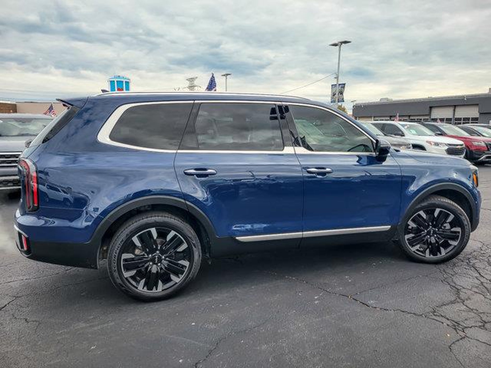 2023 Kia Telluride SX Midnight Lake Blue AWD 4D Sport Utility 3.8L V6 DGI DOHC Dual CVVT 8-Speed Automatic CARFAX One-Owner. 18/24 City/Highway MPG **With some available options like Ford Blue Advantage: Blue Certified Certified, 10 Speakers, 3.648 Axle Ratio, 3rd row seats: split-bench, 4-Wheel Disc Brakes, ABS brakes, Air Conditioning, Alloy wheels, AM/FM radio: SiriusXM, Apple CarPlay & Android Auto, Auto High-beam Headlights, Auto-dimming Rear-View mirror, Automatic temperature control, Brake assist, Bumpers: body-color, Carpet Floor Mats, Compass, Delay-off headlights, Driver door bin, Driver vanity mirror, Dual front impact airbags, Dual front side impact airbags, Electronic Stability Control, Emergency communication system: 911 Connect, Exterior Parking Camera Rear, Four wheel independent suspension, Front anti-roll bar, Front Bucket Seats, Front Center Armrest, Front dual zone A/C, Front fog lights, Front reading lights, Fully automatic headlights, Garage door transmitter: HomeLink, harman/kardon Speakers, Heated & Ventilated Front Bucket Seats, Heated door mirrors, Heated front seats, Heated steering wheel, Illuminated entry, Knee airbag, Leather Seat Trim, Leather Shift Knob, Leather steering wheel, Low tire pressure warning, Memory seat, Navigation System, Occupant sensing airbag, Outside temperature display, Overhead airbag, Overhead console, Panic alarm, Passenger door bin, Passenger vanity mirror, Power door mirrors, Power driver seat, Power Liftgate, Power moonroof, Power passenger seat, Power steering, Power windows, Radio data system, Radio: AM/FM harman/kardon Audio System, Rear air conditioning, Rear anti-roll bar, Rear audio controls, Rear reading lights, Rear side impact airbag, Rear window defroster, Rear window wiper, Reclining 3rd row seat, Remote keyless entry, Roof rack: rails only, Security system, Smart Key w/ Push Button and Remote Start, Speed control, Speed-sensing steering, Split folding rear seat, Spoiler, Steering wheel mounted audio controls, Tachometer, Telescoping steering wheel, Tilt steering wheel, Traction control, Trip computer, Turn signal indicator mirrors, Variably intermittent wipers, Ventilated front seats, and Wheels: 20 x 7.5 Black Finish ** Certified. Certification Program Details: Ford Blue Advantage: Blue Certified * 139 Point Inspection * Transferable Warranty * Vehicle History * Warranty Deductible: $100 * Roadside Assistance * Limited Warranty: 3 Month/4,000 Mile (whichever comes first) after new car warranty expires or from certified purchase dat