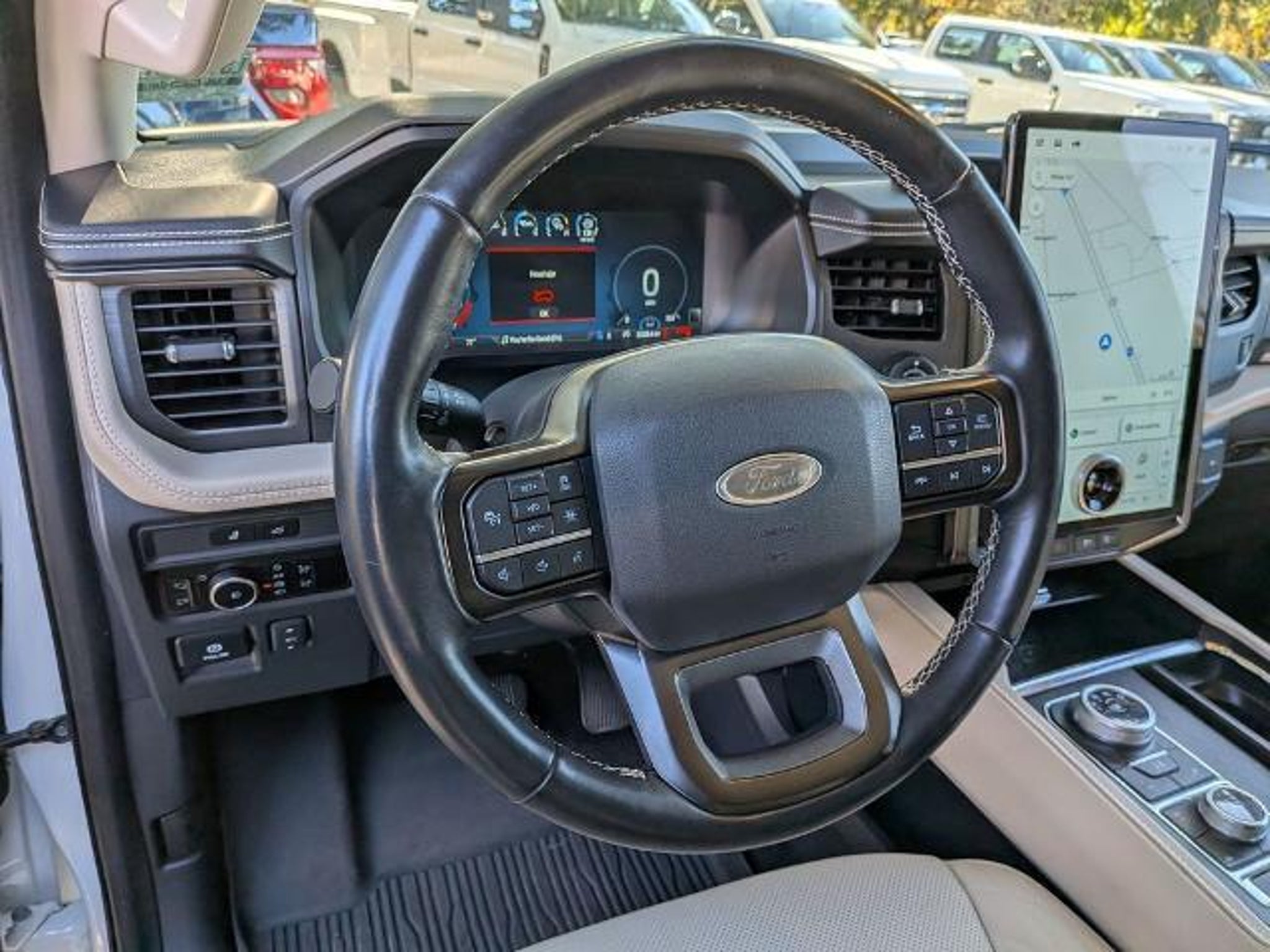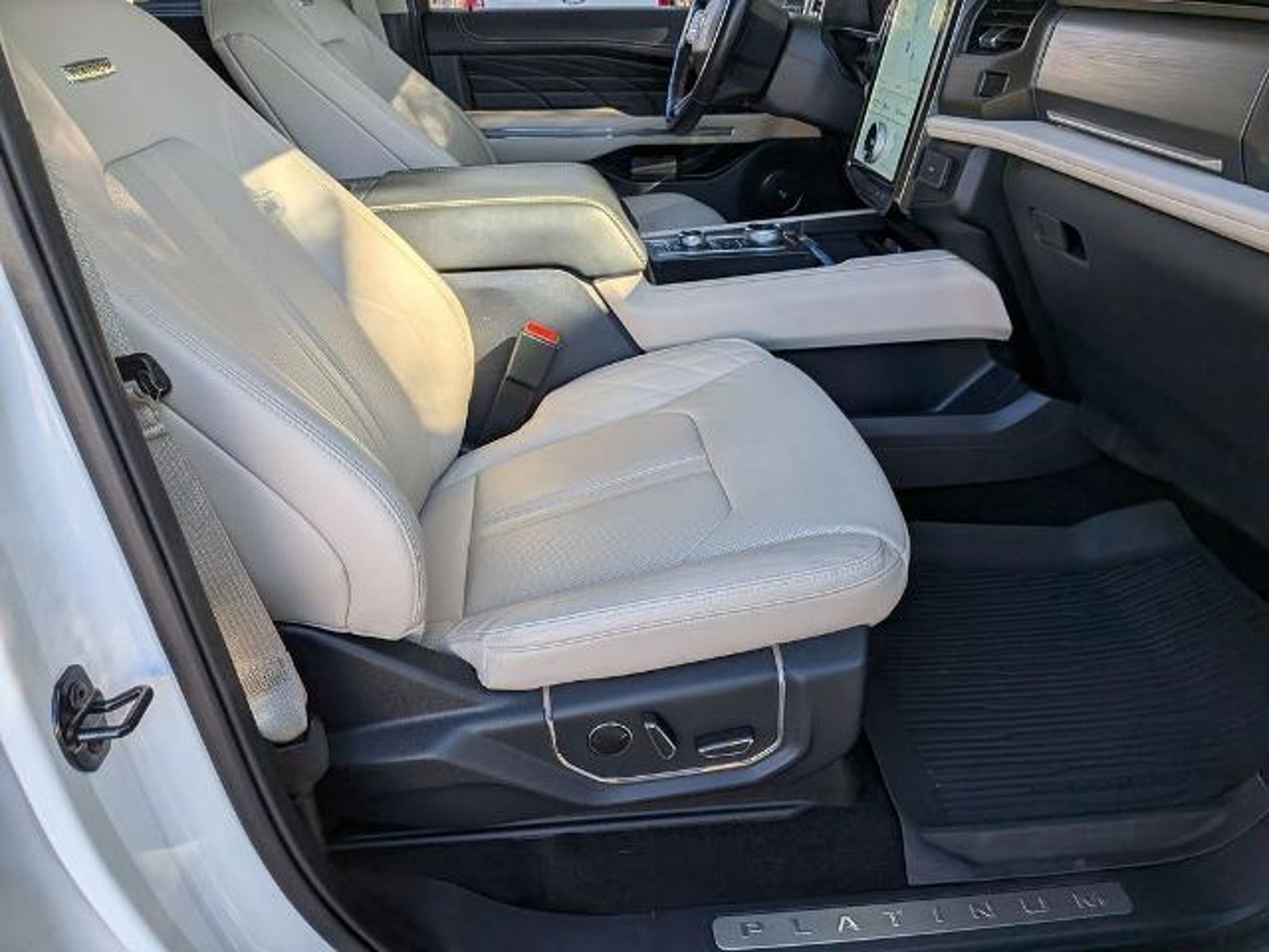 Priced below KBB Fair Purchase Price! Odometer is 1344 miles below market average! Here are more details on this Star White Metallic Tri-Coat 2023 Ford Expedition with Light Sandstone Leather interior trim at Sandy Sansing Dealerships. Come see the largest inventory on the Gulf coast. Local Trade, Navigation, One Owner CarFax, Sunroof, 4WD, 26mm Engine Radiator, 3.73 Axle Ratio, 360-Degree Camera w/Trailer Reverse Guidance, Equipment Group 600A Standard Package, Heavy-Duty Trailer Tow Package, Integrated Trailer Brake Controller, Navigation system: Connected Navigation, Pro Trailer Backup Assist. Equipment Group 600A Standard Package, Heavy-Duty Trailer Tow Package (26mm Engine Radiator, 3.73 Axle Ratio, 360-Degree Camera w/Trailer Reverse Guidance, Integrated Trailer Brake Controller, and Pro Trailer Backup Assist), 4WD, Navigation system: Connected Navigation, 22 Speakers, 3rd row seats: split-bench, 4-Wheel Disc Brakes, ABS brakes, Active Park Assist 2.0 Removal, Adaptive suspension, Adjustable pedals, Air Conditioning, Alloy wheels, AM/FM radio: SiriusXM with 360L, Auto High-beam Headlights, Auto-dimming door mirrors, Auto-dimming Rear-View mirror, Automatic temperature control, Brake assist, Bumpers: body-color, Compass, Delay-off headlights, Driver door bin, Driver vanity mirror, Dual front impact airbags, Dual front side impact airbags, Electronic Stability Control, Emergency communication system: SYNC 4 911 Assist, Exterior Parking Camera Rear, Four wheel independent suspension, Front anti-roll bar, Front Bucket Seats, Front Center Armrest, Front dual zone A/C, Front fog lights, Front reading lights, Fully automatic headlights, Garage door transmitter, Genuine wood console insert, Genuine wood dashboard insert, Genuine wood door panel insert, Hands-Free Foot-Activated Liftgate Removal (DISC), Heated door mirrors, Heated Rear Seats, Heated rear seats, Heated steering wheel, Htd/Ventilated Prem Lthr Front Captain's Chairs (DISC), Illuminated entry, Leather steering wheel, Low tire pressure warning, Memory seat, Occupant sensing airbag, Outside temperature display, Overhead airbag, Overhead console, Panic alarm, Passenger door bin, Passenger vanity mirror, Pedal memory, Power door mirrors, Power driver seat, Power Liftgate, Power moonroof, Power passenger seat, Power steering, Power windows, Radio data system, Radio: B&O Unleashed Sound System by Bang & Olufsen, Rain sensing wipers, Rear air conditioning, Rear anti-roll bar, Rear audio controls, Rear reading lights, Rear window defroster, Rear window wiper, Reclining 3rd row seat, Remote keyless entry, Second Row Power Windows Removal, Security system, SiriusXM w/360L, Speed control, Speed-sensing steering, Speed-Sensitive Wipers, Split folding rear seat, Spoiler, Steering wheel memory, Steering wheel mounted audio controls, SYNC 4 w/Enhanced Voice Recognition, Tachometer, Telescoping steering wheel, Tilt steering wheel, Traction control, Trip computer, Turn signal indicator mirrors, Variably intermittent wipers, Ventilated front seats, Voltmeter, and Wheels: 22 12-Spoke Polished Aluminum.