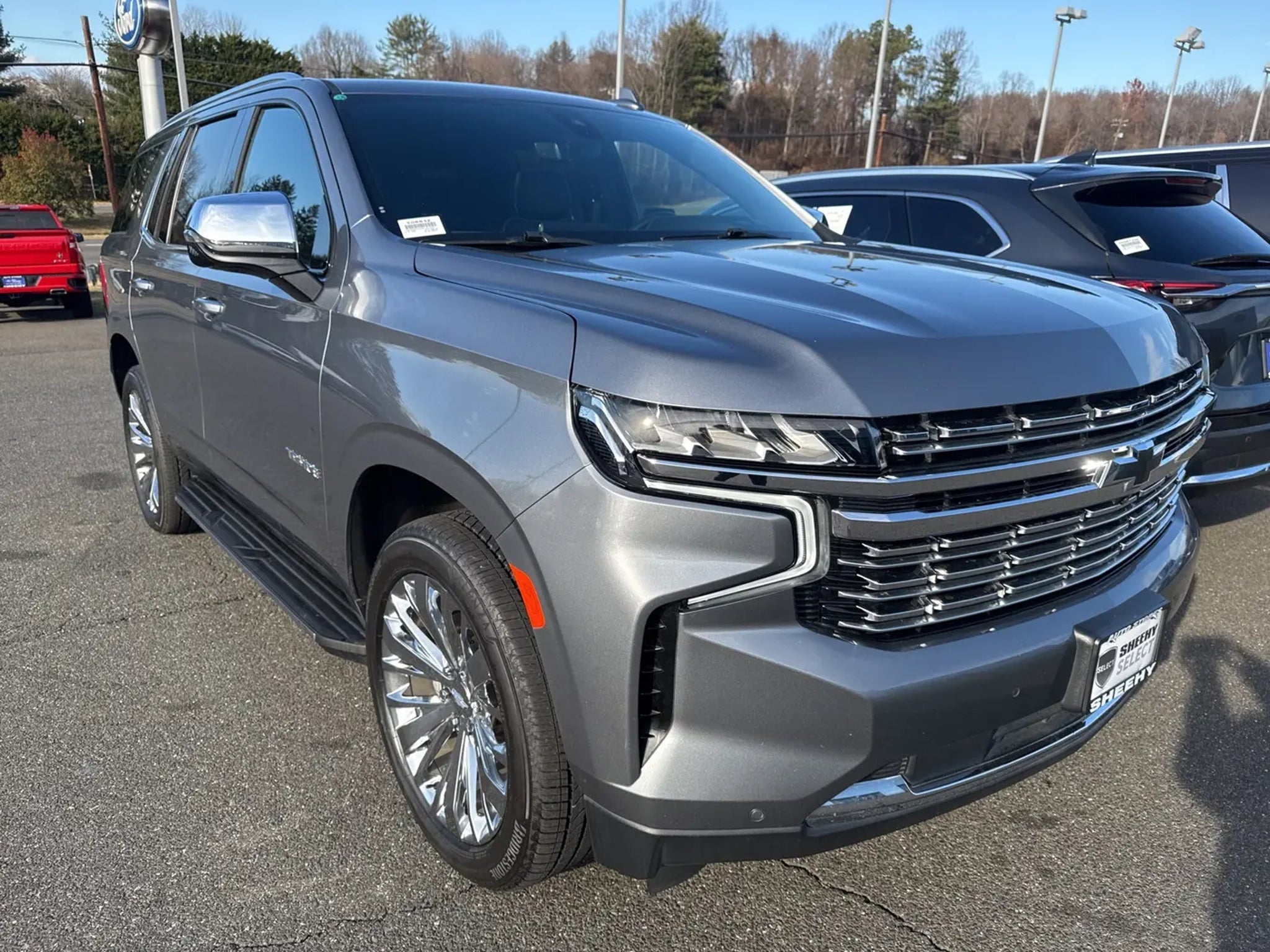 2021 Chevrolet Tahoe Premier 4WD at Sheehy Ford of Warrenton! This Tahoe has an exterior color of Satin Steel Metallic with Jet Black Leather interior. This preowned Chevrolet Tahoe is equipped with amazing options like: Advanced Trailering Package (Advanced Trailering System, Hitch Guidance w/Hitch View, Integrated Trailer Brake Controller, and Trailer Side Blind Zone Alert), Enhanced Display & Alert Package (15 Diagonal Multi-Color Head-Up Display, HD Surround Vision, Inside Rearview Auto-Dimming Rear Camera Mirror, Rear Camera Mirror Washer, and Rear Pedestrian Alert), Max Trailering Package (Extra Capacity Cooling System), Preferred Equipment Group 1LZ (1st & 2nd Row Color-Keyed Carpeted Floor Mats, 2 USB Data Ports, 2-Speed Active Electronic AutoTrac Transfer Case, 3rd Row 60/40 Power-Folding Split-Bench Seat, Auto-Dimming Inside Rear-View Mirror, Automatic Heated Steering Wheel, Bright Front & Rear Door Sill Plates, Chrome Door Handles w/Body-Color Strip, Chrome Mirror Caps, Color-Keyed Carpeting Floor Covering, Driver & Front Outboard Passenger Airbags, Dual Exhaust System, Enhanced Driver Information Center, Floor Console w/Storage Area, Front & Rear Park Assist, Hands-Free Rear Power Programmable Liftgate, HD Radio, Heated 2nd Row Outboard Seats, Hill Descent Control, Infotainment Display, Lane Change Alert w/Side Blind Zone Alert, Lane Keep Assist w/Lane Departure Warning, Leather-Wrapped Steering Wheel, LED Daytime Running Lamps, Memory Settings, Outside Heated Power-Adjustable Mirrors, Power Release 2nd Row Bucket Seats, Power Tilt & Telescopic Steering Column, Rear Cross Traffic Alert, Remote Start, Safety Alert Seat, SiriusXM NavTraffic, SiriusXM Radio w/360L, and Universal Home Remote), Premium Package (Adaptive Cruise Control and Dual-Pane Power Panoramic Sunroof), Sheehy Select Car Certified, 4WD, Jet Black w/Perforated Leather Seat Trim, 3rd row seats, Adaptive suspension, AM/FM radio: SiriusXM with 360L, Apple CarPlay/Android Auto, Bose 10-Speaker Centerpoint Surround Audio Sys Ft, Heated front seats, Heated rear seats, Memory seat, Navigation System, Power Liftgate, Ventilated front seats, Wheels: 22 Bright Chrome (LPO), and Wheels: 22 x 9 Steel Interim (LPO). CARFAX One-Owner. Certification Program Details: Sheehy Select Car located at Sheehy Ford of Warrenton! All our Sheehy Select vehicles come with a 125-point quality inspection, 60 day/2,000 mile warranty, 2 keys, an owner's manual, a CarFax vehicle history report, upfront clear Sheehy-It's Easy Pricing and a 5 day/300 mile money back guarantee! And all our Vehicles pass both MD and VA state inspections, backed by a company that has been serving the Mid-Atlantic area for 50 plus years-so you know you're getting an excellent quality vehicle! All our Sheehy Select vehicles can be transferred between Sheehy locations for a fee of up to $300. Some vehicles may have unrepaired safety recalls. Sheehy Auto Stores is not a manufacturer-authorized repair facility for all brands, but your local same-brand dealer will provide recall repair services for free. To check for open recalls please visit https:// in=1GNSKSKD5MR150208#vin.