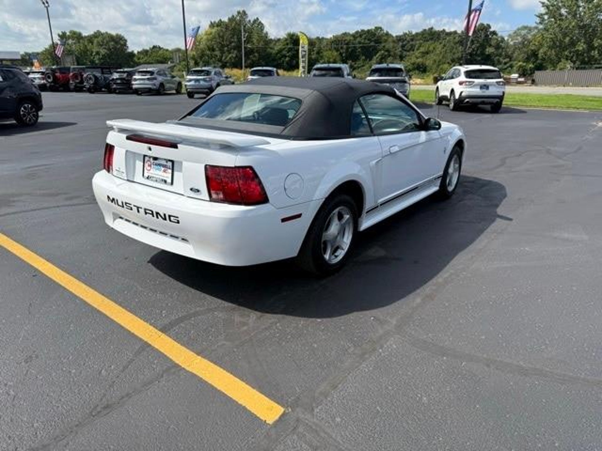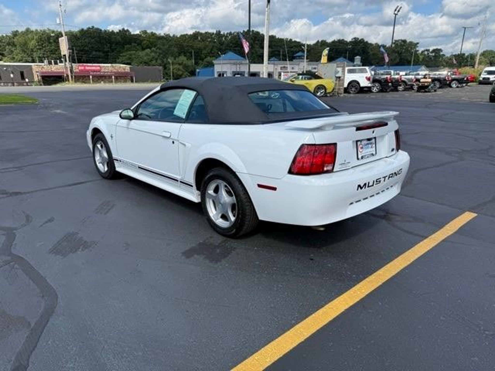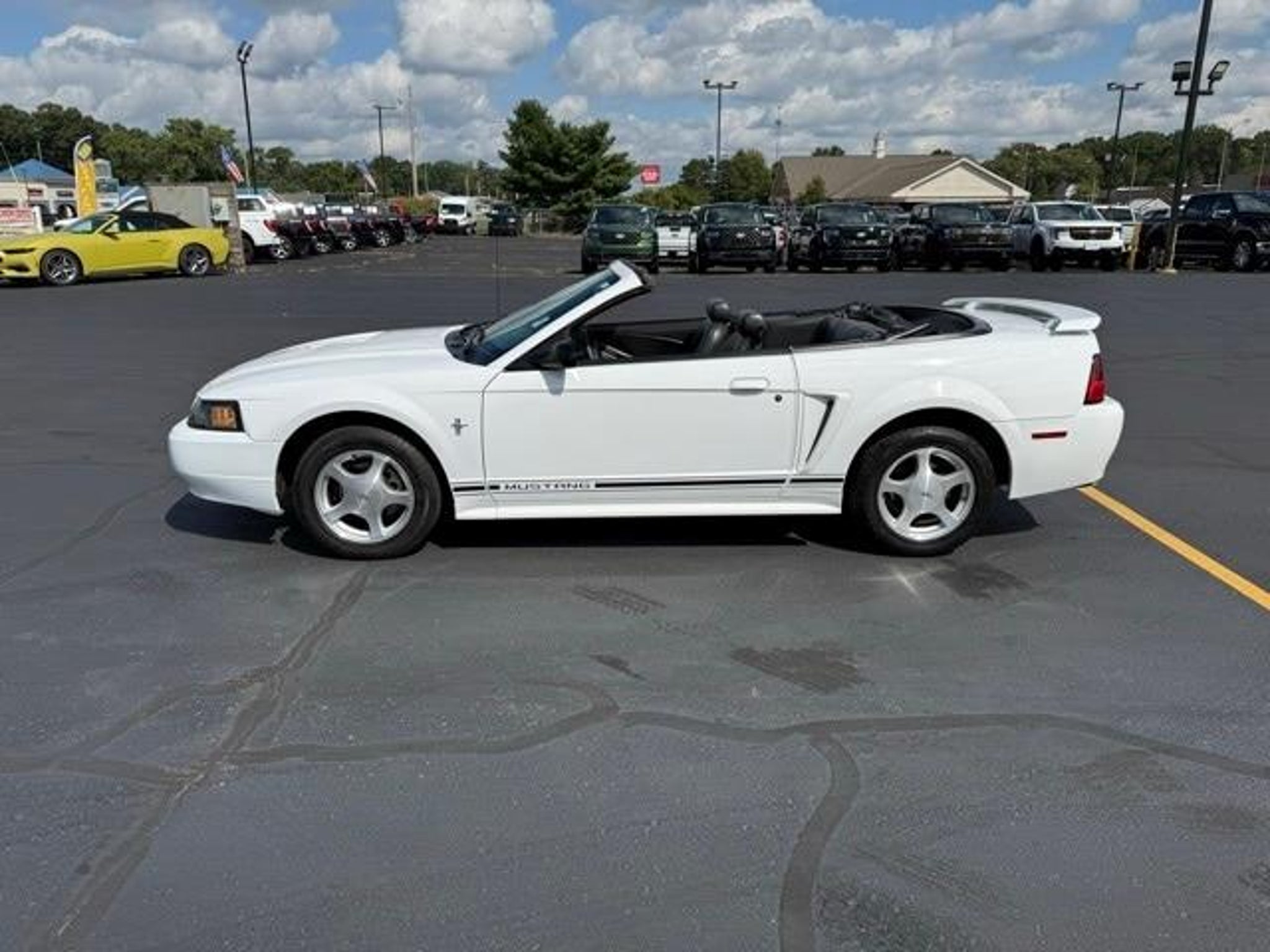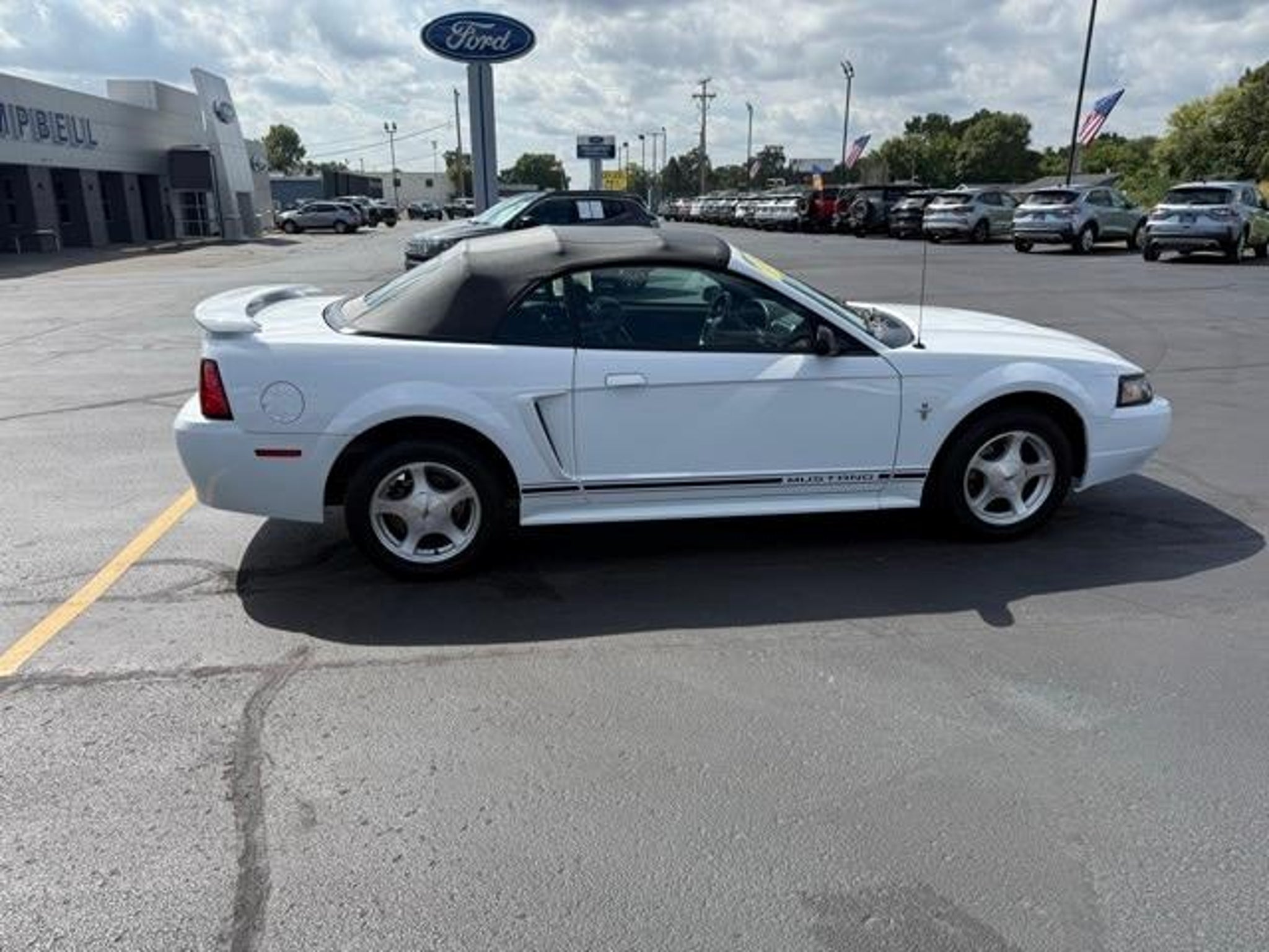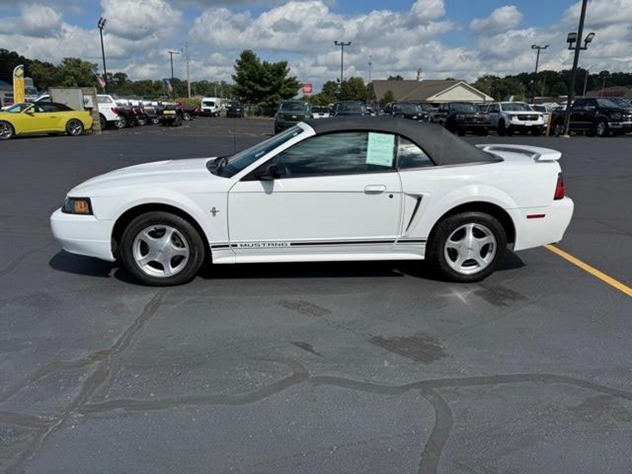 Step back into classic American style with this 2001 Ford Mustang V6 Convertible, finished in clean White and offered as a desirable LOCAL TRADE with LOW, LOW MILES--a rare find for a vehicle of this era. This Mustang captures the timeless appeal of open-top driving while delivering comfortable cruising, dependable performance, and unmistakable Mustang character. Under the hood, this Mustang is powered by a proven 3.8L V6 EFI engine, paired with a smooth 4-Speed Automatic Transmission with Overdrive. This rear-wheel-drive setup delivers relaxed highway manners, confident acceleration, and the unmistakable feel Mustang fans appreciate. Whether you're enjoying a sunny afternoon drive or cruising through town, this Mustang offers an engaging yet comfortable driving experience. One of the standout features of this vehicle is its LOW, LOW MILES, making it an exceptional opportunity for collectors, enthusiasts, or anyone looking for a well-preserved convertible with classic appeal. Vehicles like this are becoming increasingly hard to find, especially in such well-kept condition. Inside, the cabin offers a clean, functional layout designed for comfort and simplicity. The cloth bucket seats provide supportive seating for both driver and passenger, while the power driver seat allows you to easily find your ideal driving position. The tilt steering wheel adds further adjustability, making longer drives more comfortable. Practical touches like air conditioning ensure comfort on warm days, whether the top is up or down. This Mustang includes classic audio features such as a cassette player and CD player, offering a nostalgic touch that fits perfectly with the vehicles era. The passenger vanity mirror and thoughtful interior storage add everyday convenience, while speed control helps make highway driving more relaxed. As a true convertible, this Mustang shines when the weather is right. The power convertible roof operates smoothly, allowing you to enjoy open-air driving at the push of a button. A convertible roof lining and glass rear window add durability and clarity, while the rear window defroster improves visibility in cooler or damp conditions. On the road, this Mustang delivers a composed ride thanks to its front wheel independent suspension, while 4-wheel disc brakes provide confident stopping power. Variably intermittent wipers adjust to changing weather conditions, enhancing visibility and convenience. The exterior is complemented by 16 bright alloy wheels, adding a sporty touch that completes the Musta