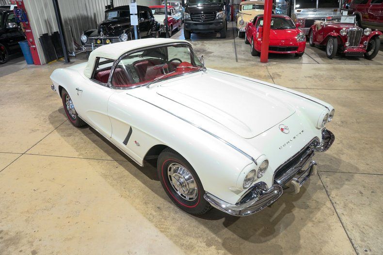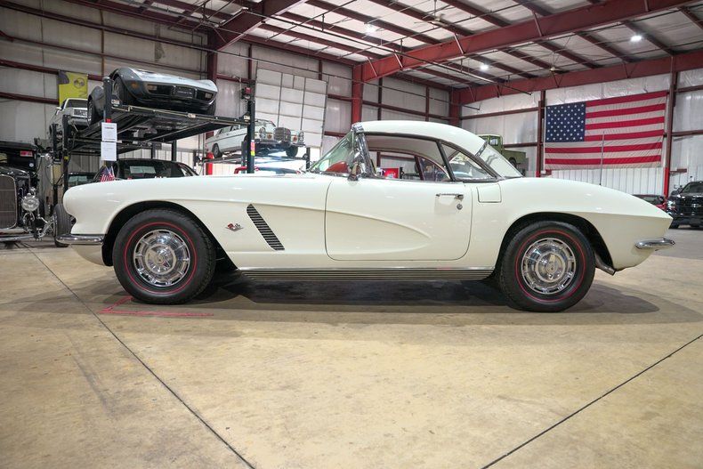 GR Auto Gallery is excited to present this 1962 Chevrolet Corvette, a stunning example of America's most beloved sports car, finished in elegant white over a vivid red leather interior. The final year of the first-generation Corvette (C1), this model beautifully blends 1950s design charm with early 1960s performance improvements. Its exterior gleams with freshly redone chrome, a white removable hardtop, and red-trimmed tires that perfectly accent the paint and complete the vintage aesthetic. The classic curves, bullet-style taillights, and toothy chrome grille make this Corvette an unmistakable icon that still draws attention wherever it goes.