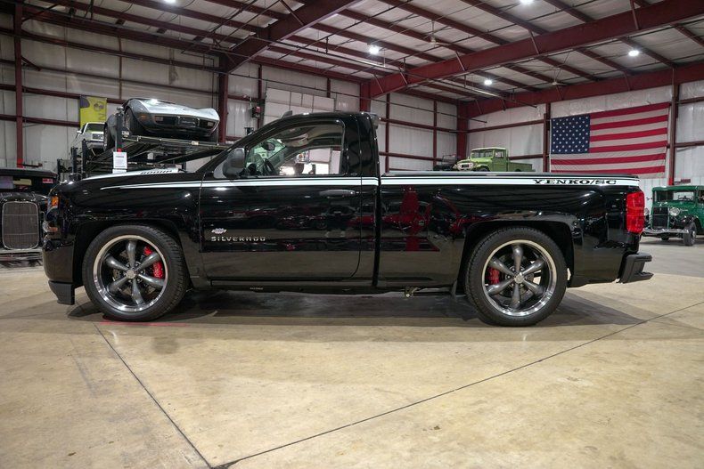GR Auto Gallery is excited to present this 2017 Chevrolet Silverado 1500 Yenko/SC. Dressed in sleek black and accented by bold Yenko graphics and SYC hood callouts, this truck carries an unmistakable presence. The aggressive stance is backed by 22-inch silver American Racing wheels, while the retractable bed cover and Mag-Hytec rear axle cover give it a refined yet purposeful finish. Every detail, from the carbon fiber valve covers to the iconic Yenko striping, reminds you this isn't your ordinary Silverado.