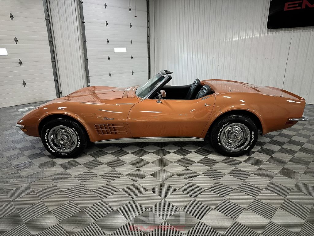 This 1970 Chevrolet Corvette convertible is finished in rare, one-year-only Corvette Bronze Metallic a standout color that highlights the car's classic curves. Power comes from a 350ci V8 paired to a 4-speed manual transmission, delivering a pure, analog driving experience.
