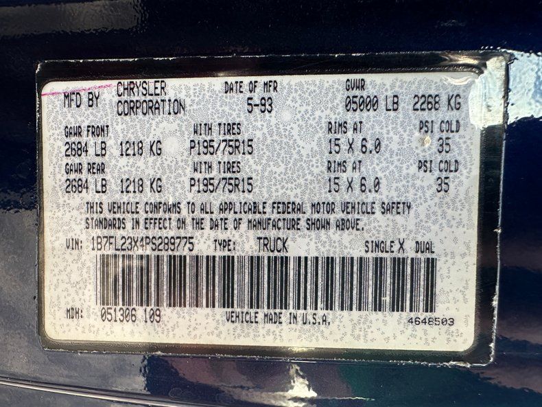 Please visit www.Survivor-Cars.com for additional photos, information, and a video. This vehicle is available for viewing in our Tampa Showroom by appointment only. Please call us to schedule an appointment. Here's something we don't see everyday. A 1993 Dodge Dakota LE extended cab with the V6 engine. This truck has an interesting story as the CarFax counts up nicely to 46,900 miles in 2021 and now shows 61,997. That lower mileage is very believable based on the condition of the original interior. This truck has received a lot of normal maintenance work and it runs and drives well. It has a hitch and a tonneau cover and is ready to be put to work. It also has extra reverse lights added to make hooking up to a trailer easier. Fresh paint has just been applied, meaning this truck needs nothing but a new owner. This vehicle is available to view by appointment only. Please call the office to make an appointment. For additional information on this and our other classic and collectible cars for sale, please visit www.Survivor-Cars.com. For assistance, please call the office at (941) 845-4461, text our cell phones at (813) 358-8830, or email us at info@Survivor-Cars.com. If you are unable to come view the vehicle for yourself, we highly recommend you send in a third-party inspector on your behalf. We are located between Tampa and Sarasota. We are 90 minutes from Orlando and Fort Myers. *Potential purchaser understands it is their responsibility to verify condition and accuracy of information when purchasing from Survivor Classic Cars. It is the sole responsibility of the potential purchaser to inspect the vehicle, or have a third-party inspection performed on the vehicle before purchasing. The potential purchaser is relying solely on their own knowledge and judgement about any vehicle purchased.